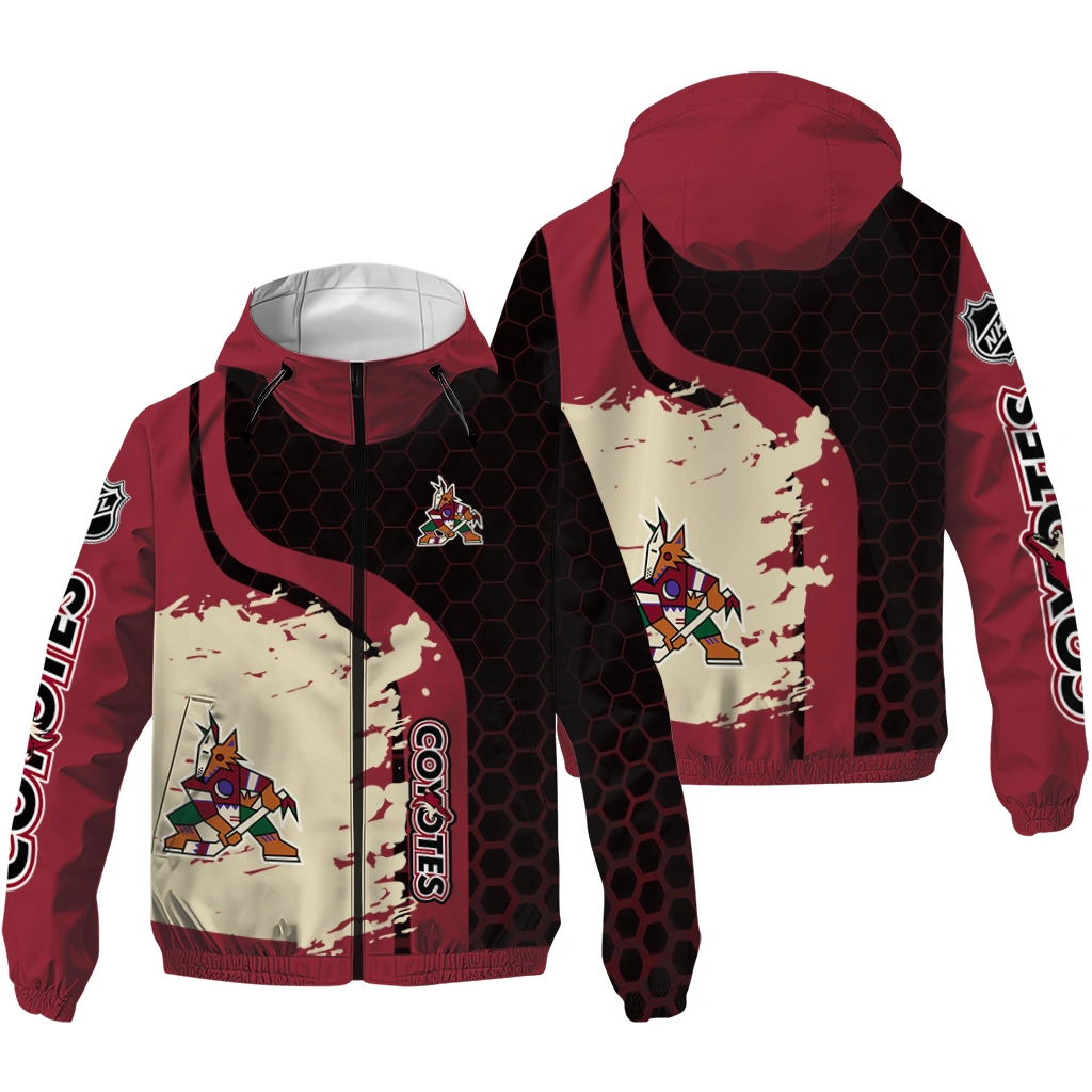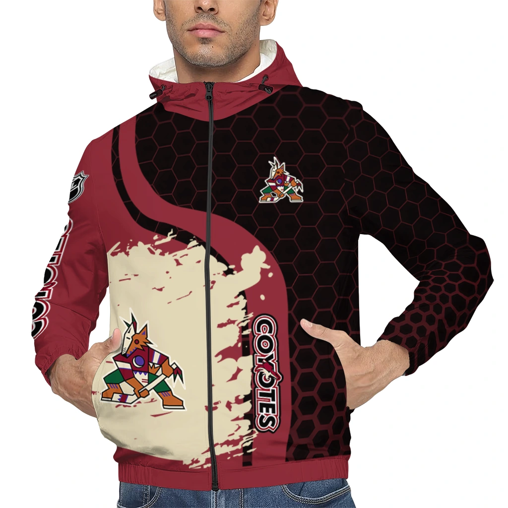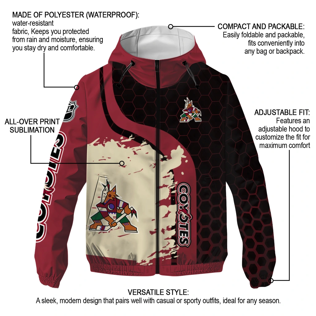 Arizona Coyotes Hex Grid Texture Red Black Windbreaker Jacket