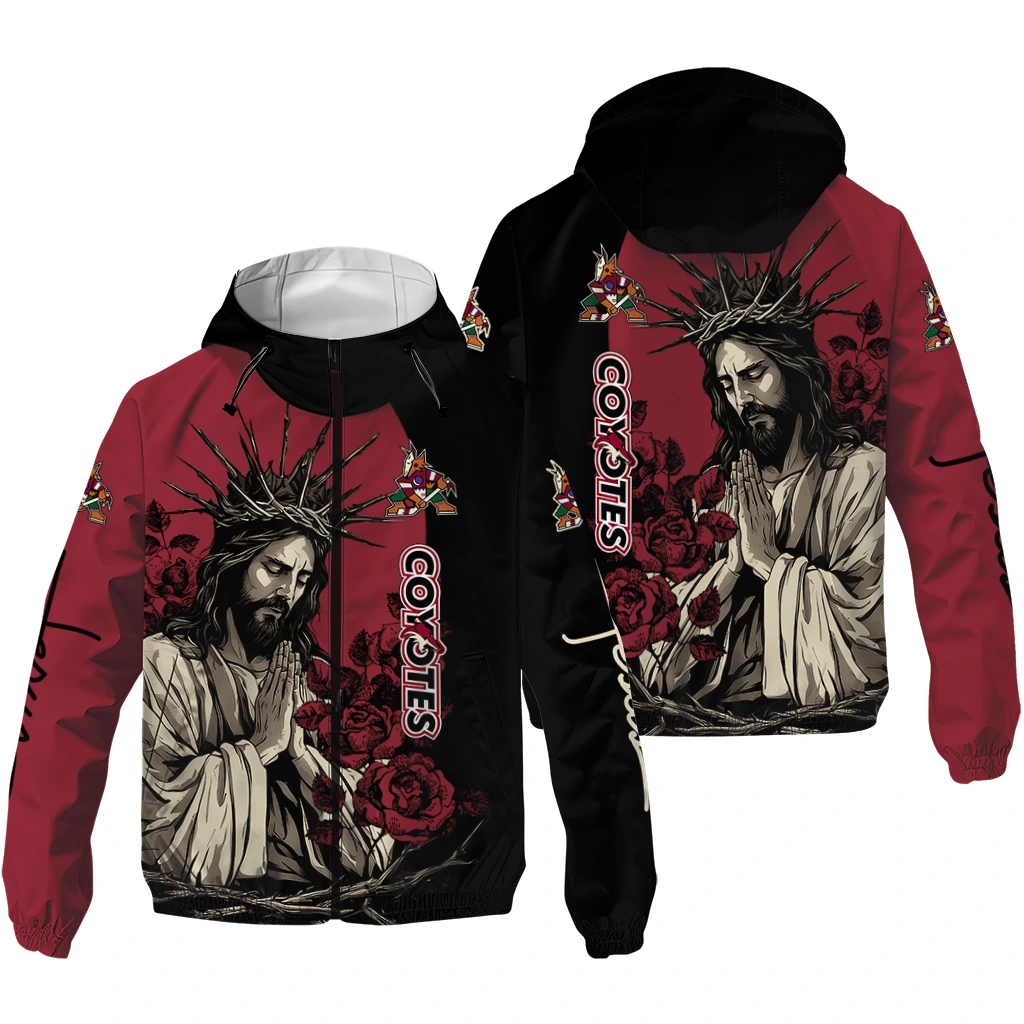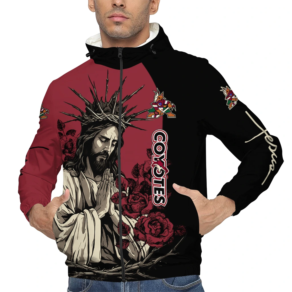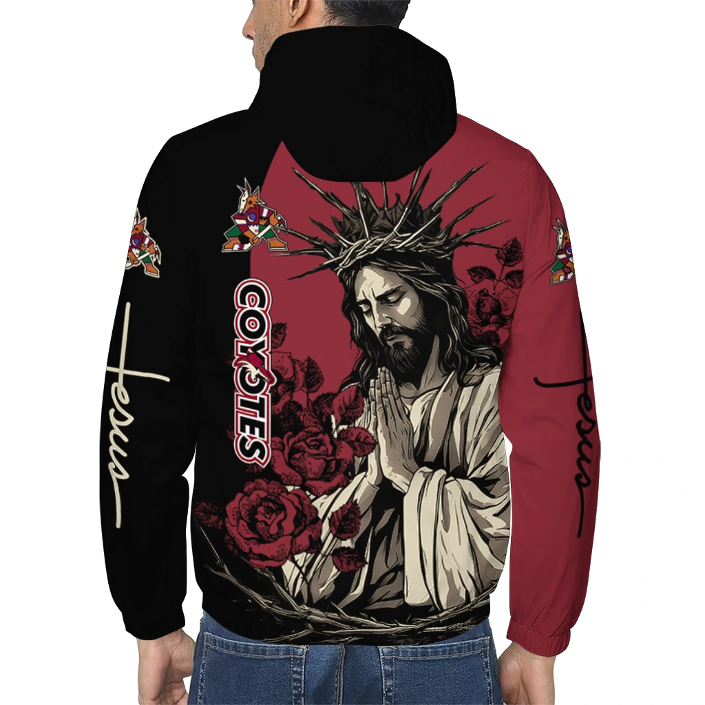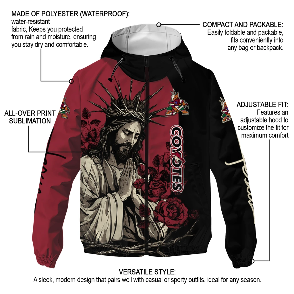 Arizona Coyotes Jesus Roses Red Black Windbreaker Jacket