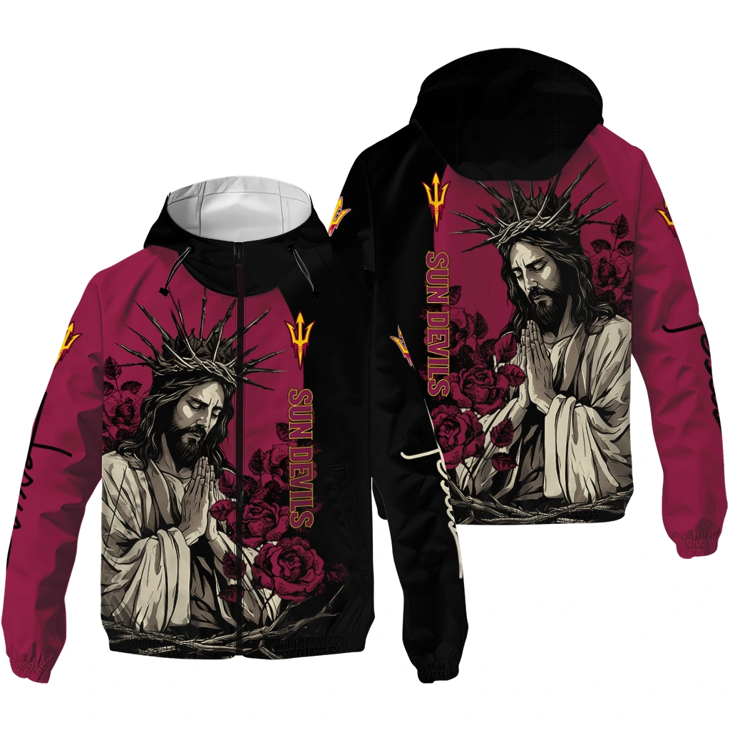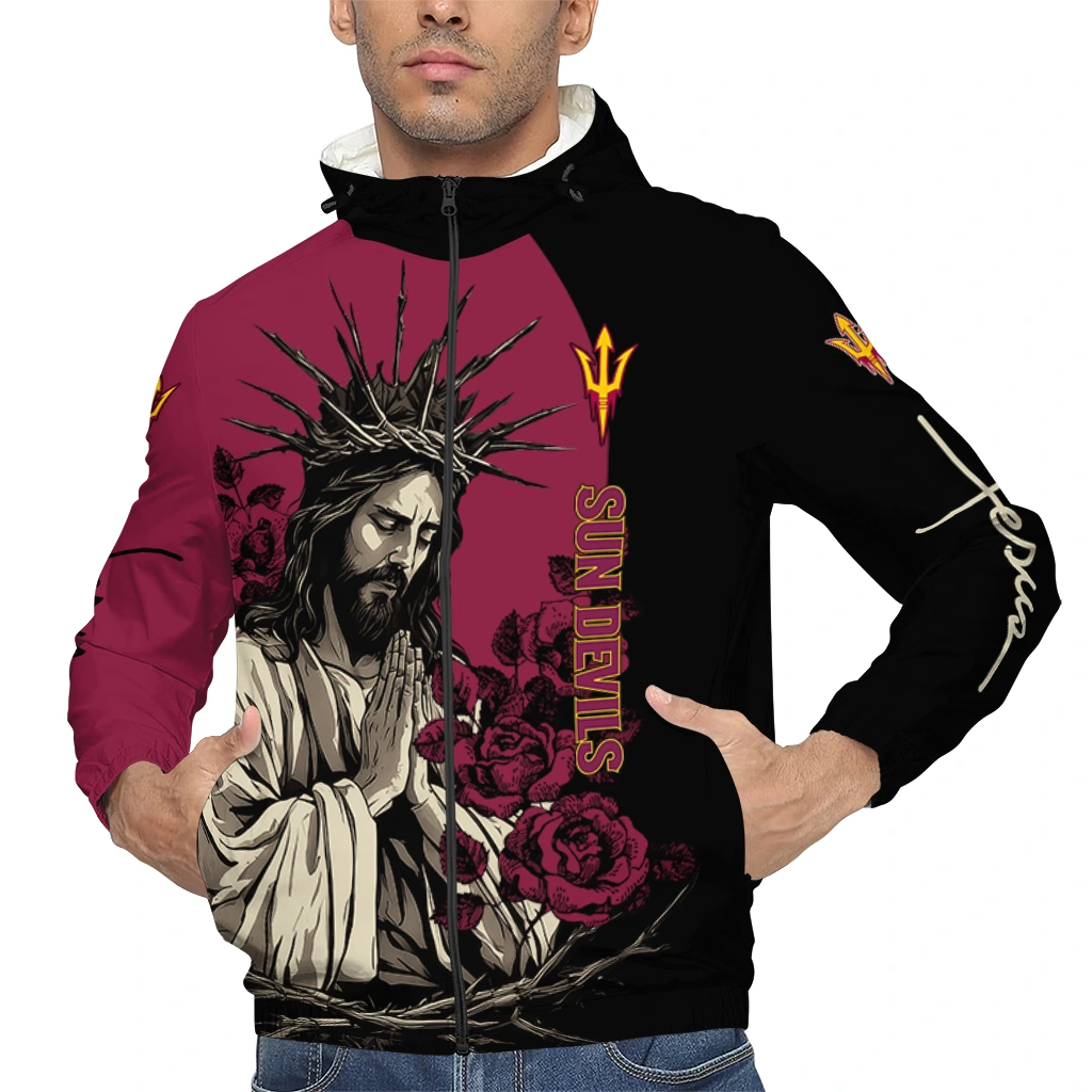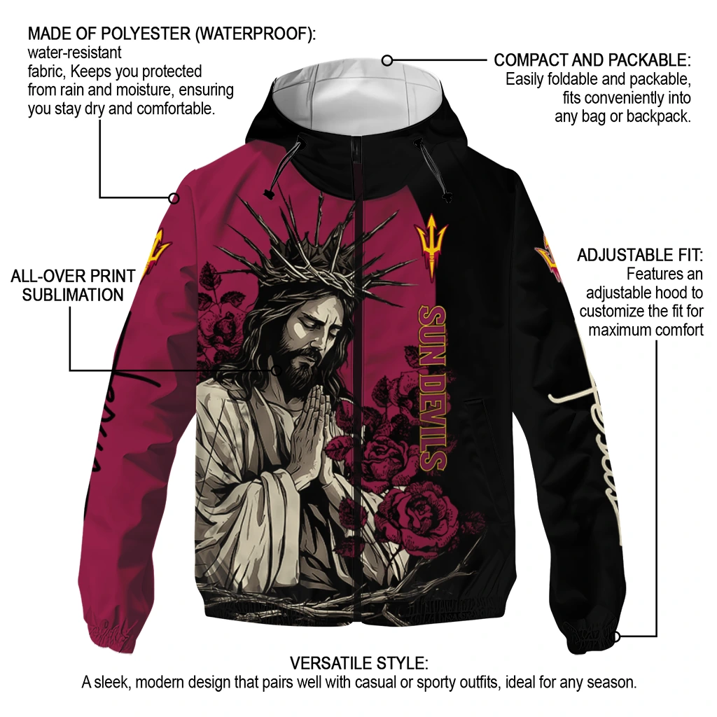Be the first to review “Arizona State Sun Devils Jesus Roses Maroon Black Windbreaker Jacket”