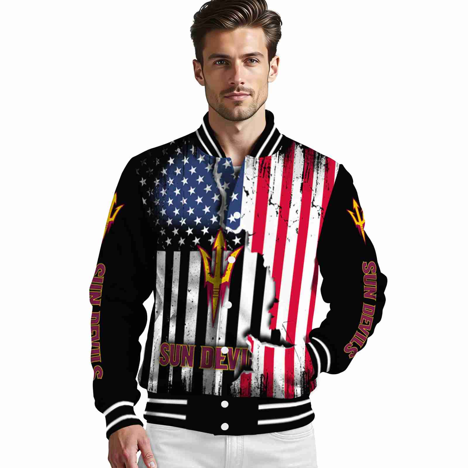 Be the first to review “Arizona State Sun Devils Patriotic Theme Black Varsity Jacket”