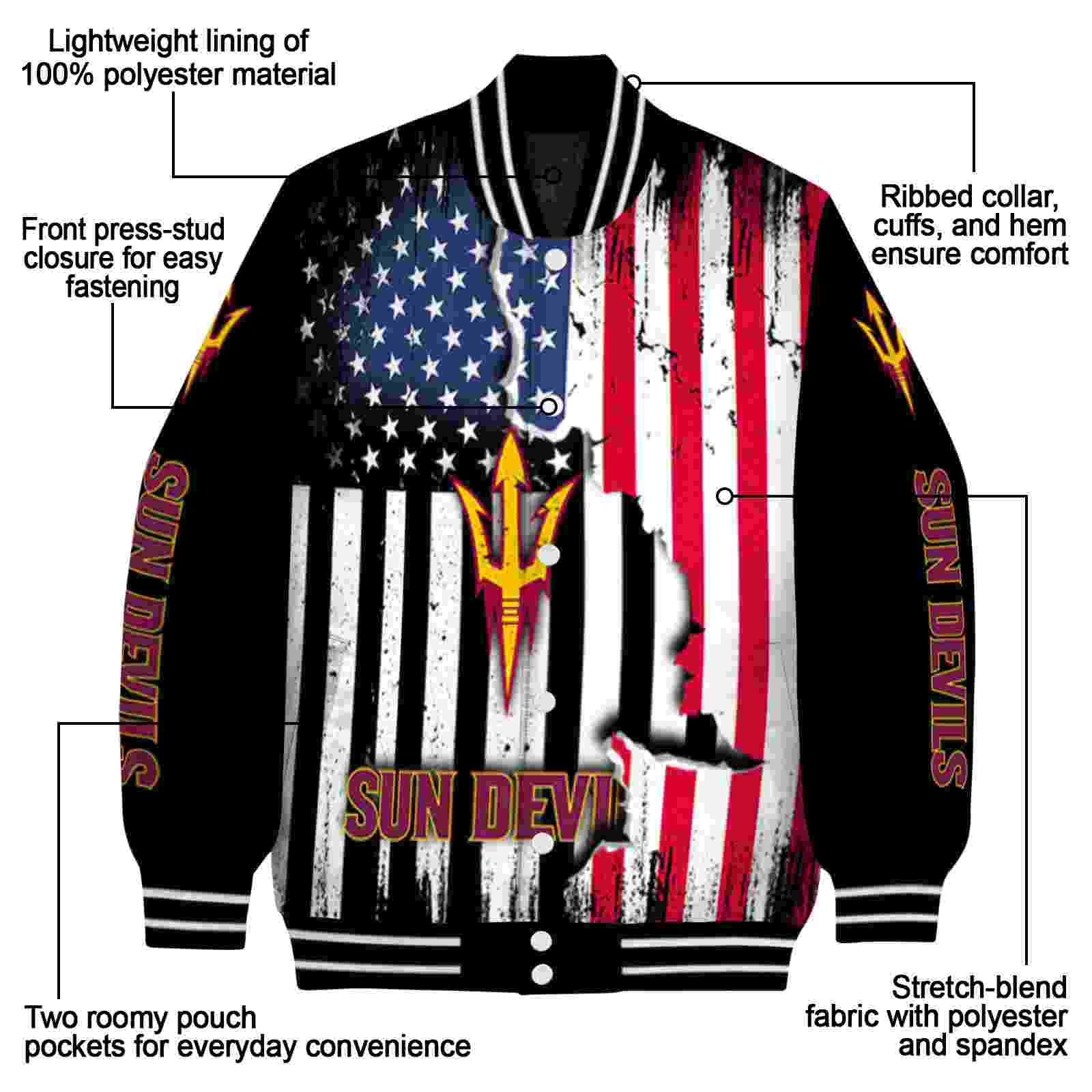 Arizona State Sun Devils Patriotic Theme Black Varsity Jacket