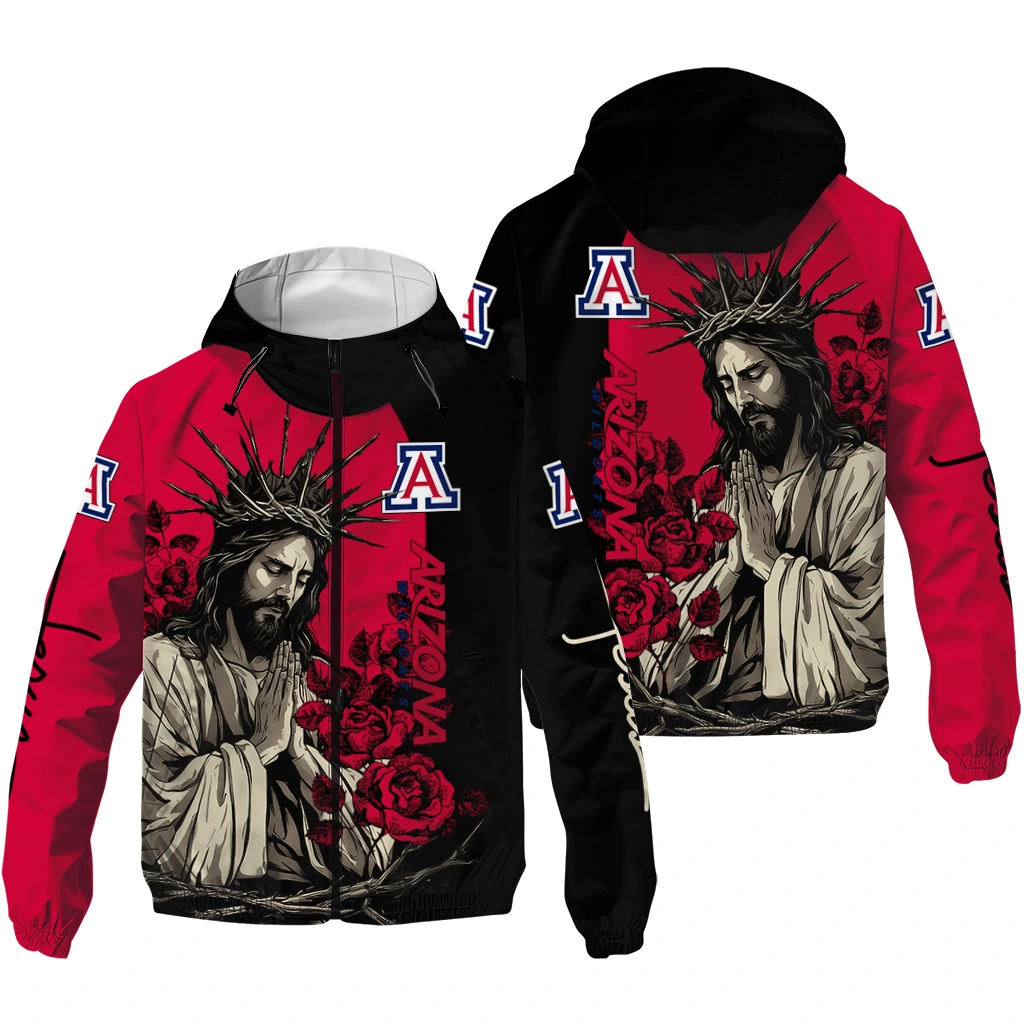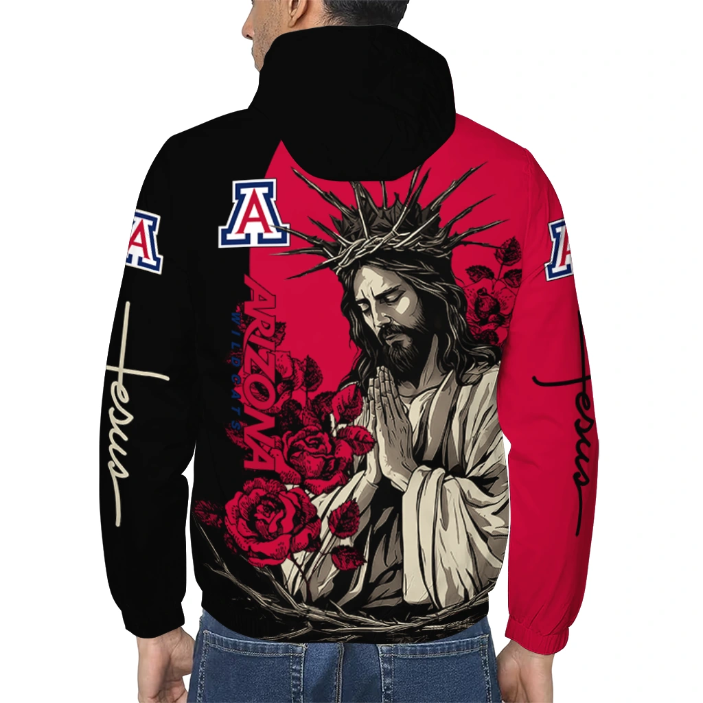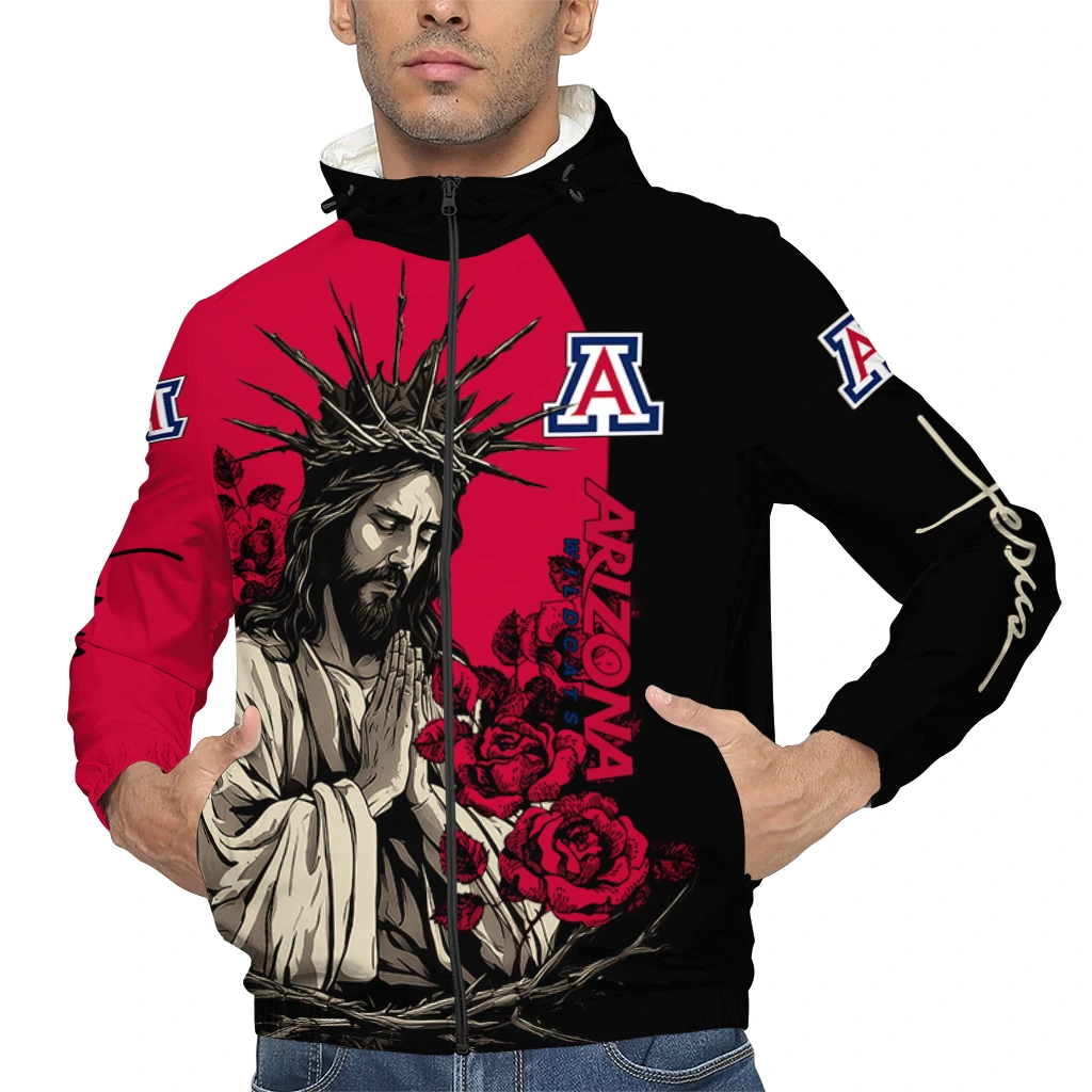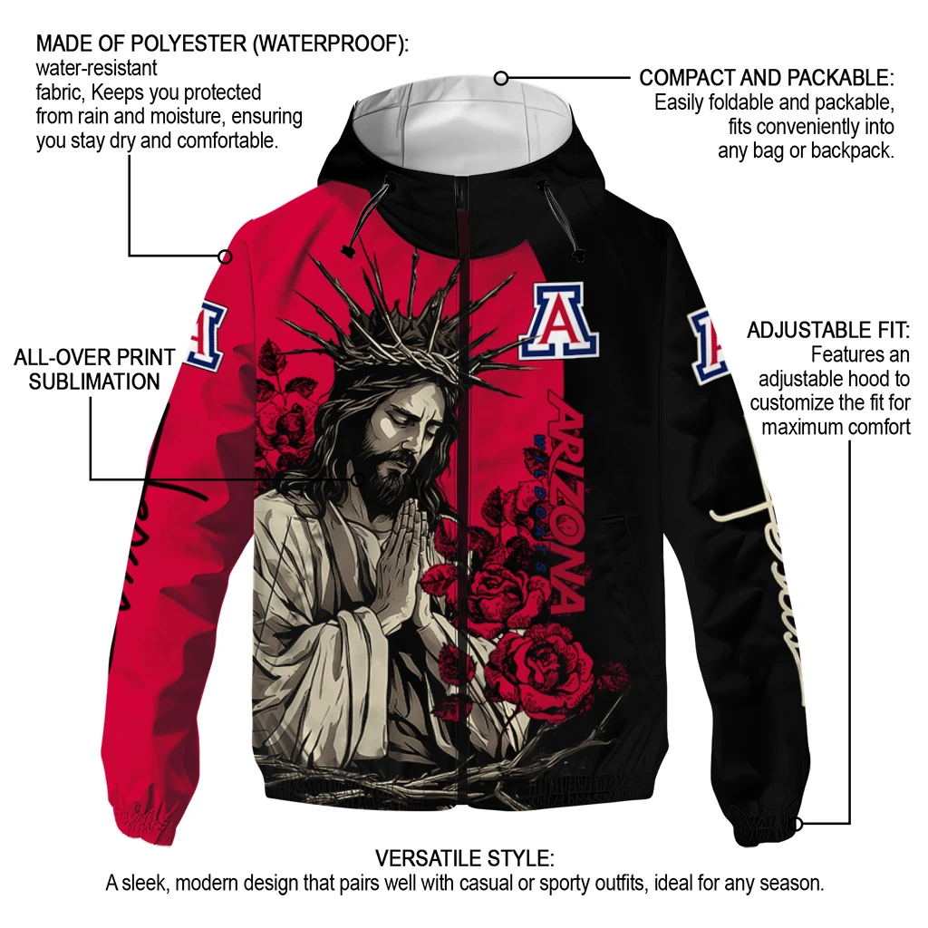 Arizona Wildcats Jesus Roses Red Black Windbreaker Jacket