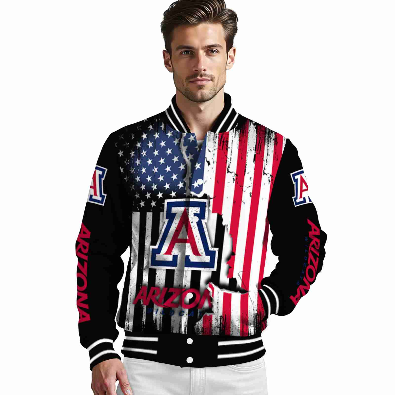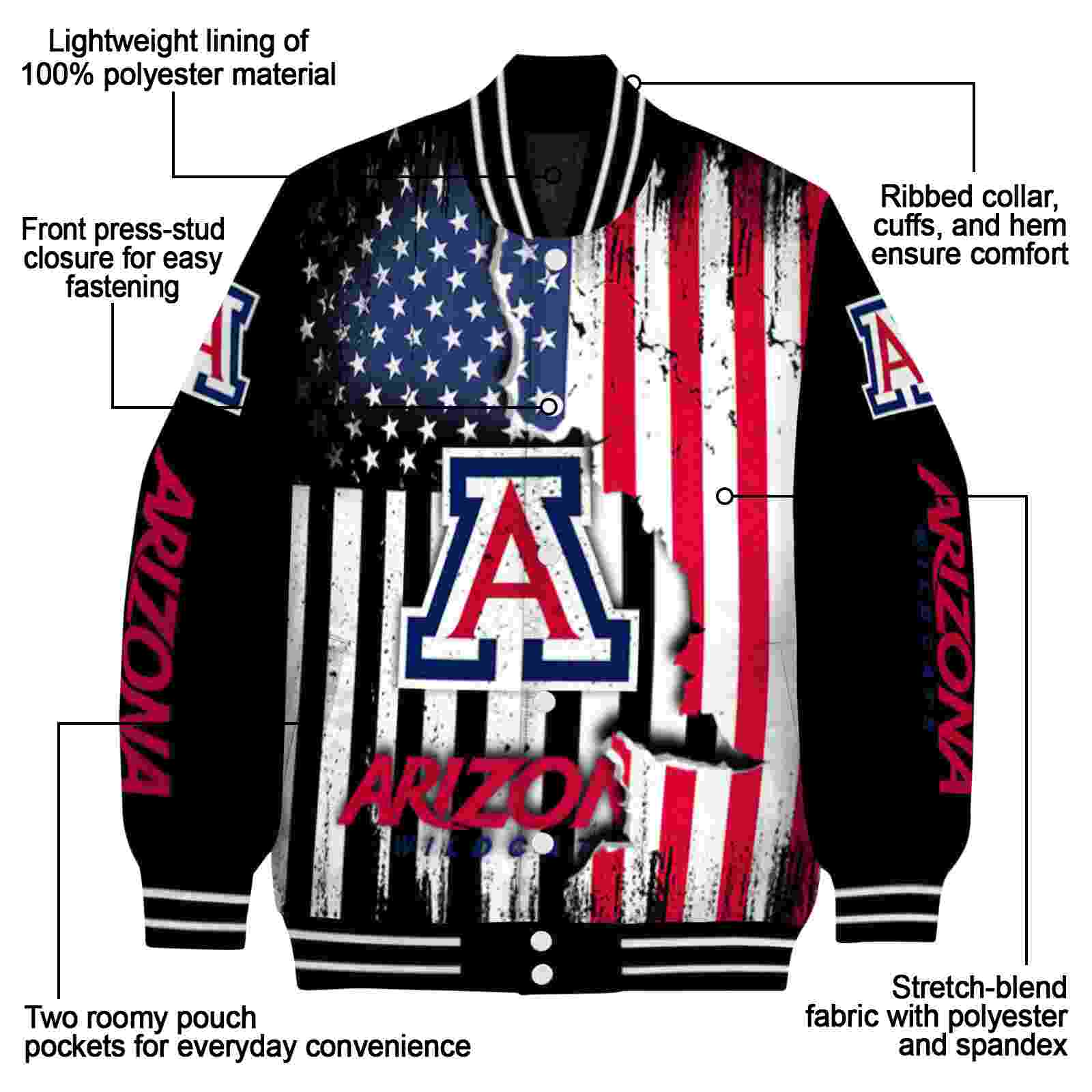 Arizona Wildcats Patriotic Theme Black Varsity Jacket
