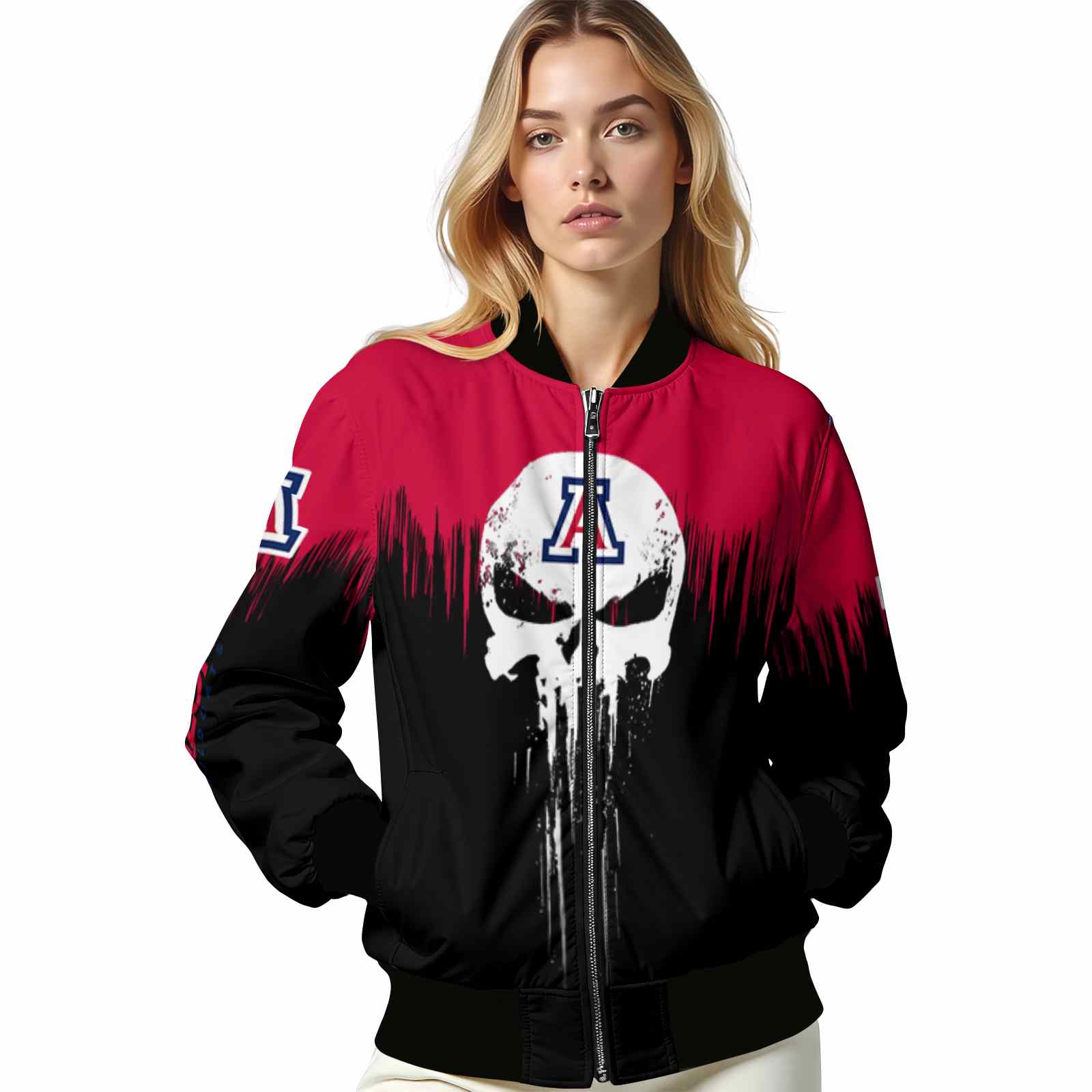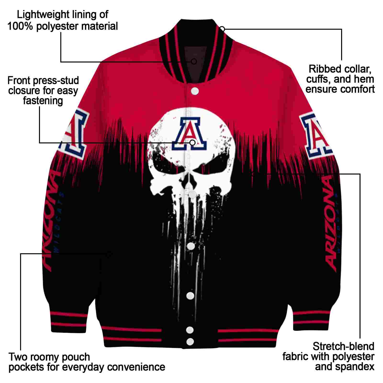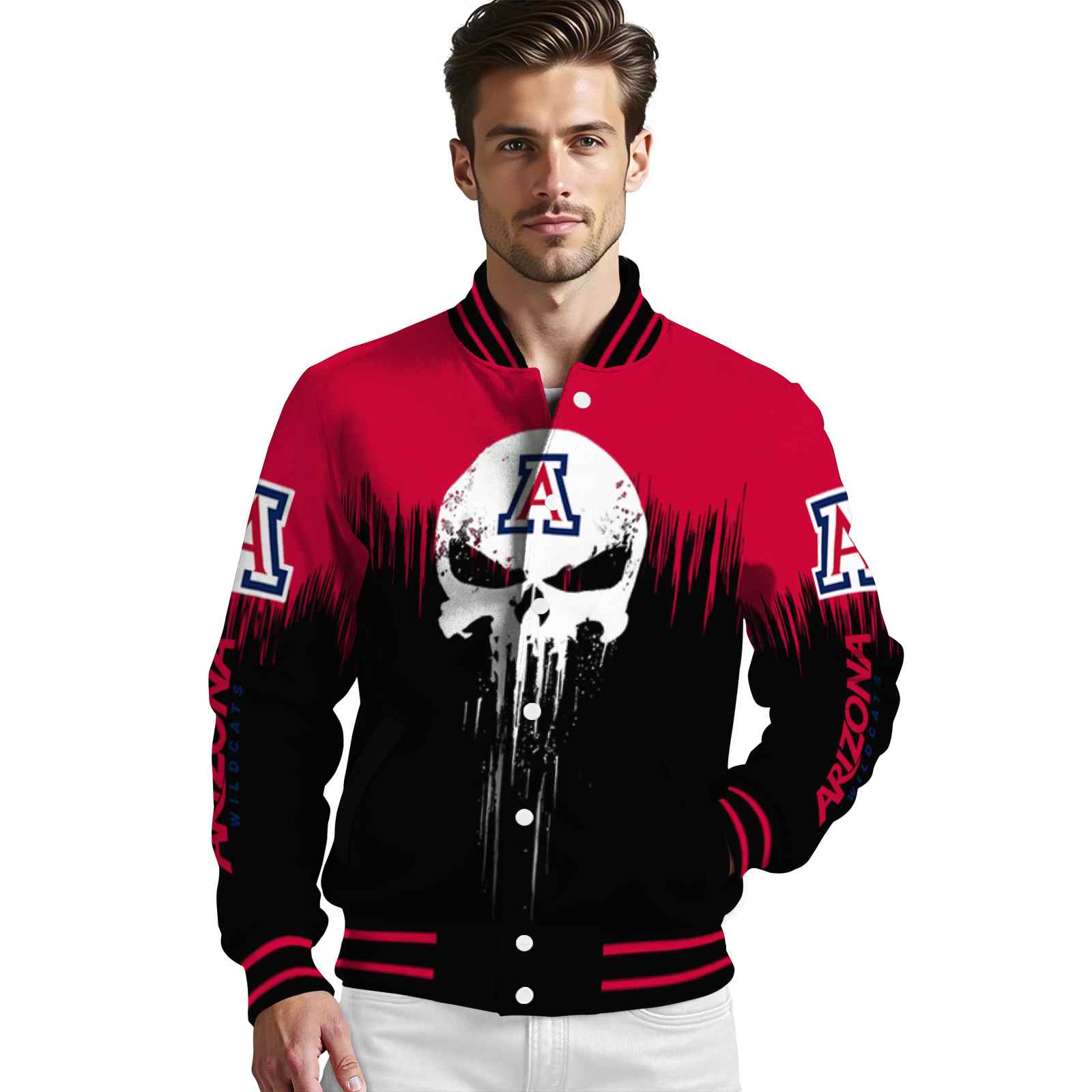 Arizona Wildcats Punisher Skull Red Black White Varsity Jacket