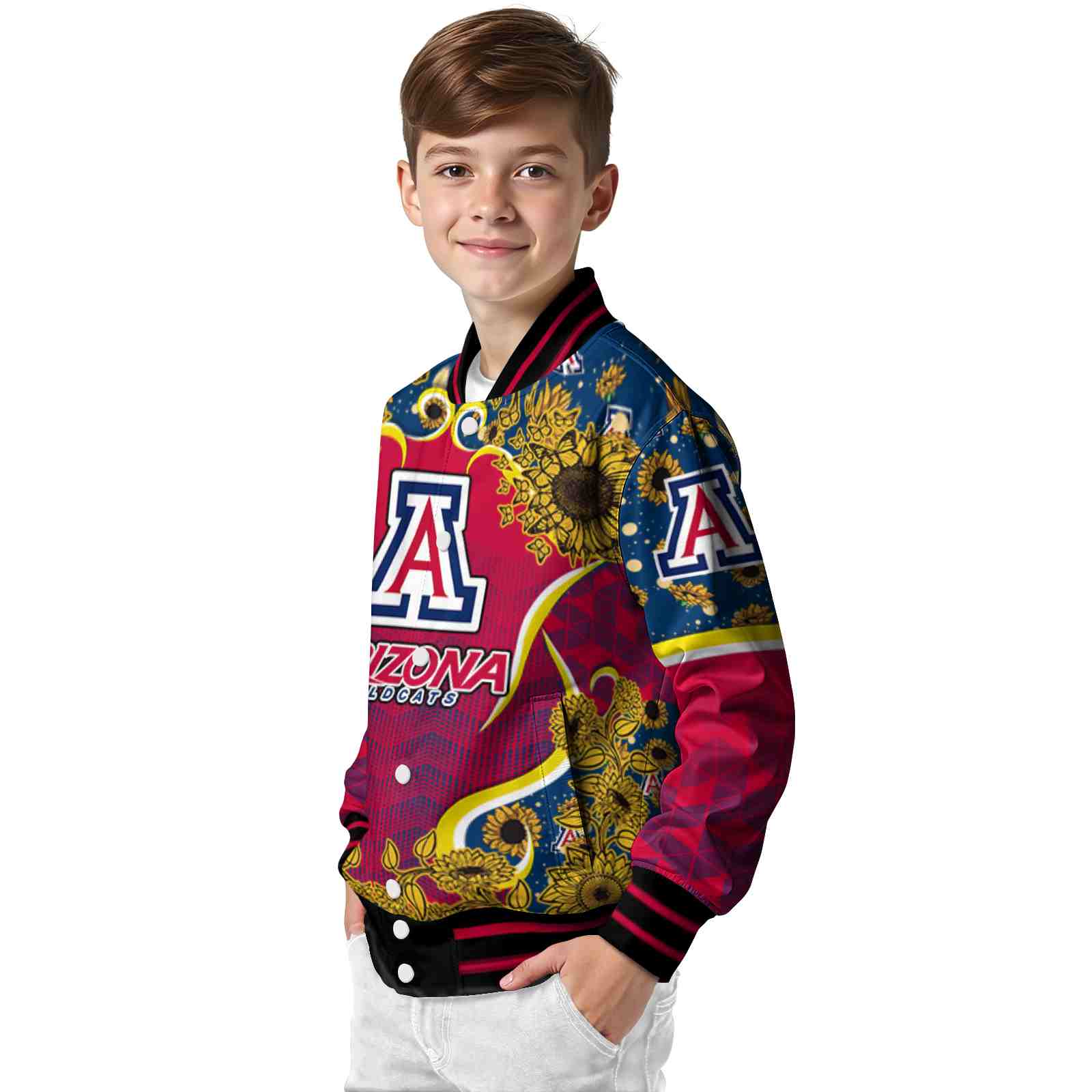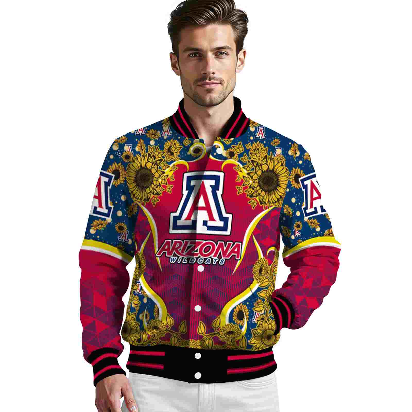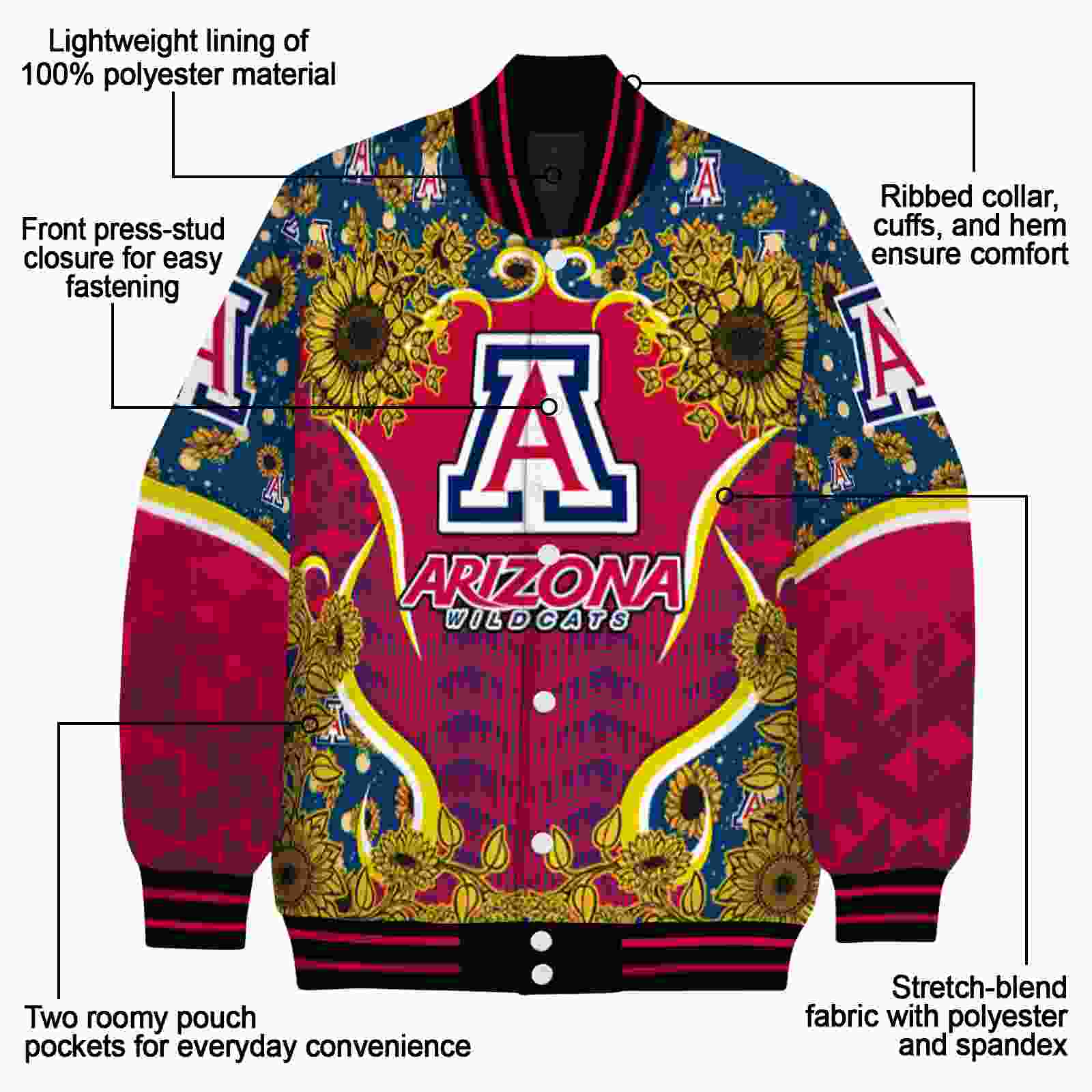 Be the first to review “Arizona Wildcats Sunflower Bloom Red Yellow Varsity Jacket”