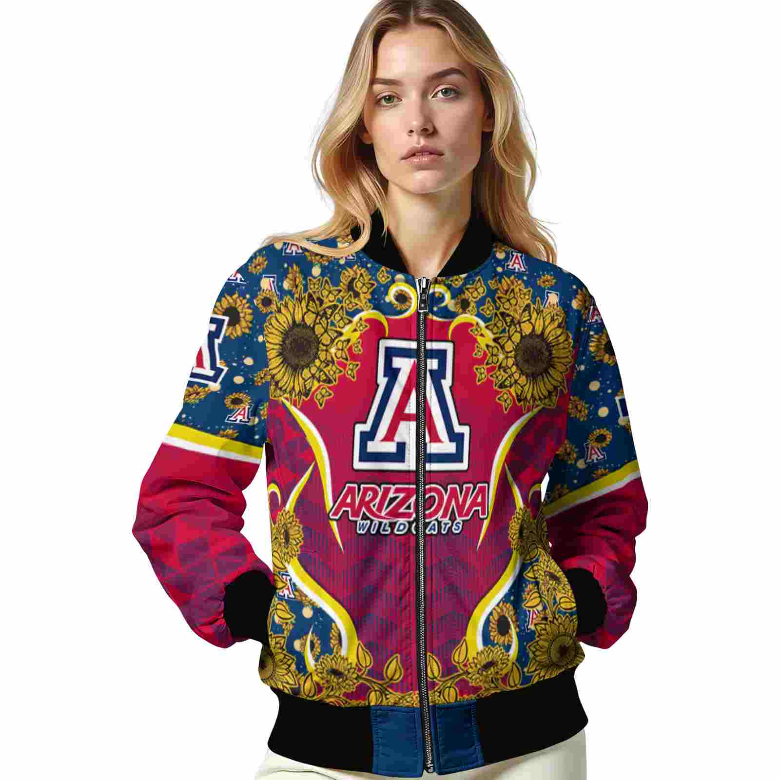 Arizona Wildcats Sunflower Bloom Red Yellow Varsity Jacket