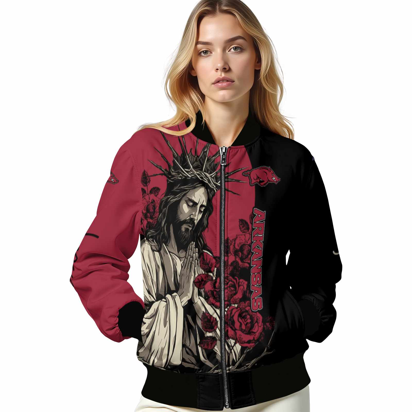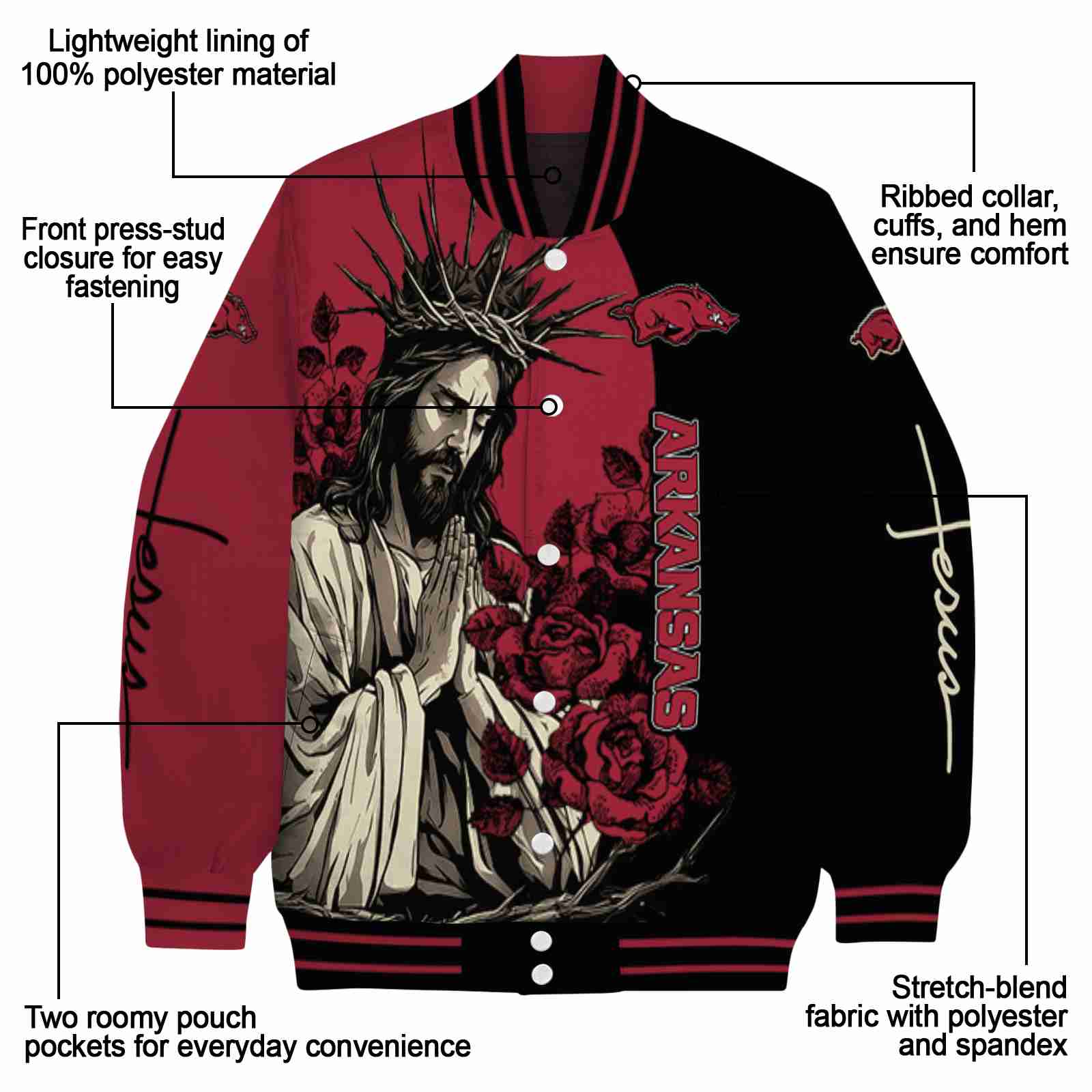 Arkansas Razorbacks Hands In Prayer Red Black Varsity Jacket