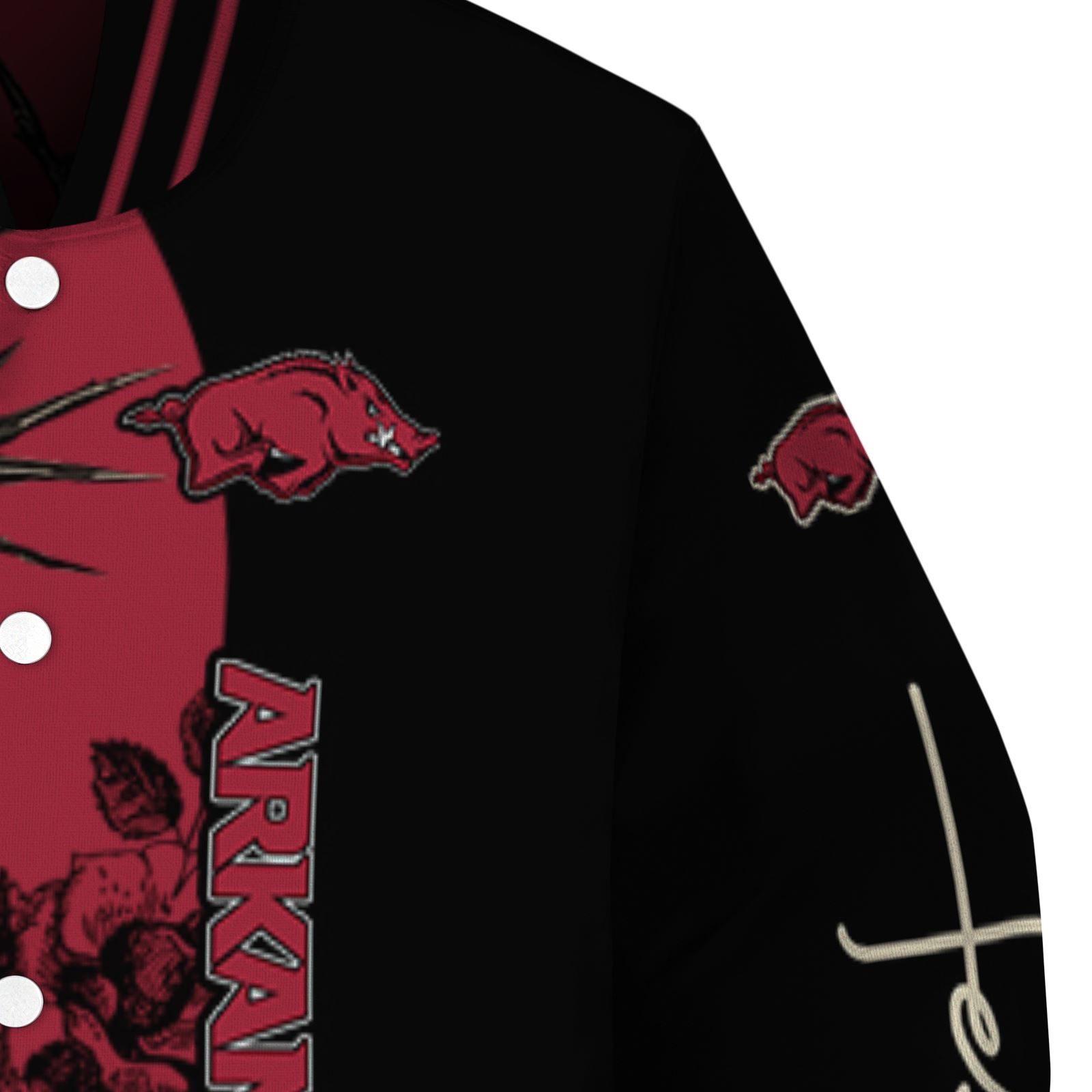 Be the first to review “Arkansas Razorbacks Hands In Prayer Red Black Varsity Jacket”