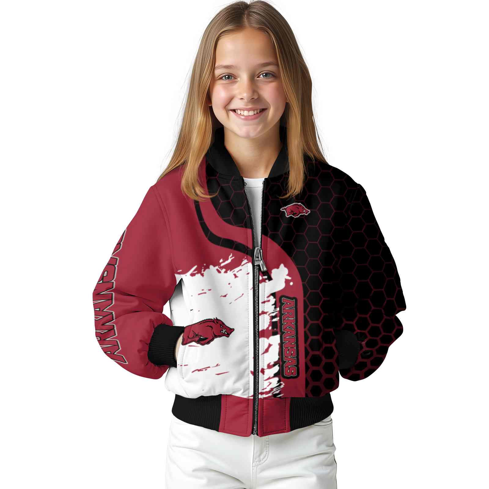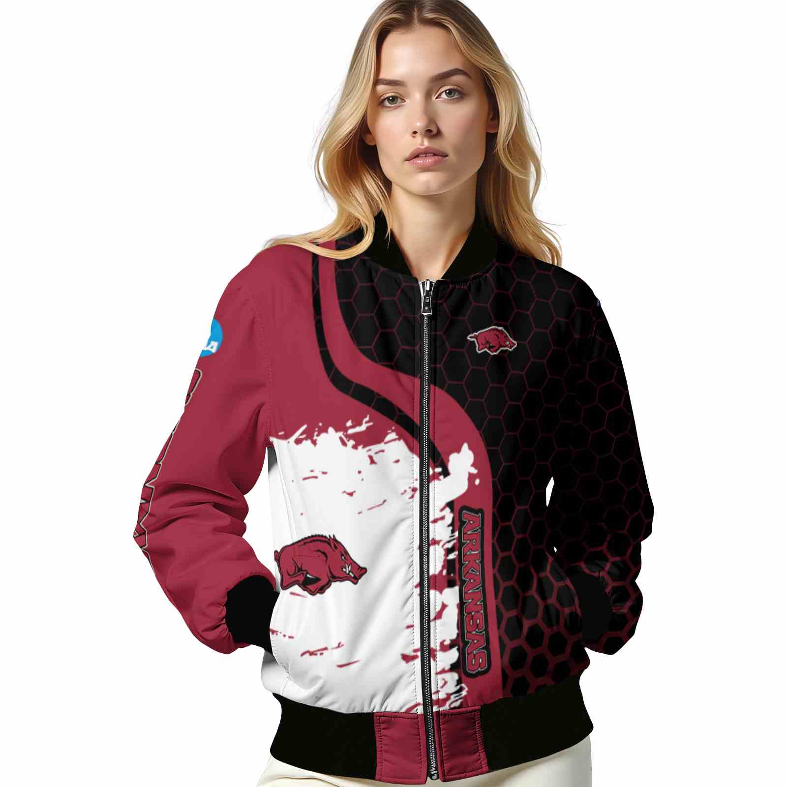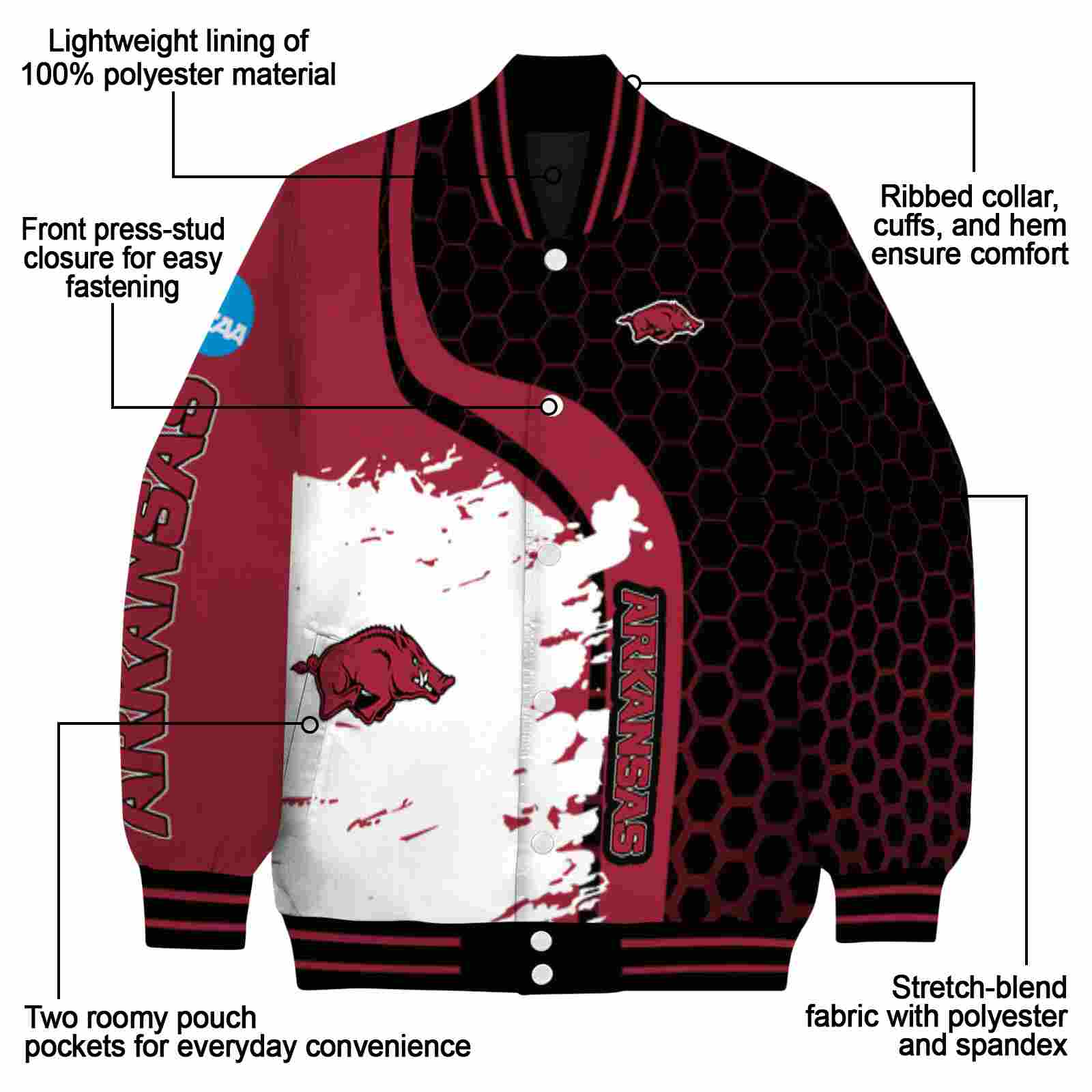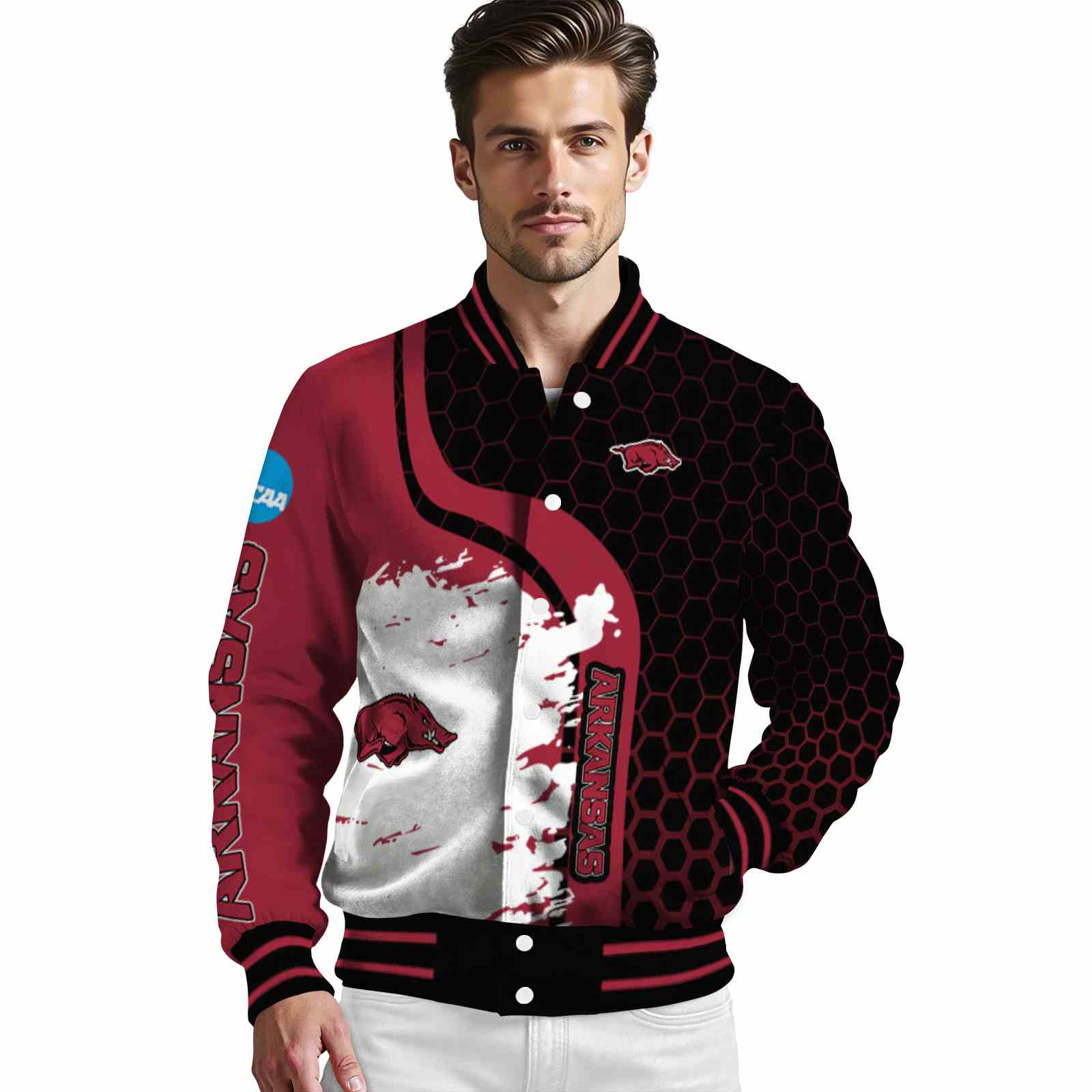 Arkansas Razorbacks Hexagonal Pattern Red Black Varsity Jacket