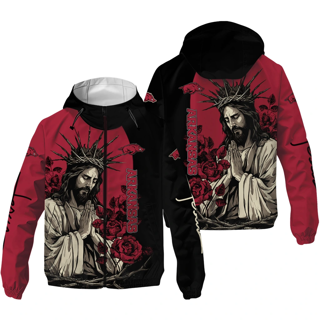 Be the first to review “Arkansas Razorbacks Jesus Roses Red Black Windbreaker Jacket”