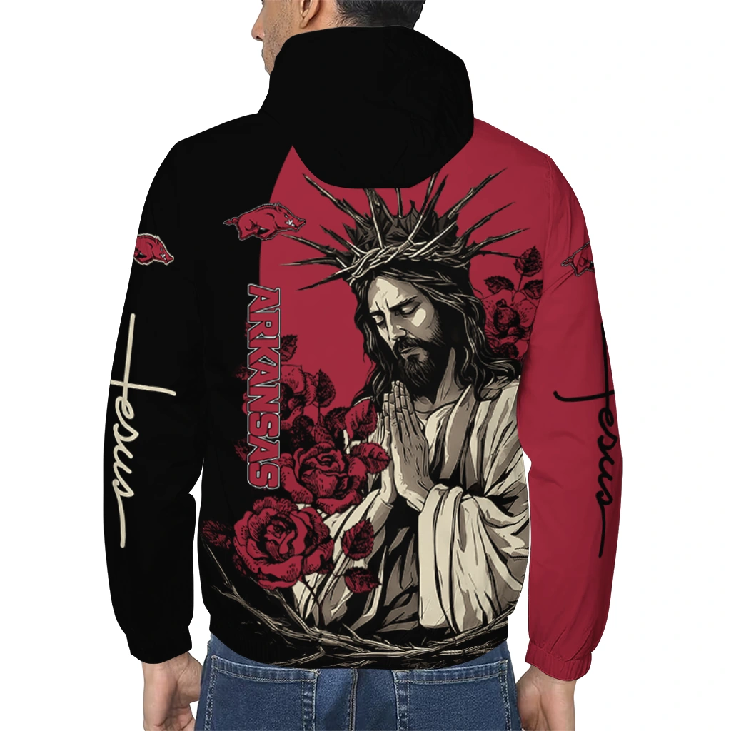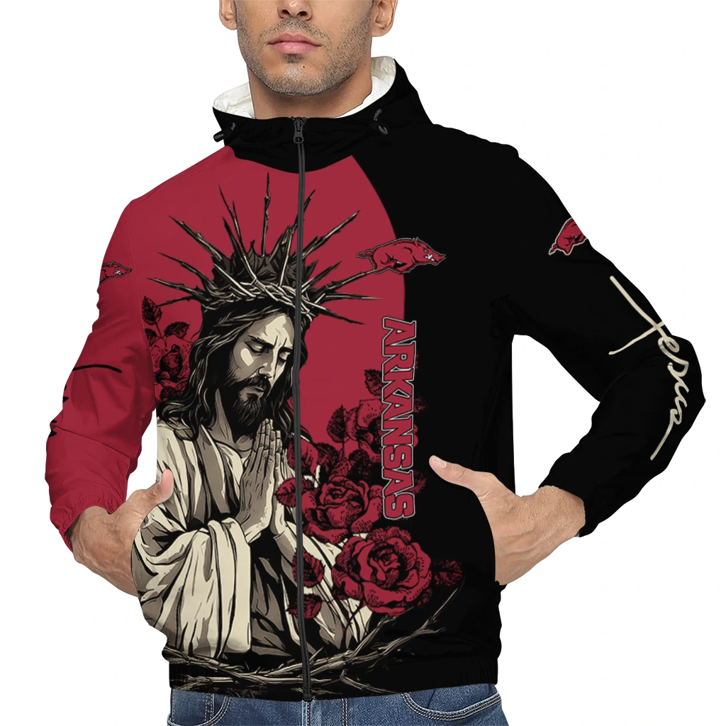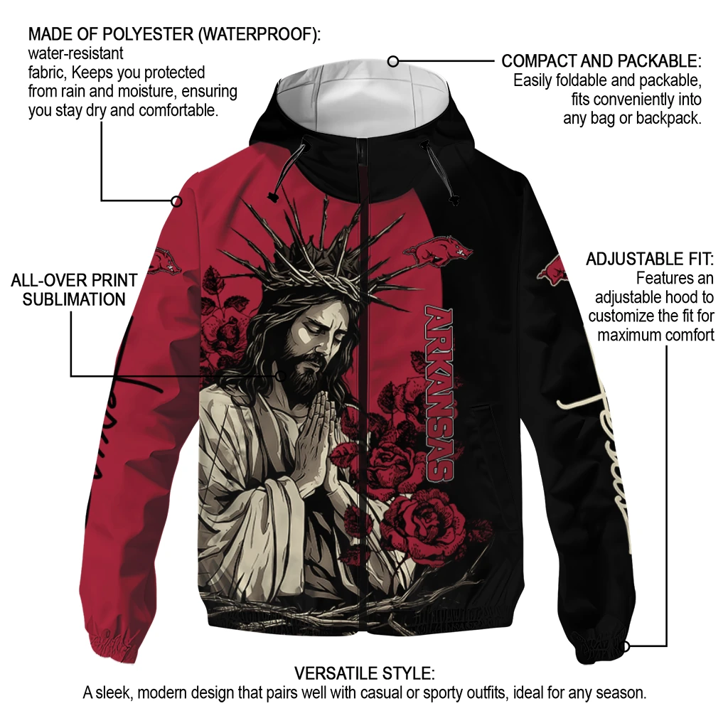 Arkansas Razorbacks Jesus Roses Red Black Windbreaker Jacket