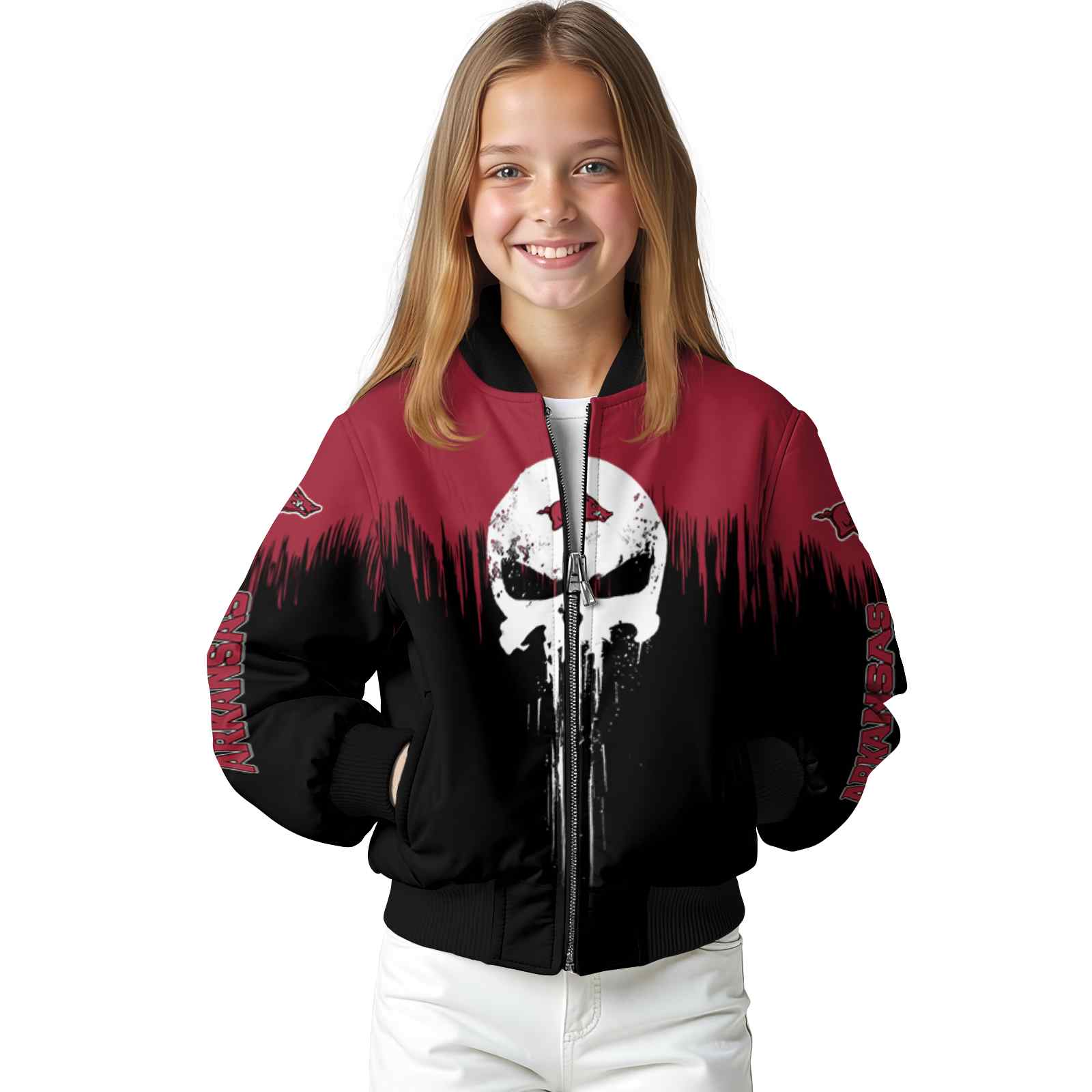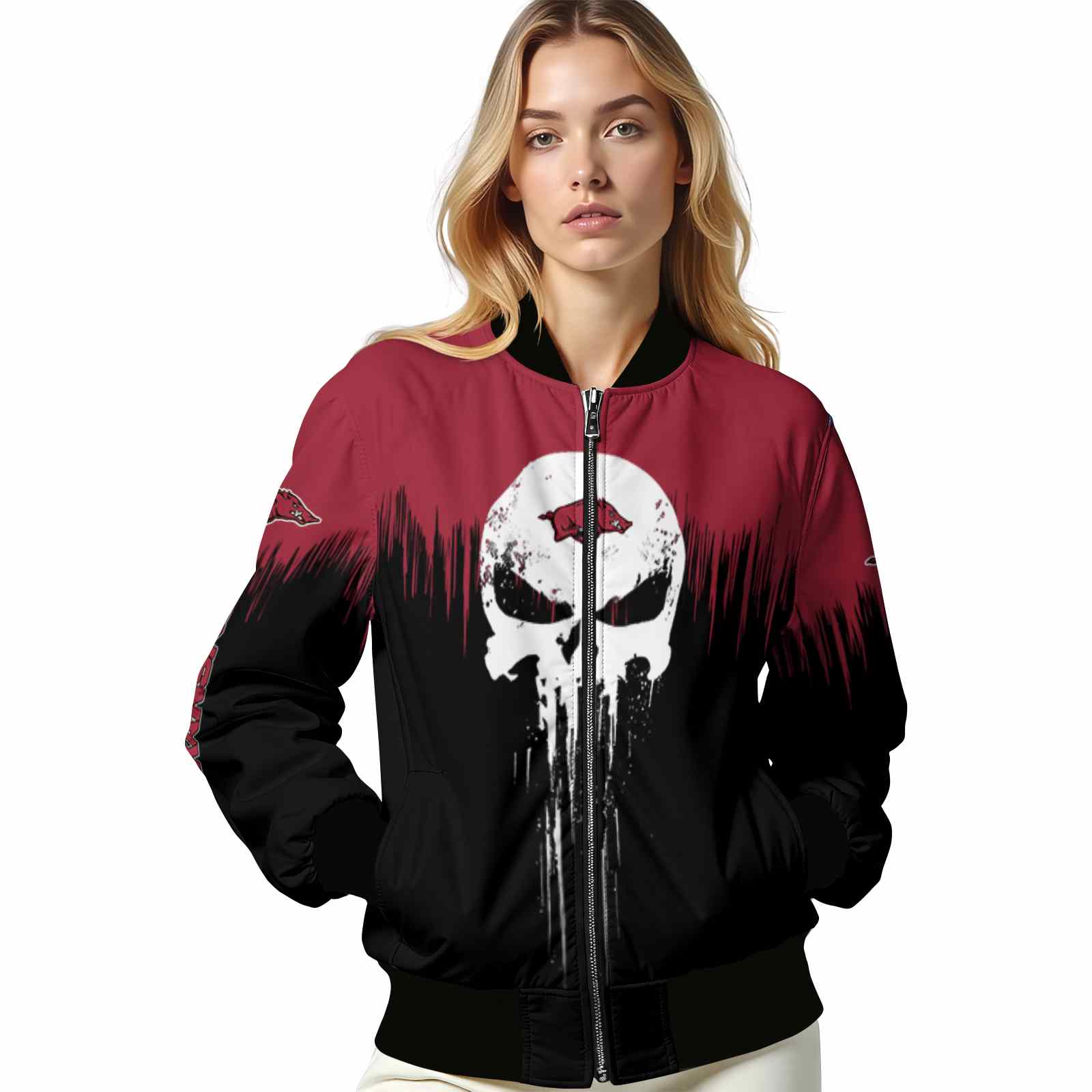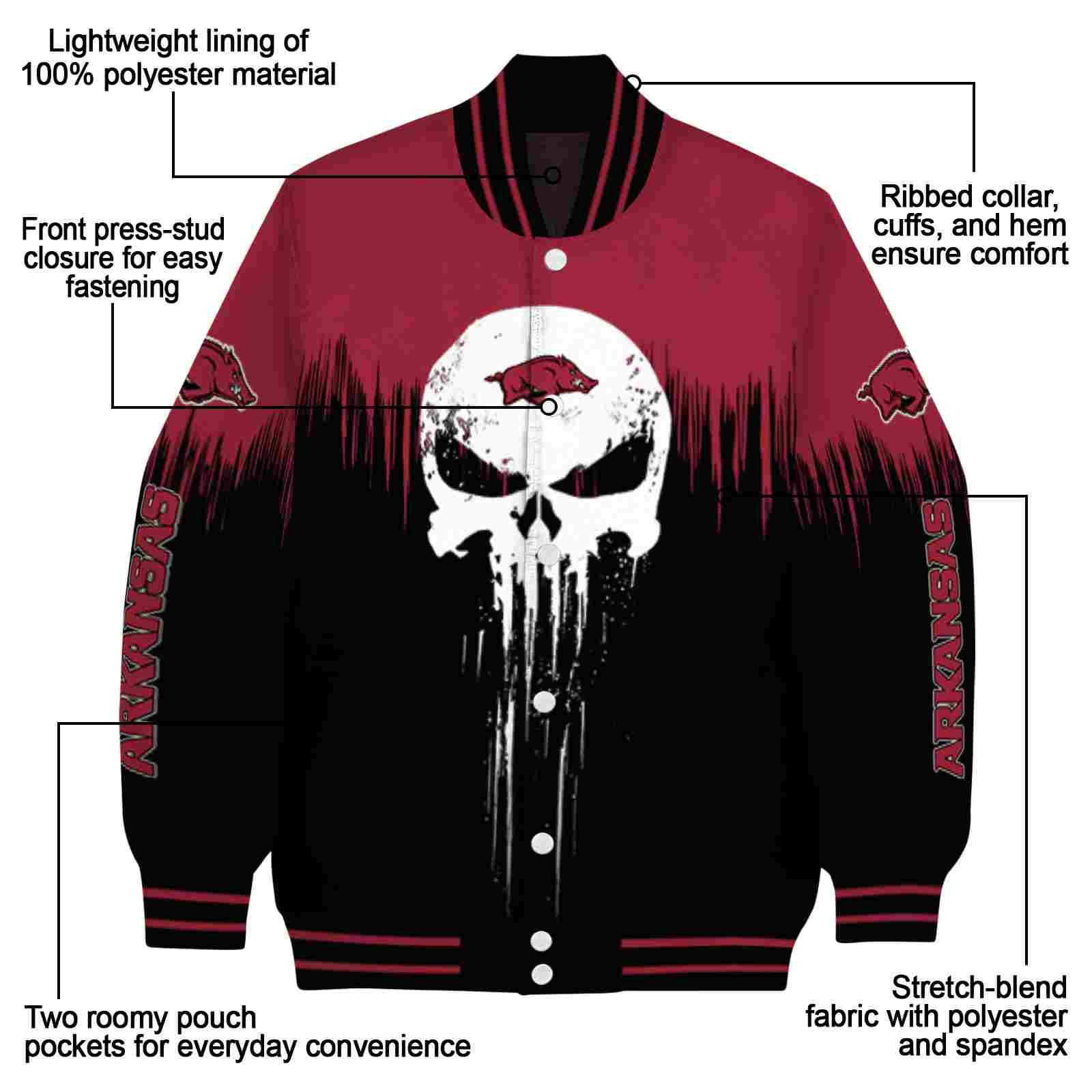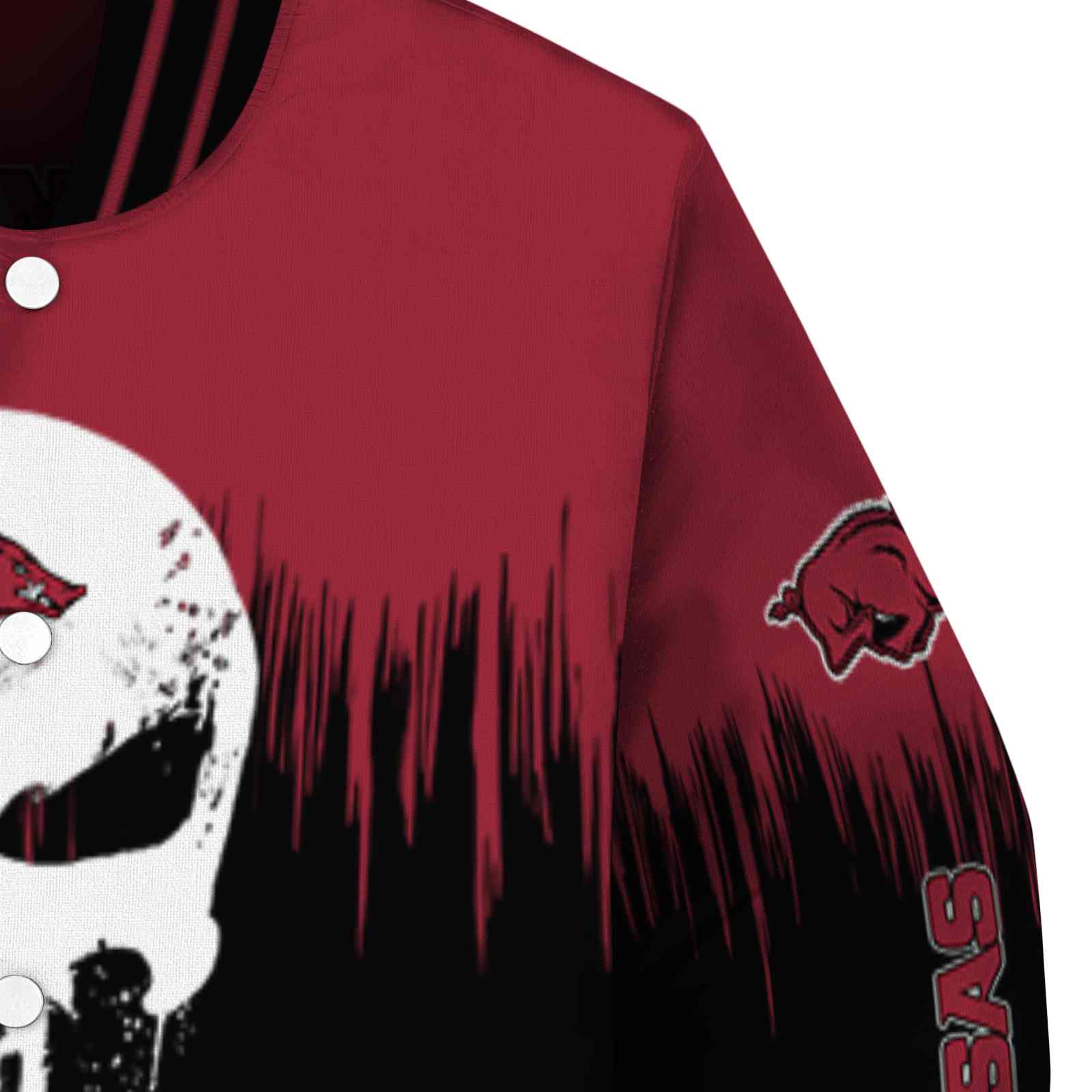 Arkansas Razorbacks Punisher Skull Red Black White Varsity Jacket