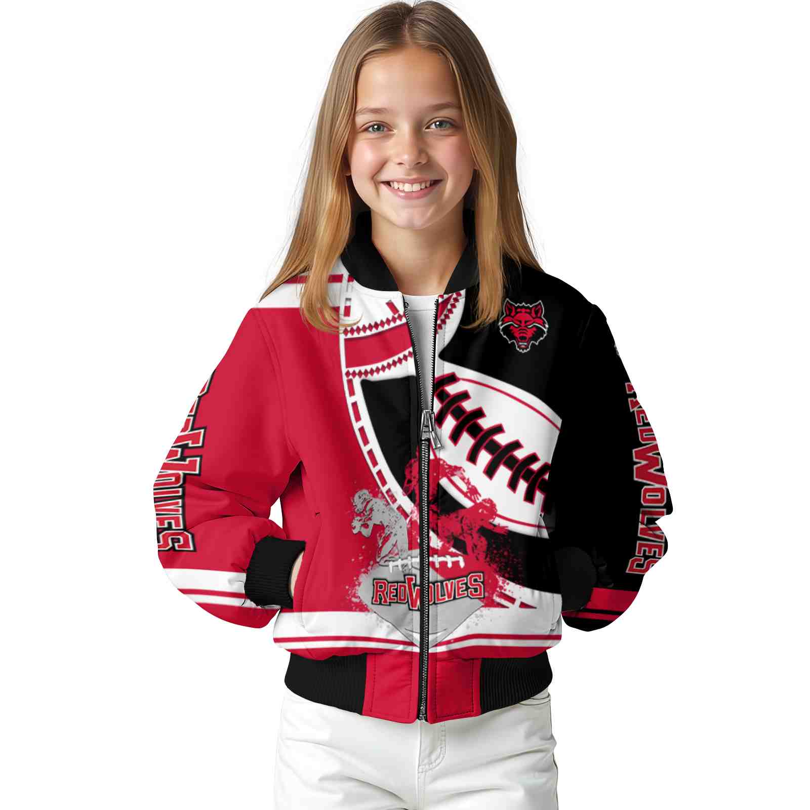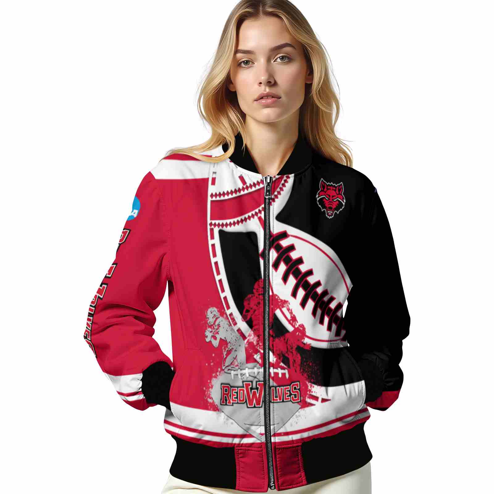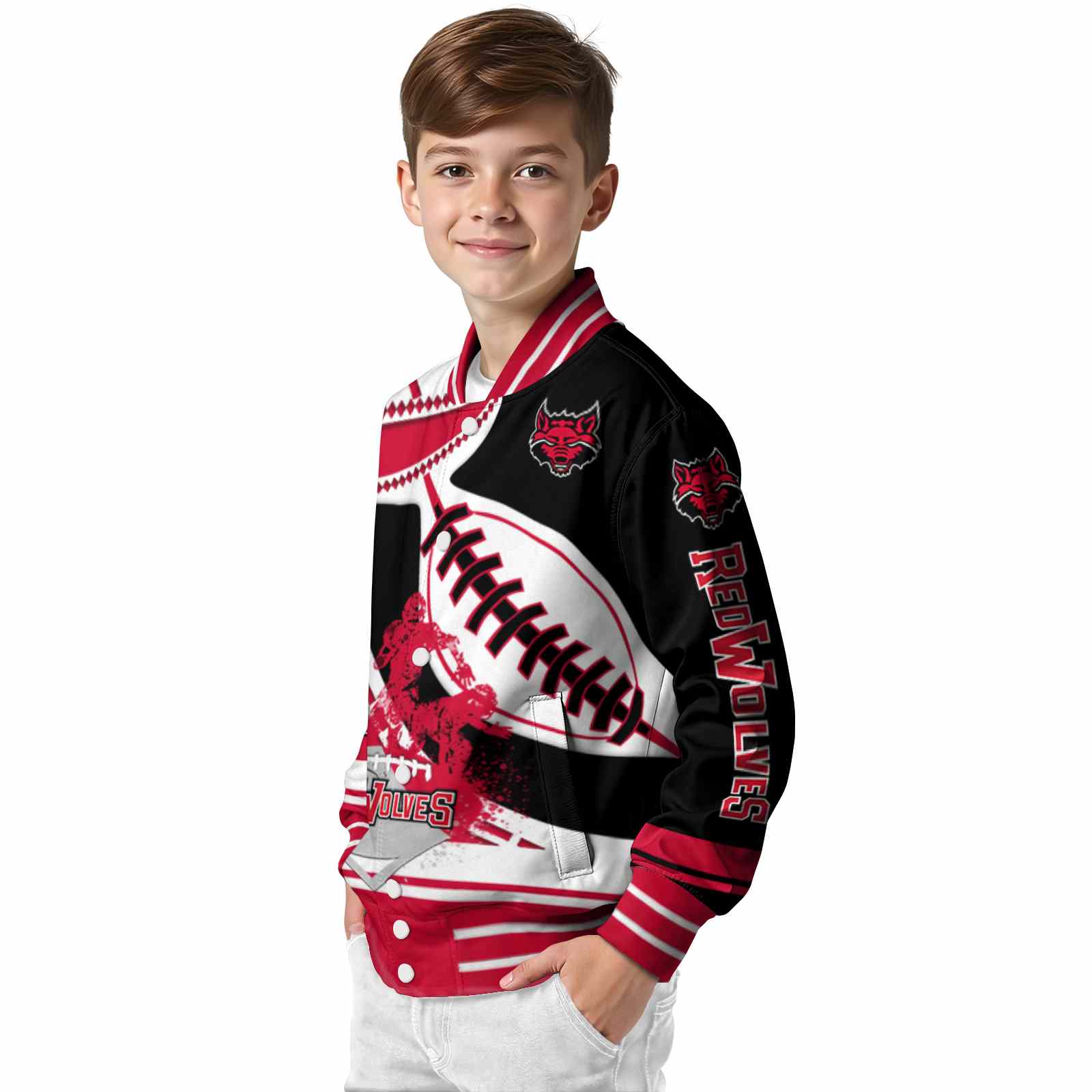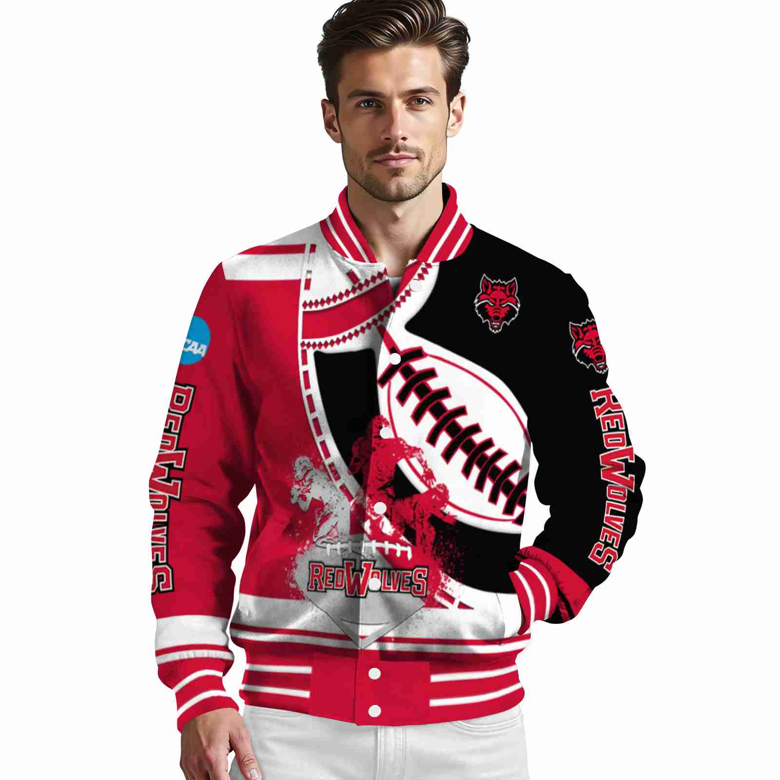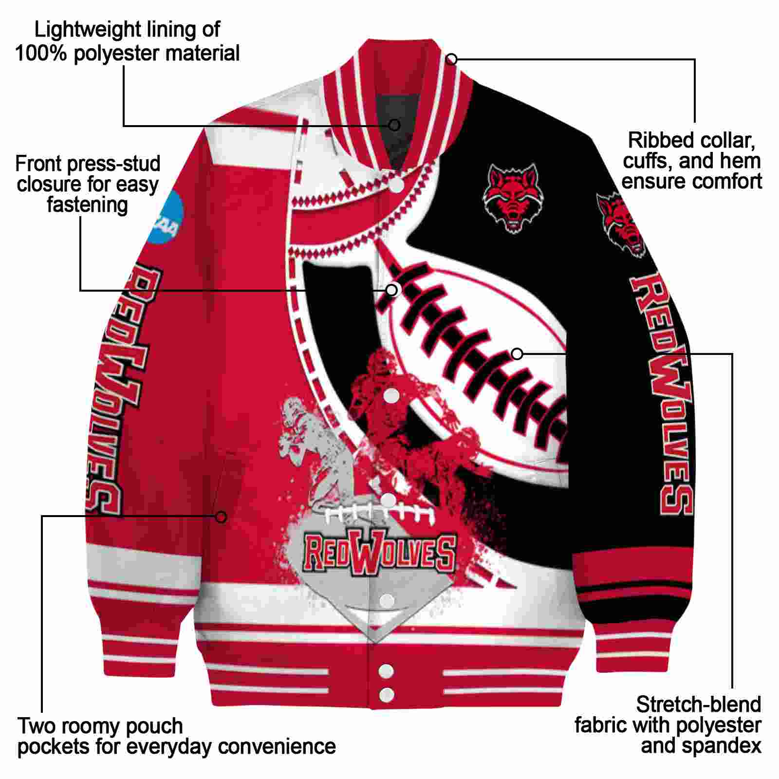 Arkansas State Red Wolves Baseball Stitching Black White Varsity Jacket
