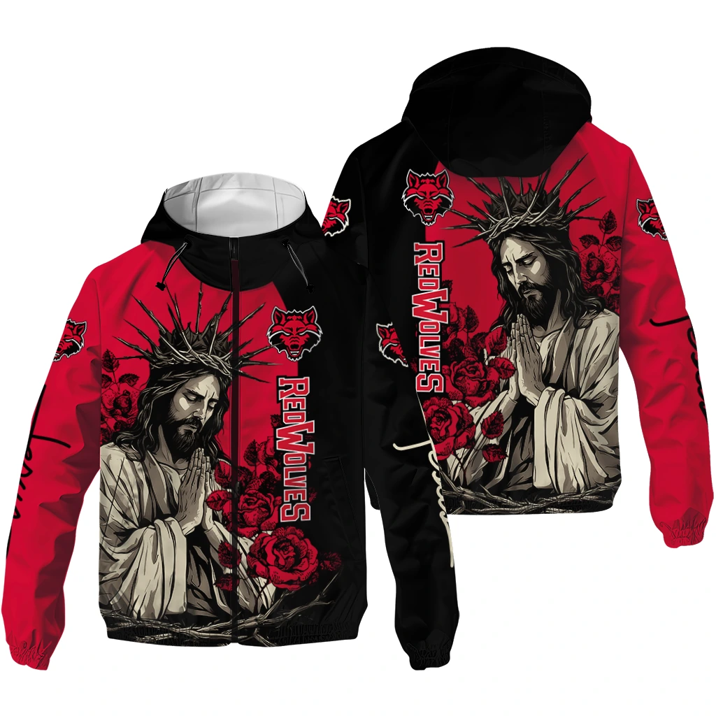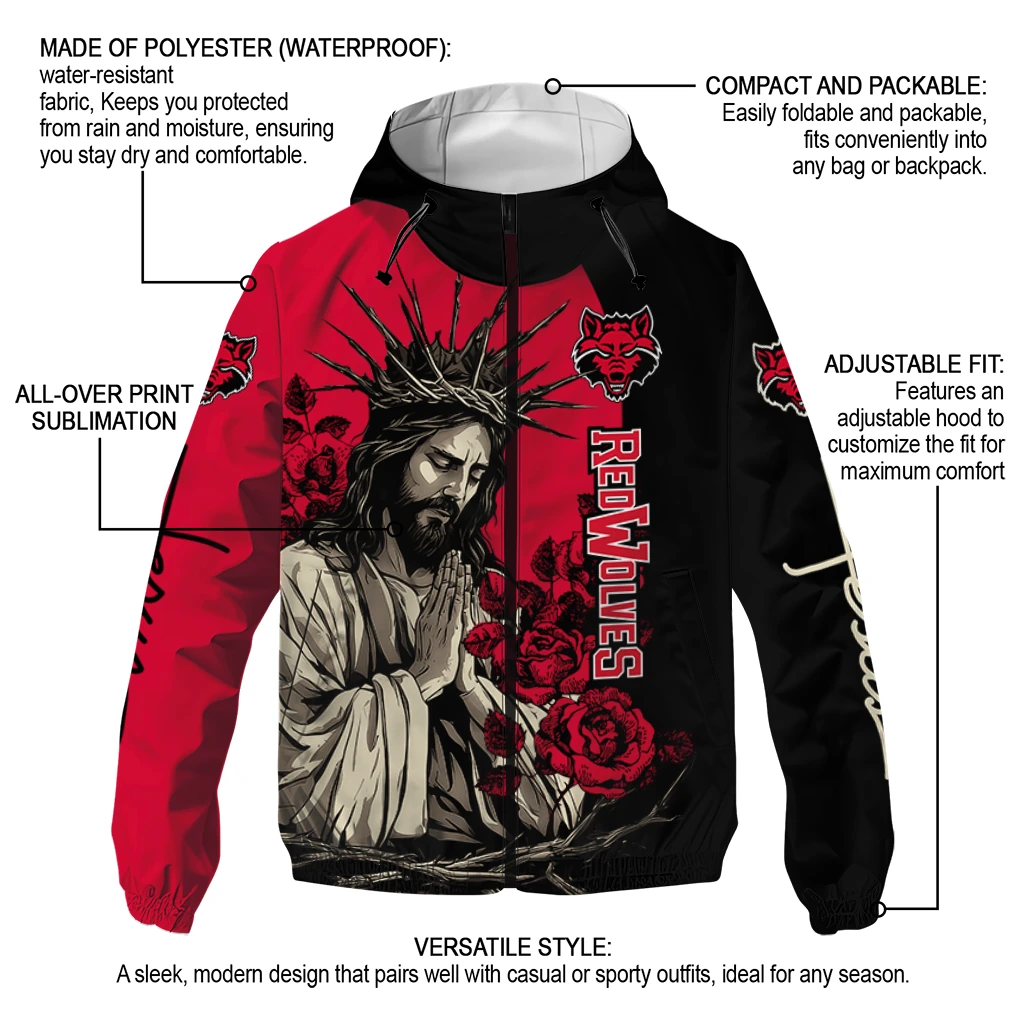 Arkansas State Red Wolves Jesus Roses Scarlet Black Windbreaker Jacket