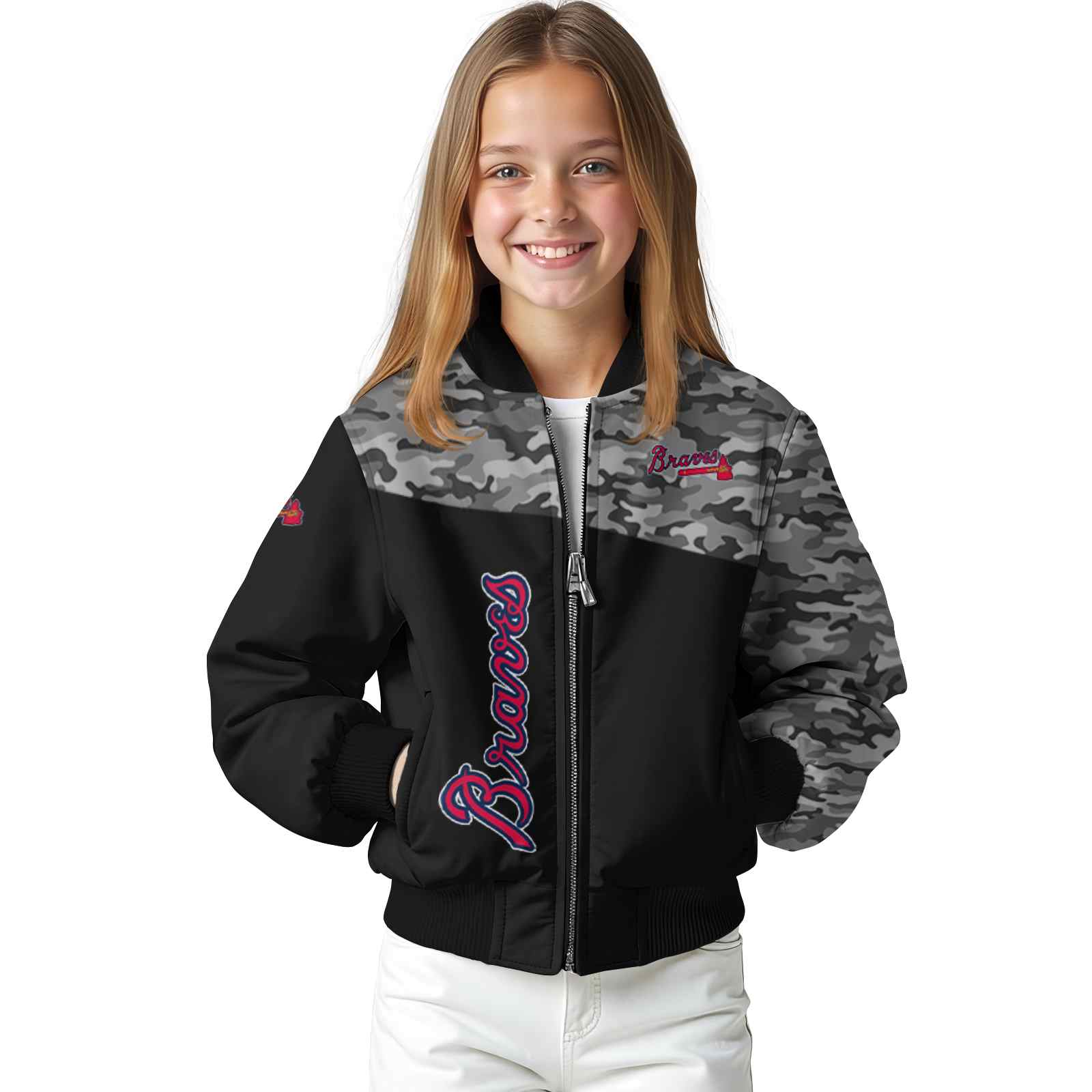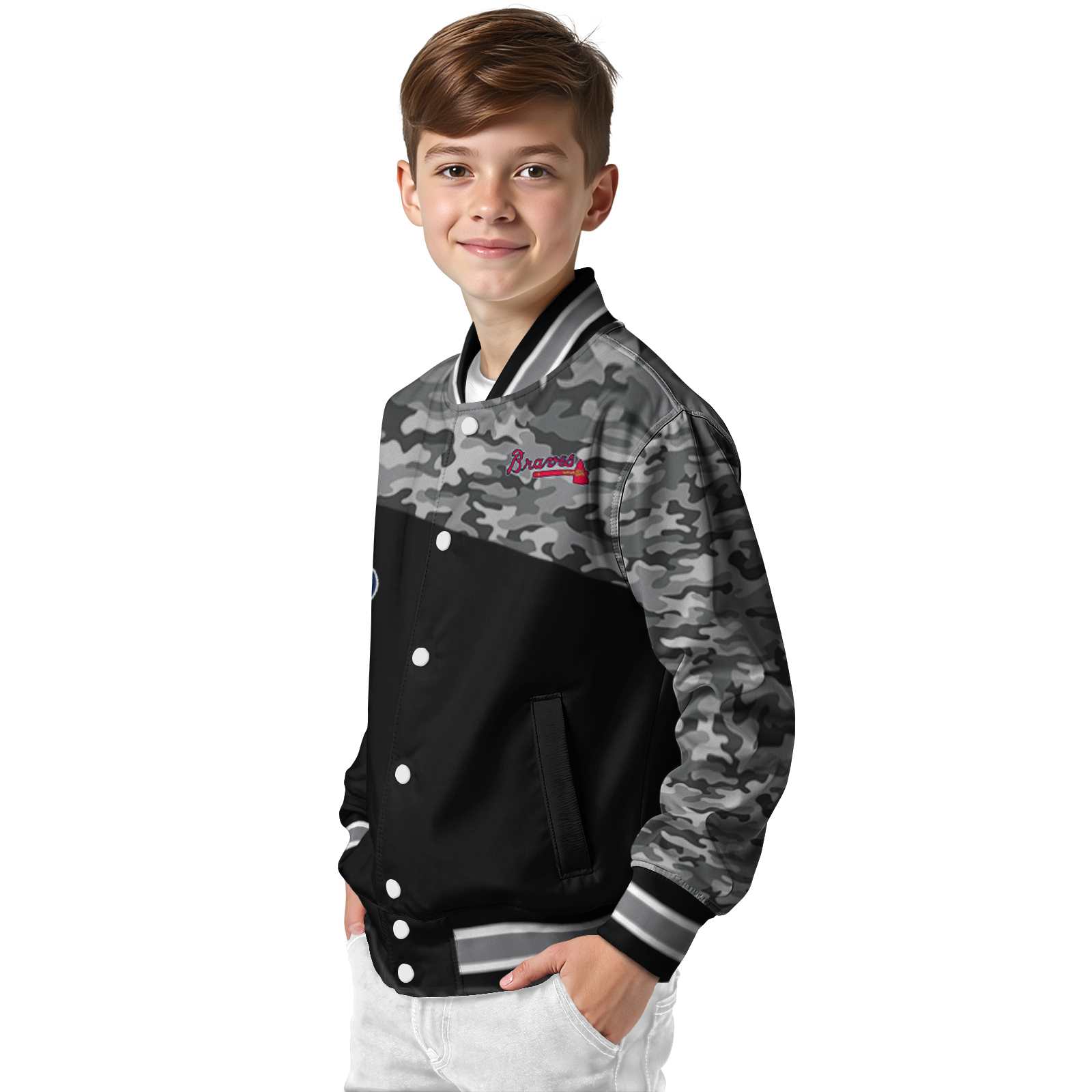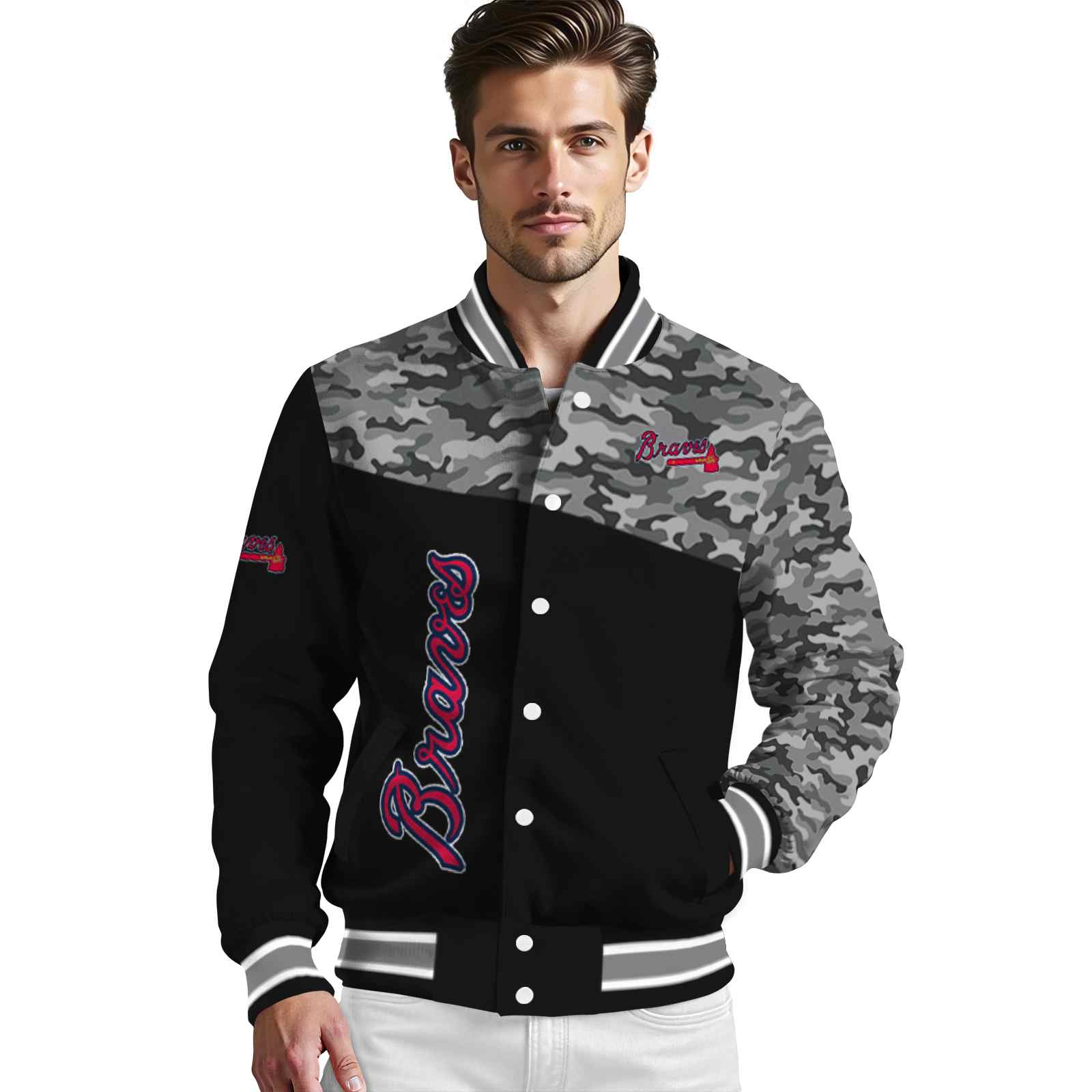 Atlanta Braves Camo Patchwork Black Varsity Jacket