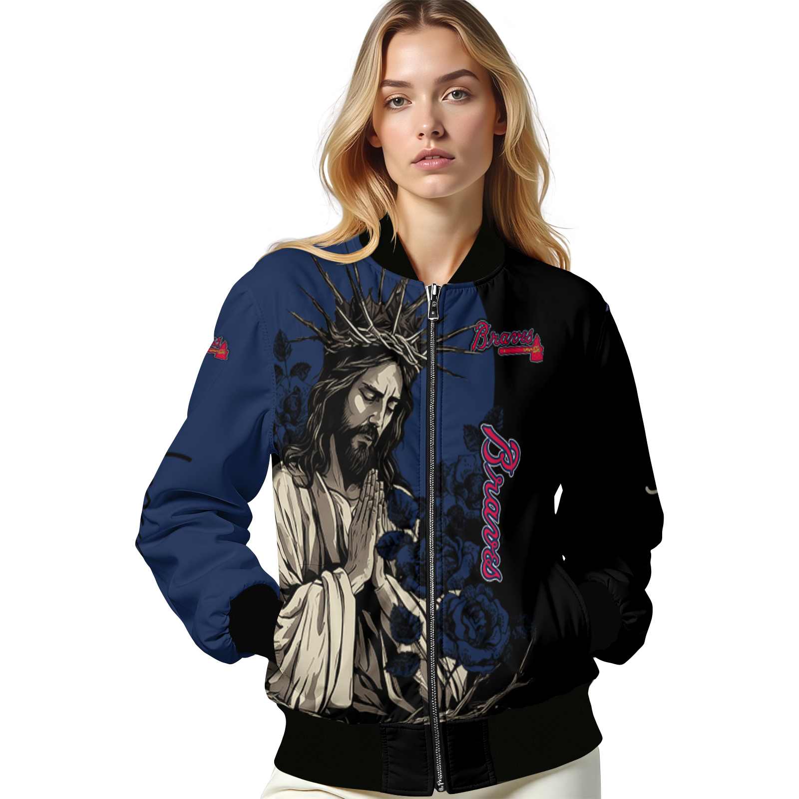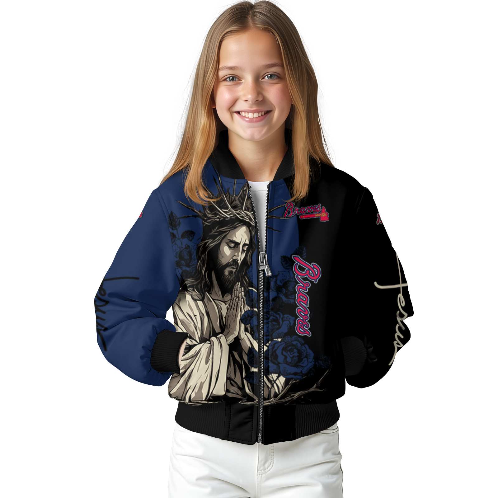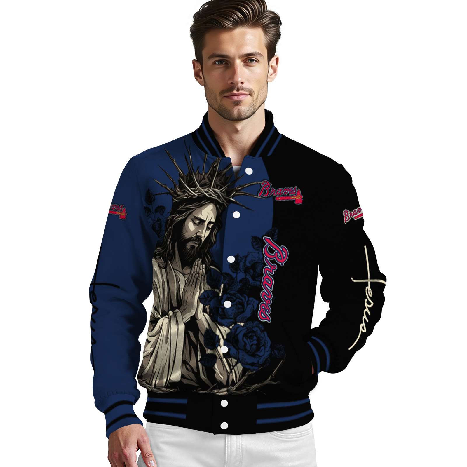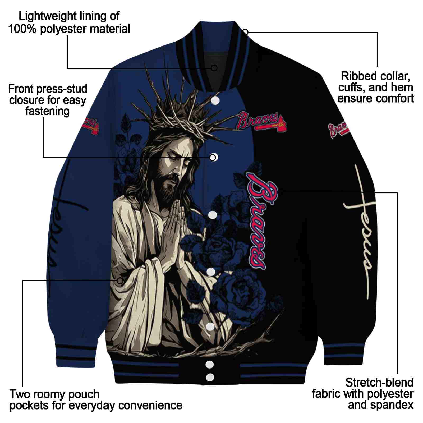 Atlanta Braves Hands In Prayer Navy Black Varsity Jacket