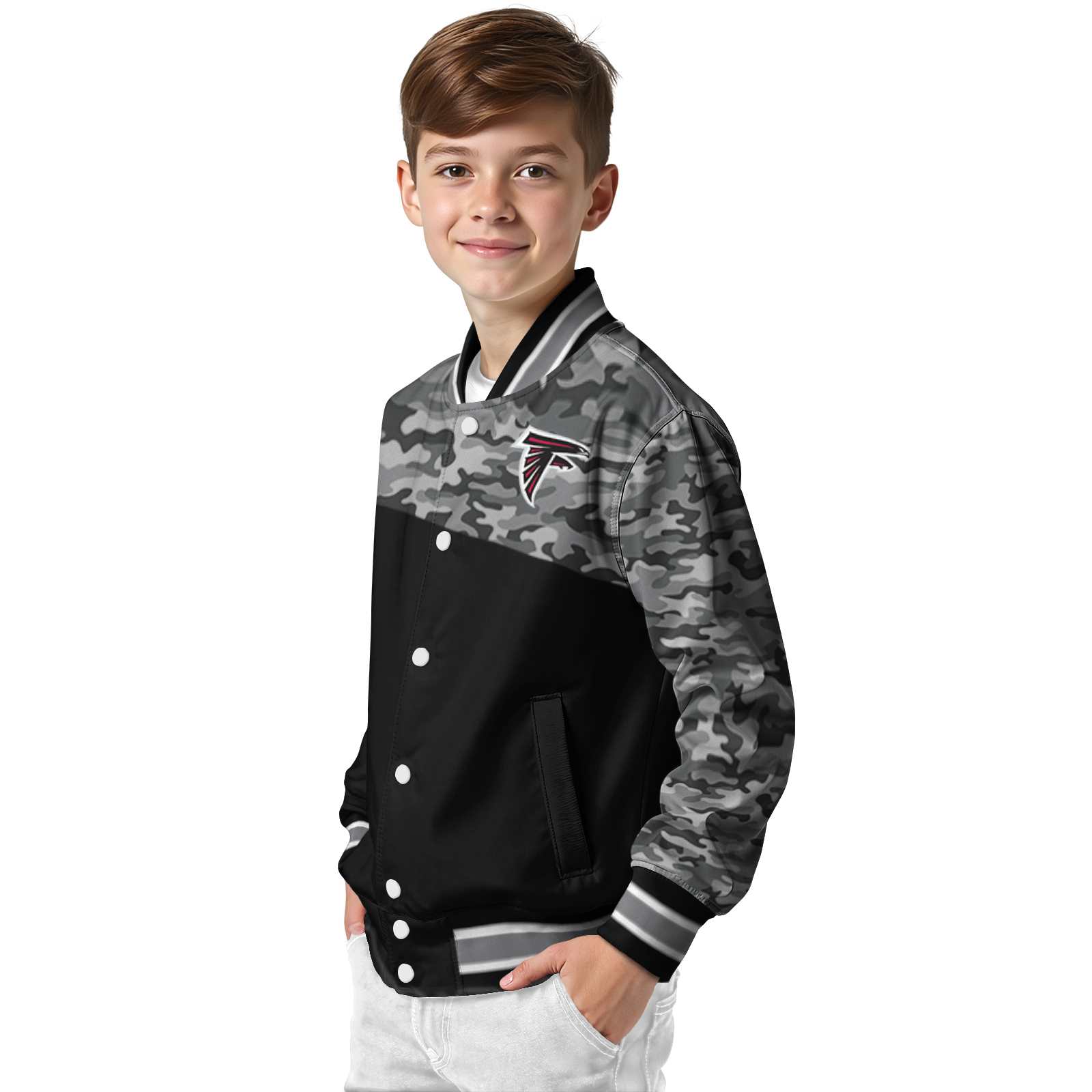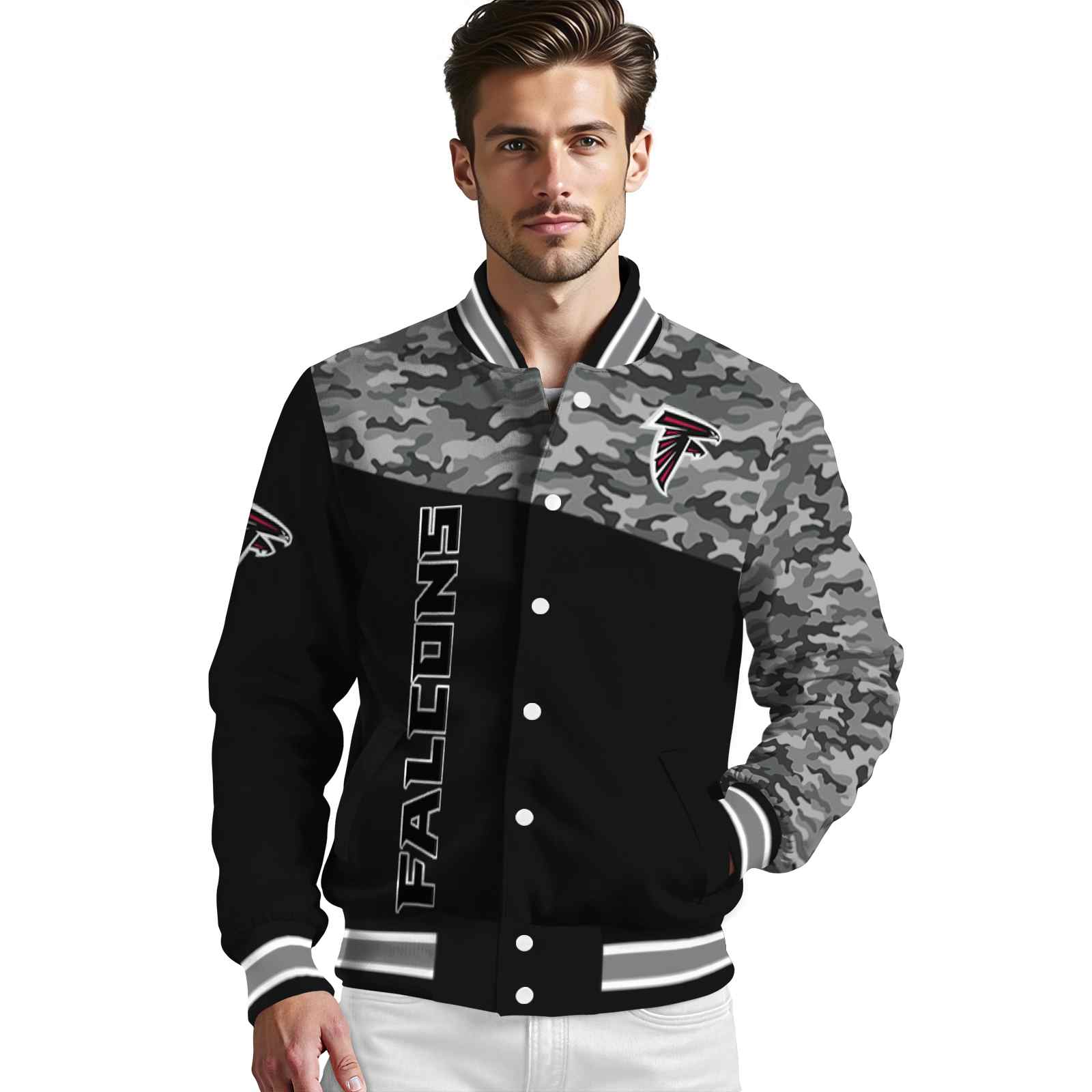 Atlanta Falcons Camo Patchwork Black Varsity Jacket