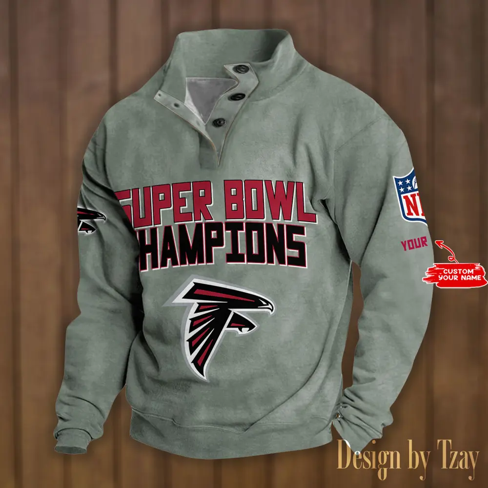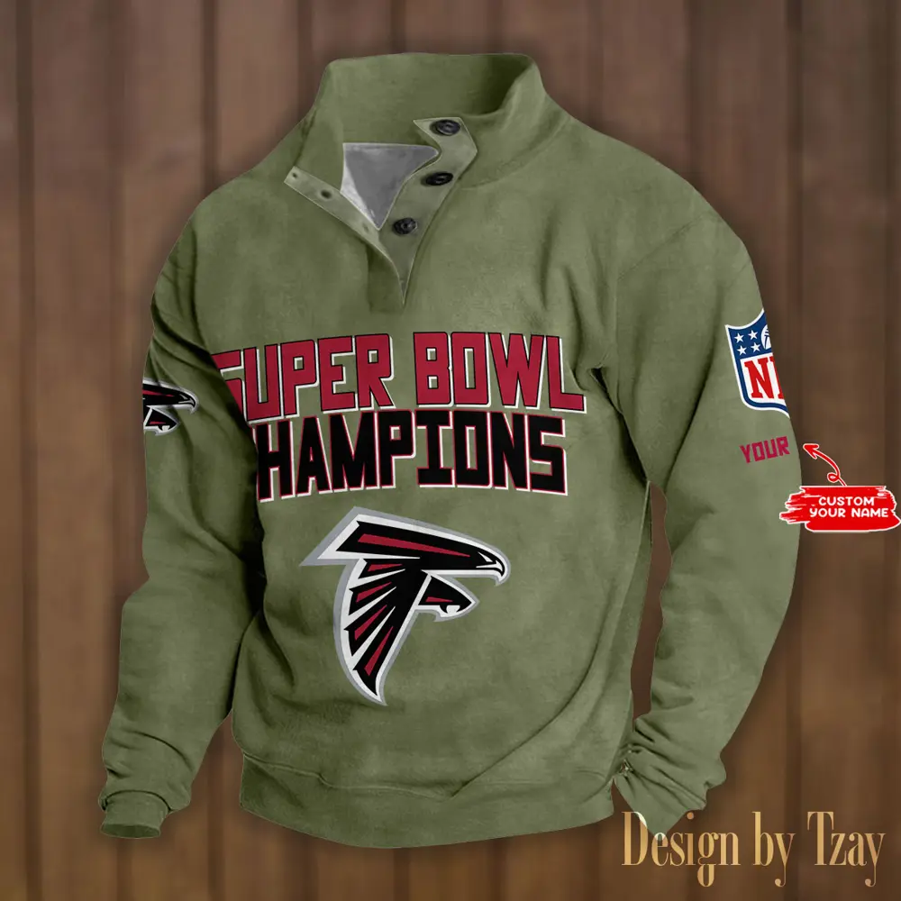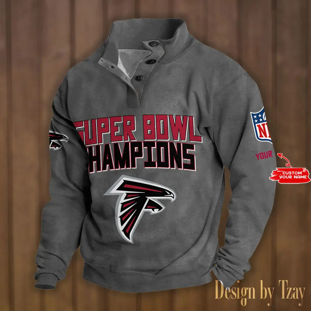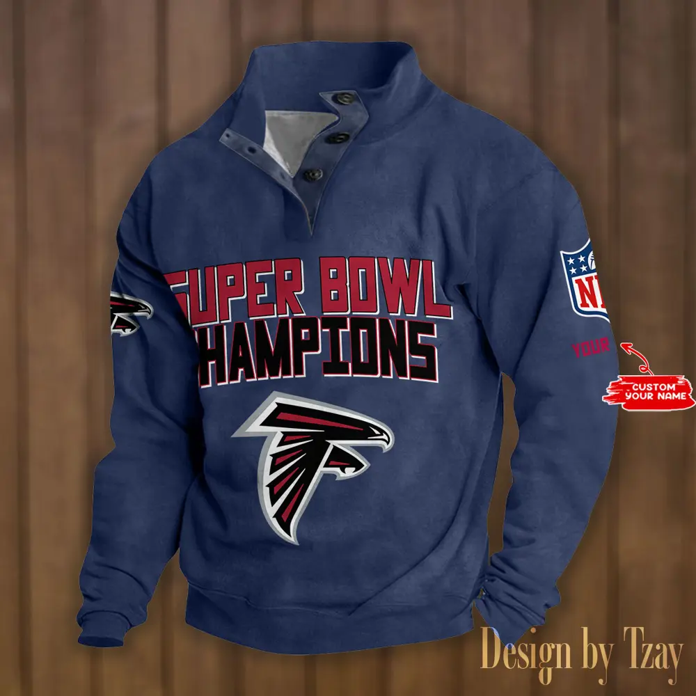 Atlanta Falcons Casual Outdoor Collar Pullover Button Quarter Sweater For mens