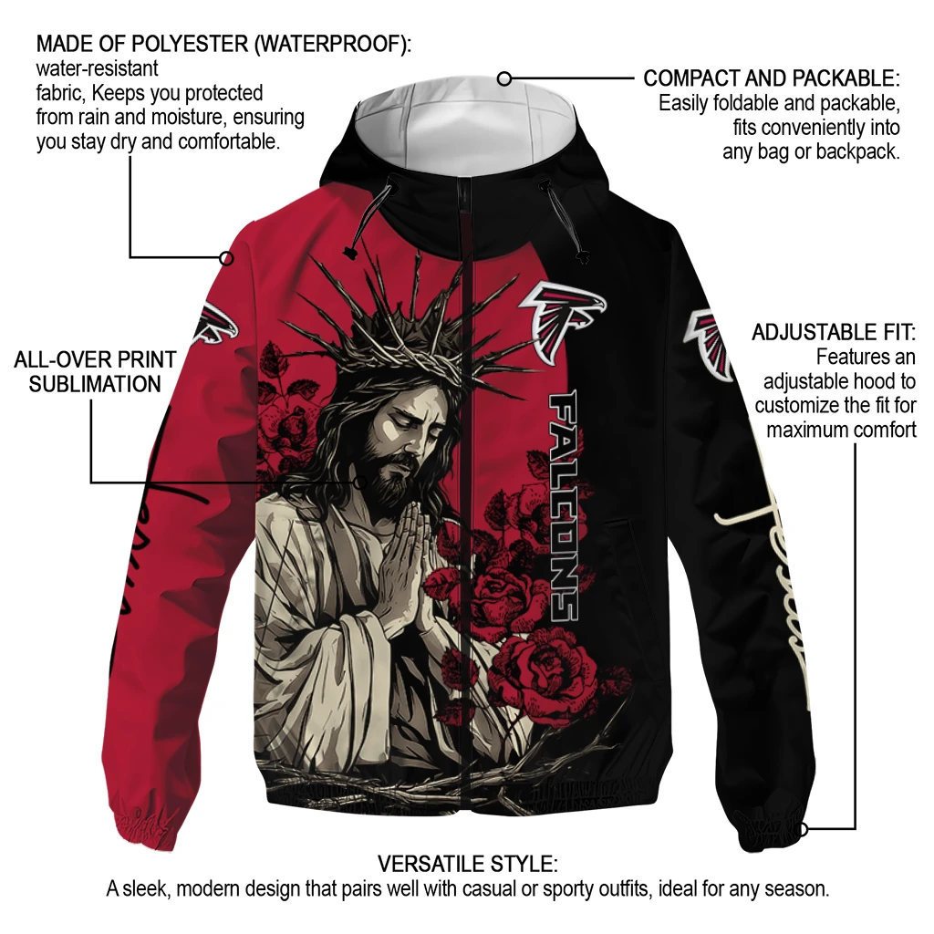 Atlanta Falcons Jesus Roses Red Black Windbreaker Jacket