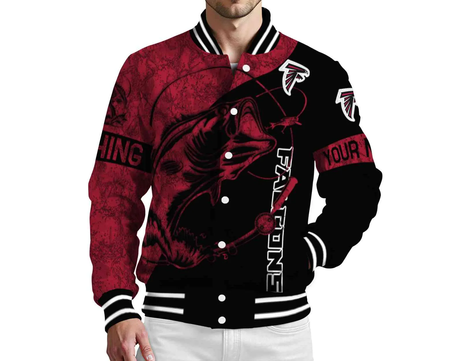 Atlanta Falcons NFL Baseball Jacket Fishing Rod Black Jacket For Sport Lovers