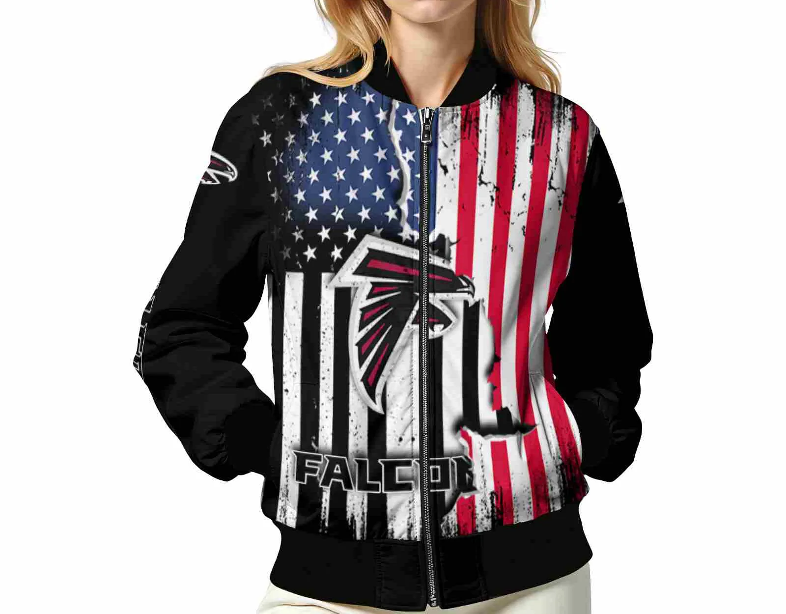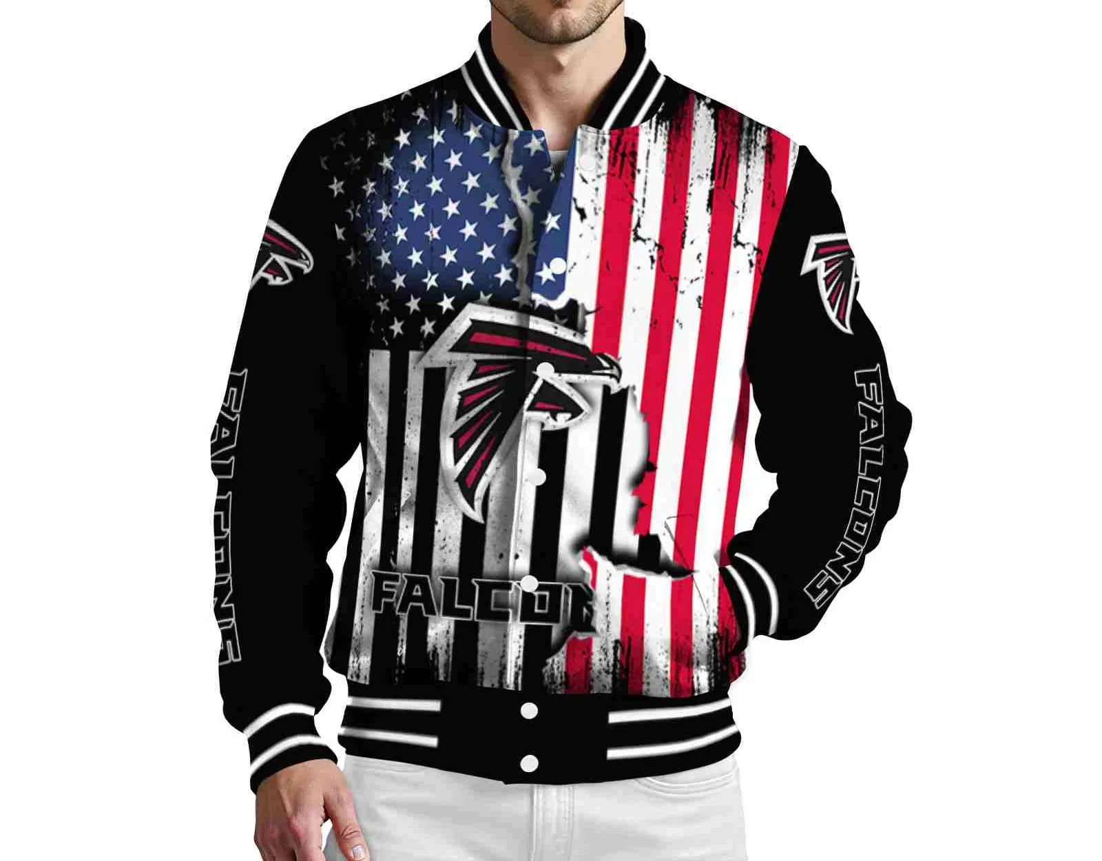 Atlanta Falcons NFL Baseball Jacket Patriotic Theme Black Jacket For Sport Lovers