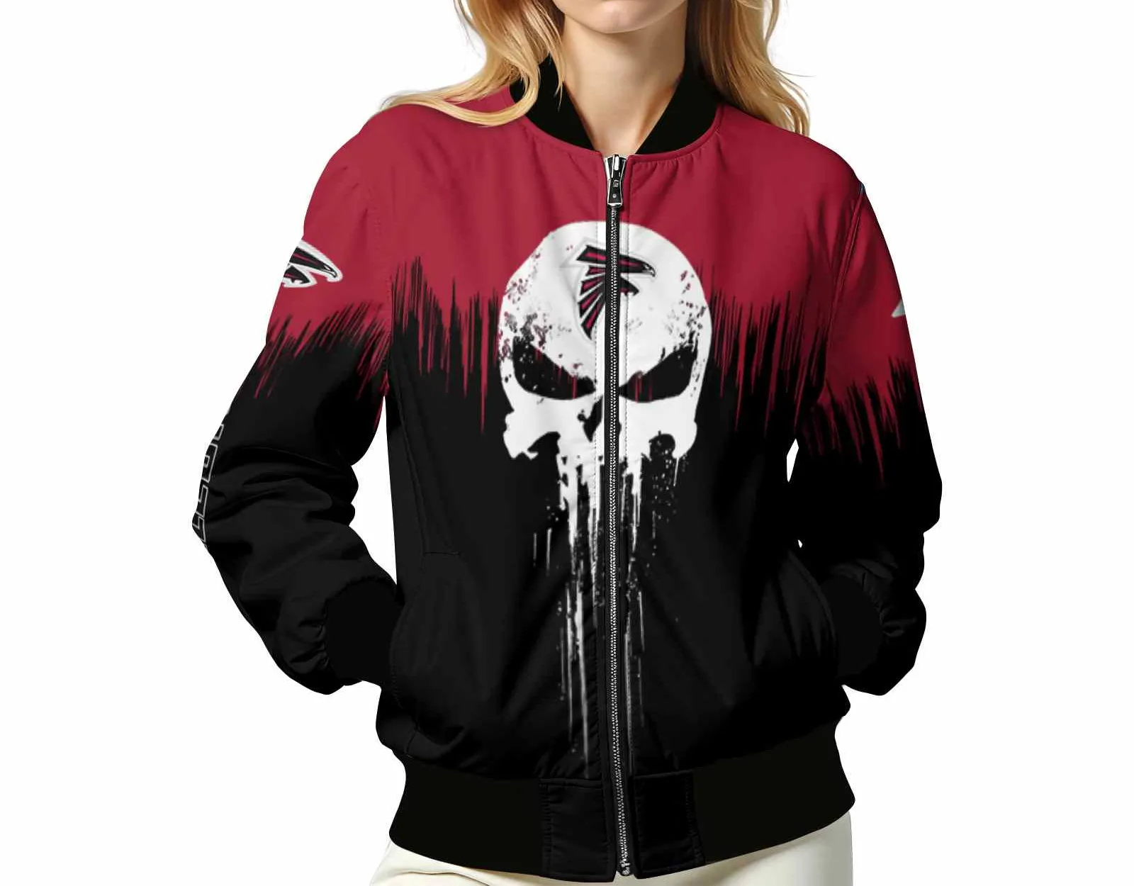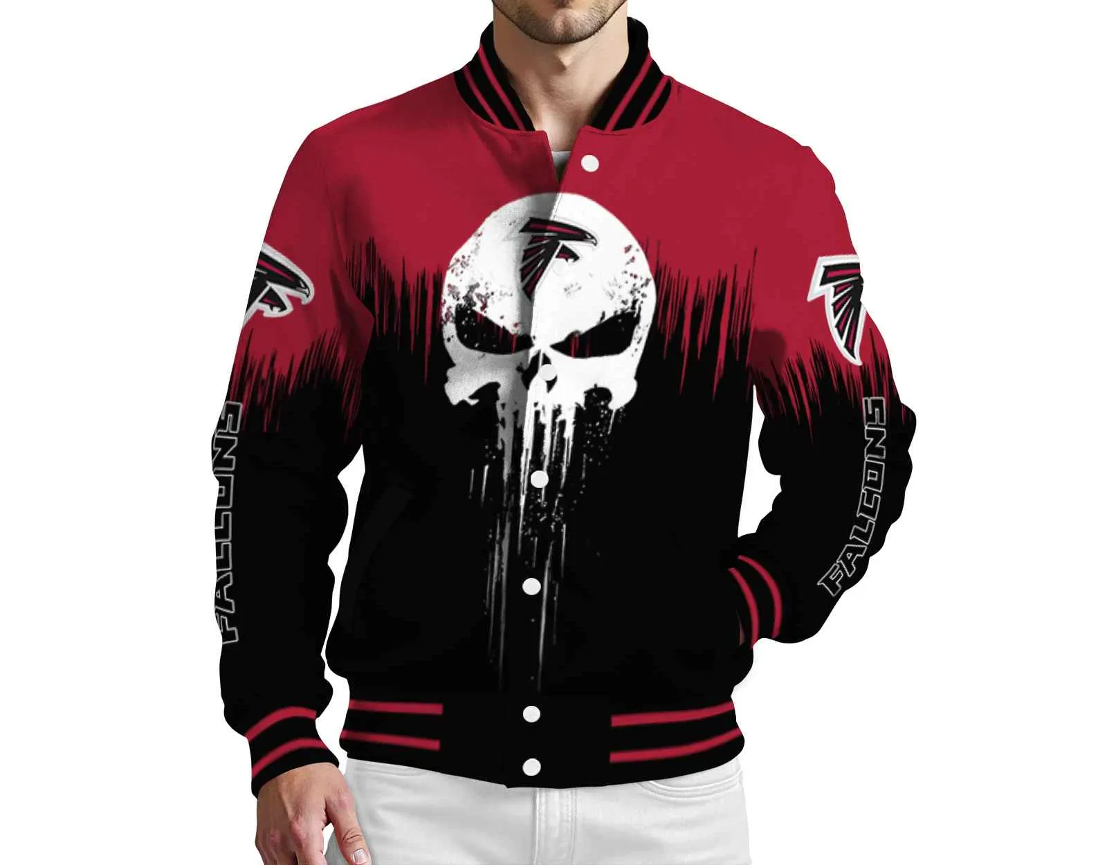 Atlanta Falcons NFL Baseball Jacket Punisher Skull Red Black Jacket For Sport Lovers