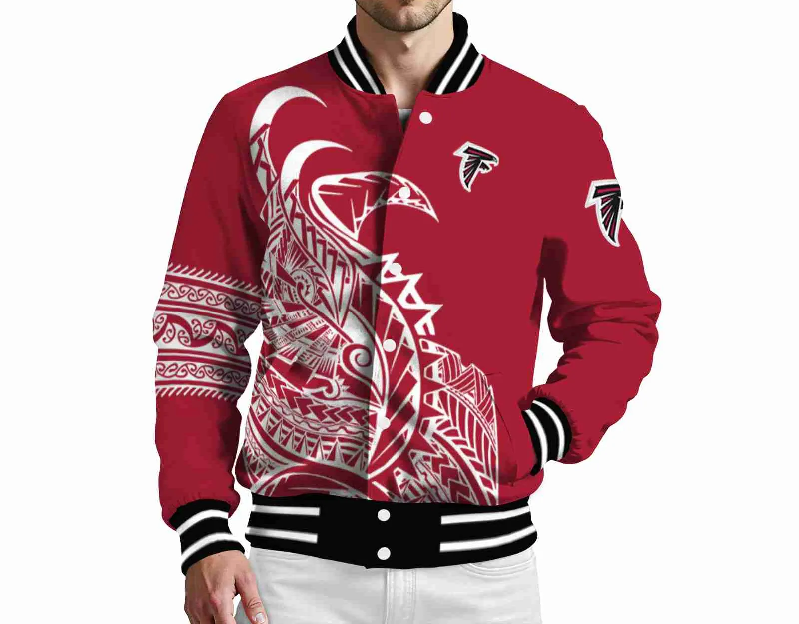 Atlanta Falcons NFL Baseball Jacket Tribal Art Red White Black Jacket For Sport Lovers