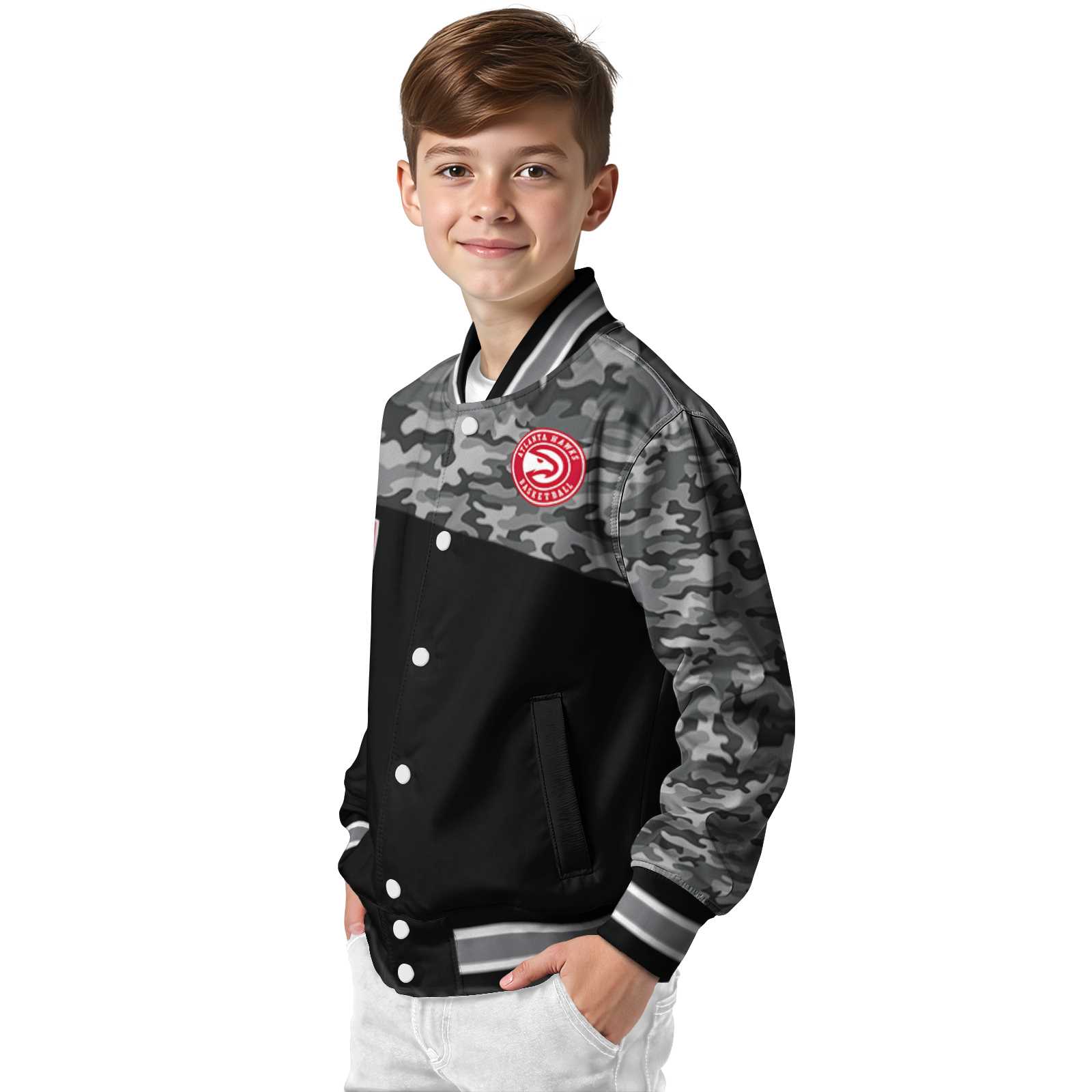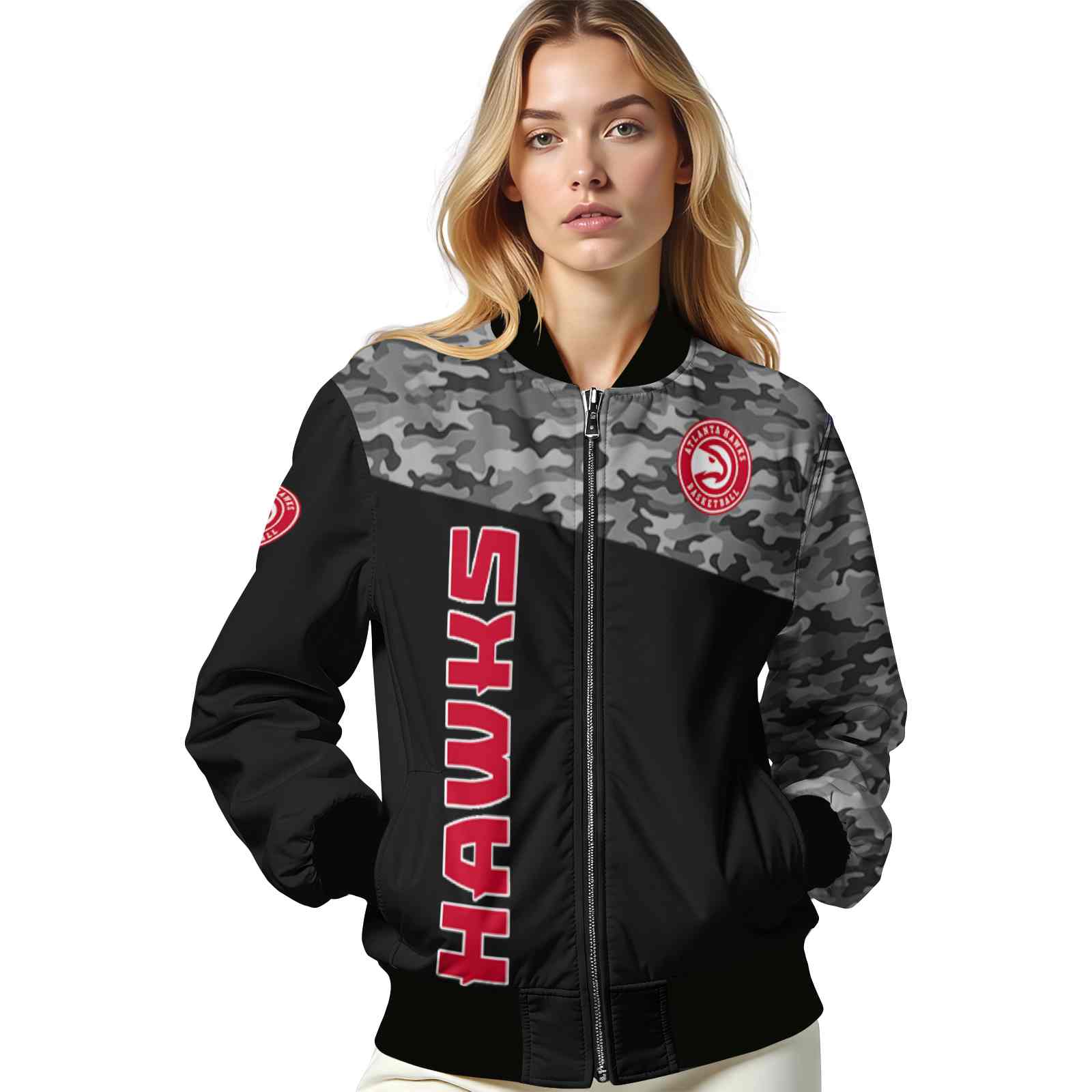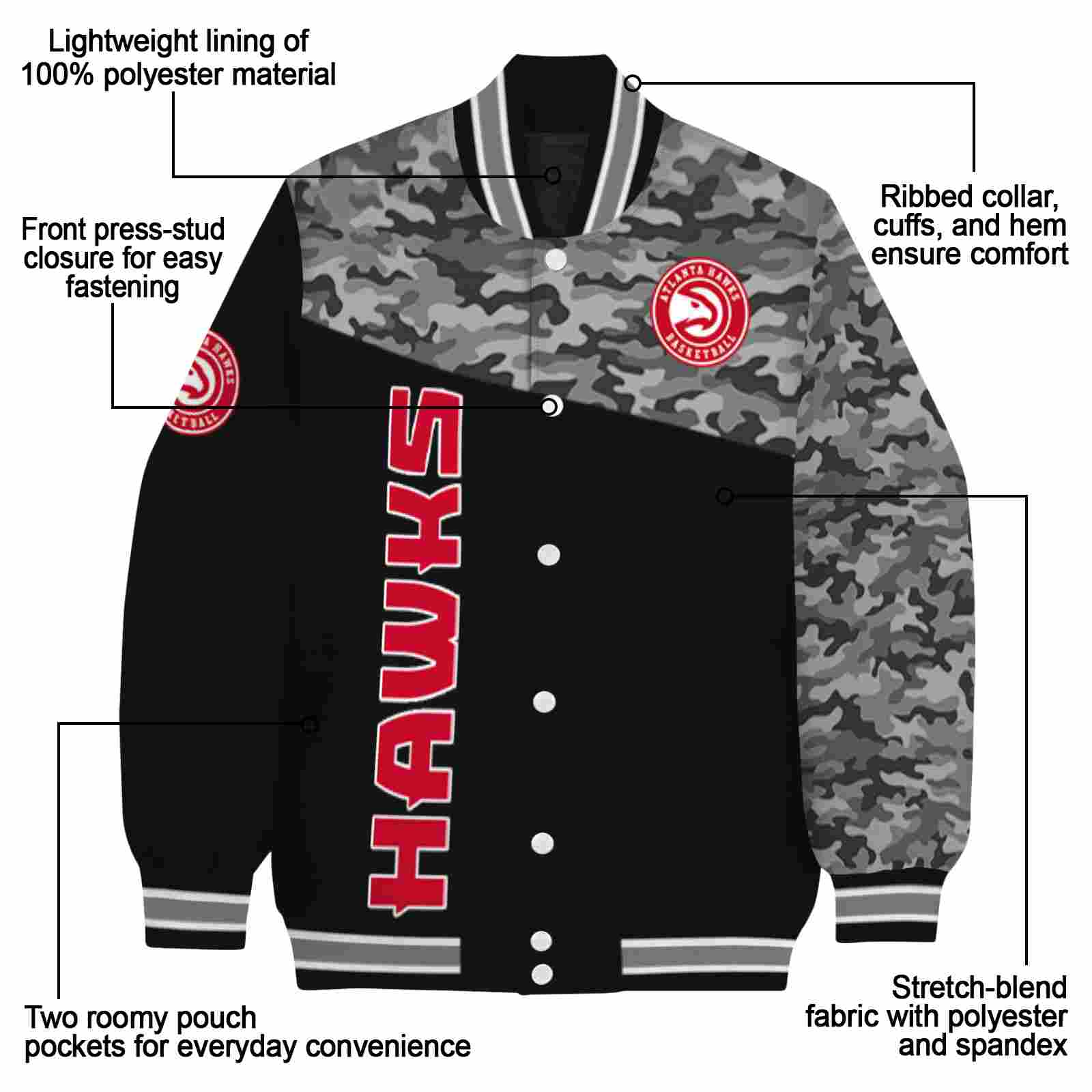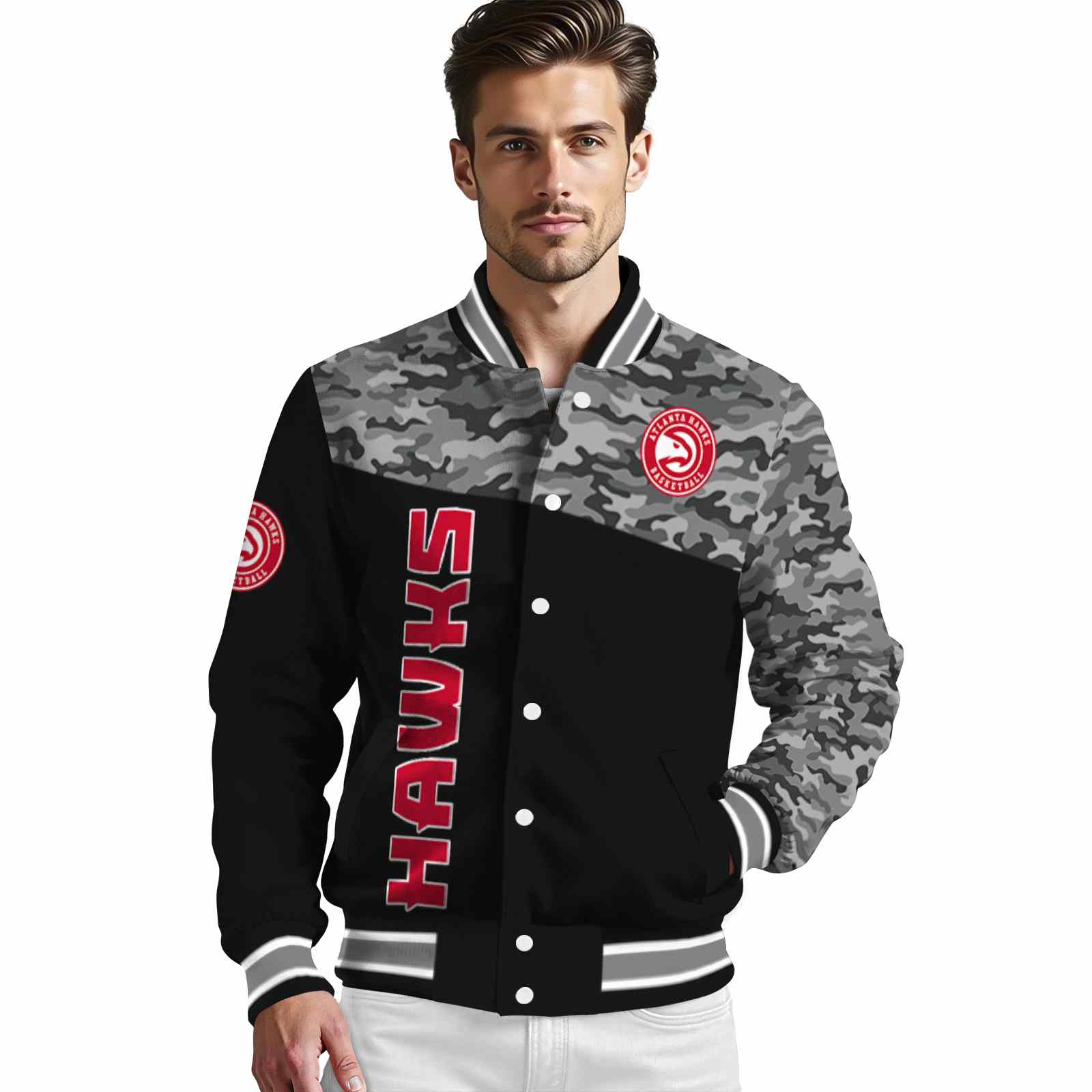 Be the first to review “Atlanta Hawks Camo Patchwork Black Varsity Jacket”