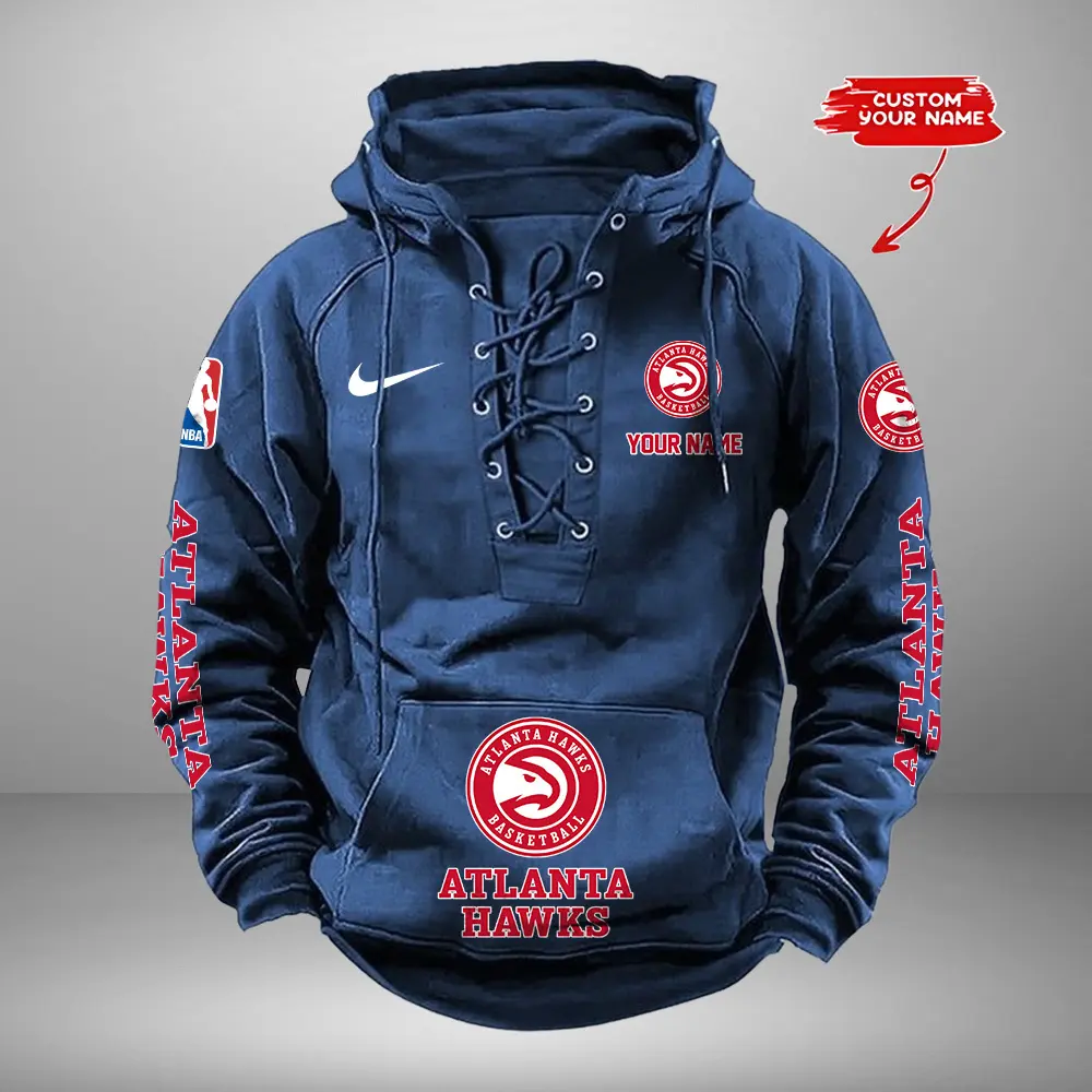 Atlanta Hawks NBA Retro Lace Up Hoodie Personalized Mens Throwback
