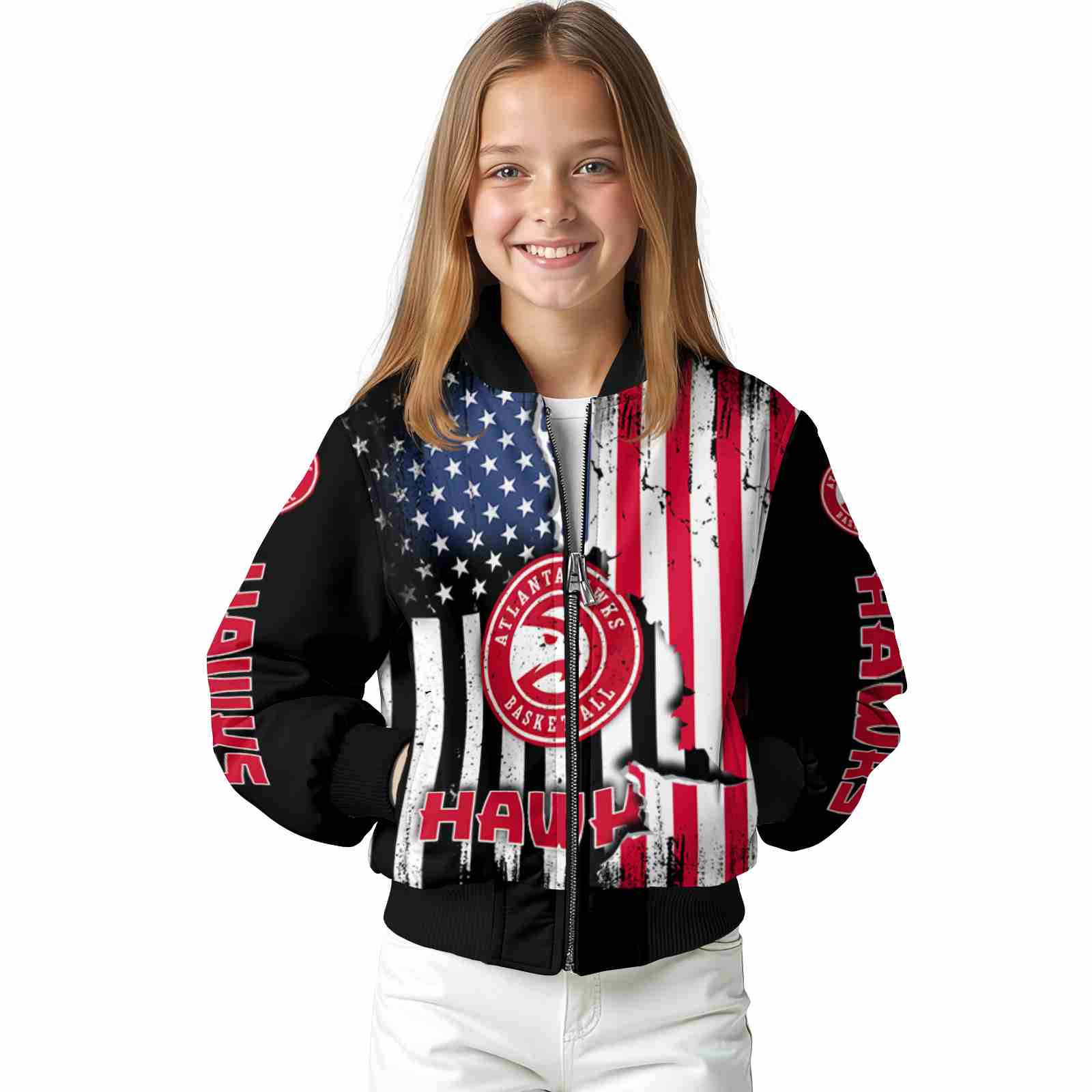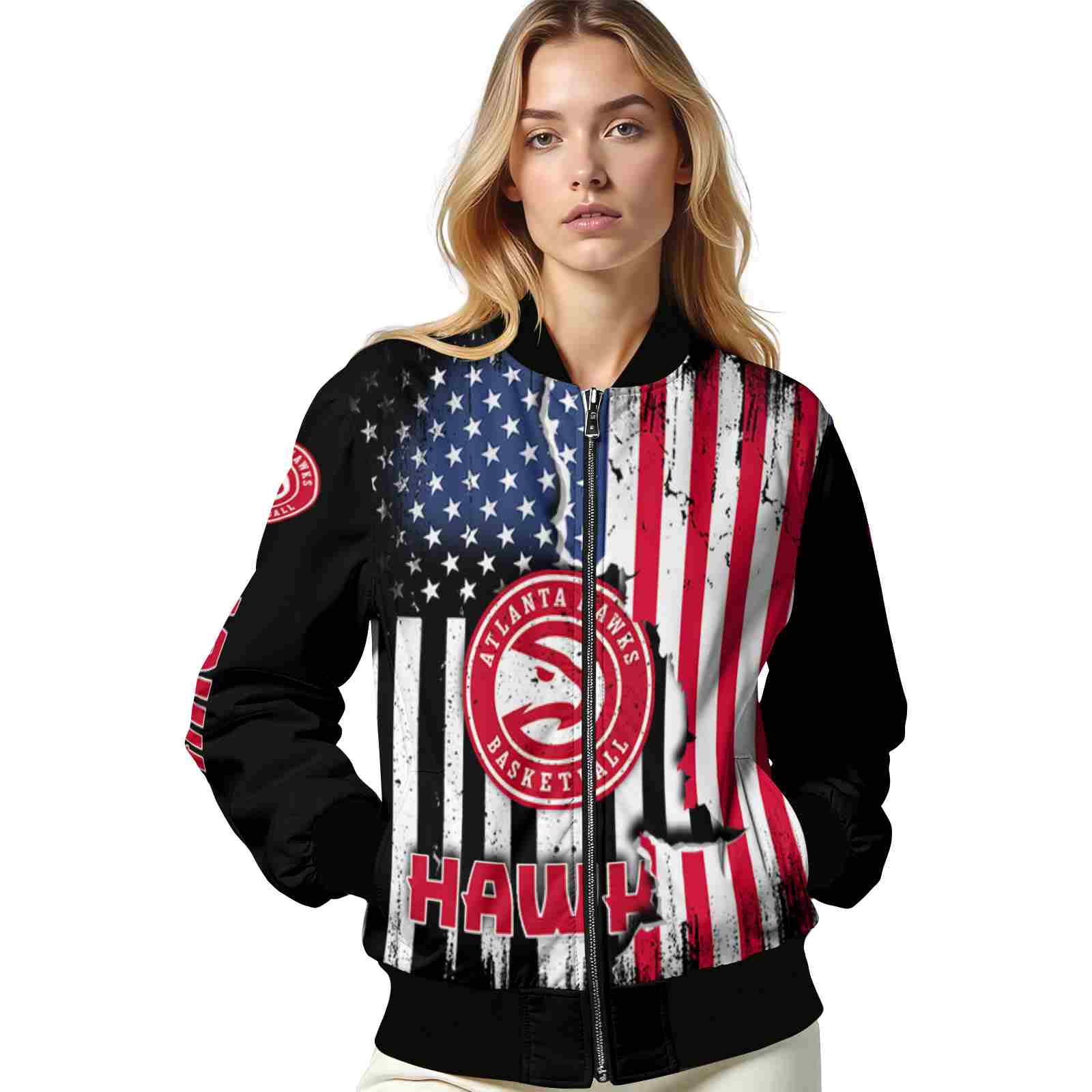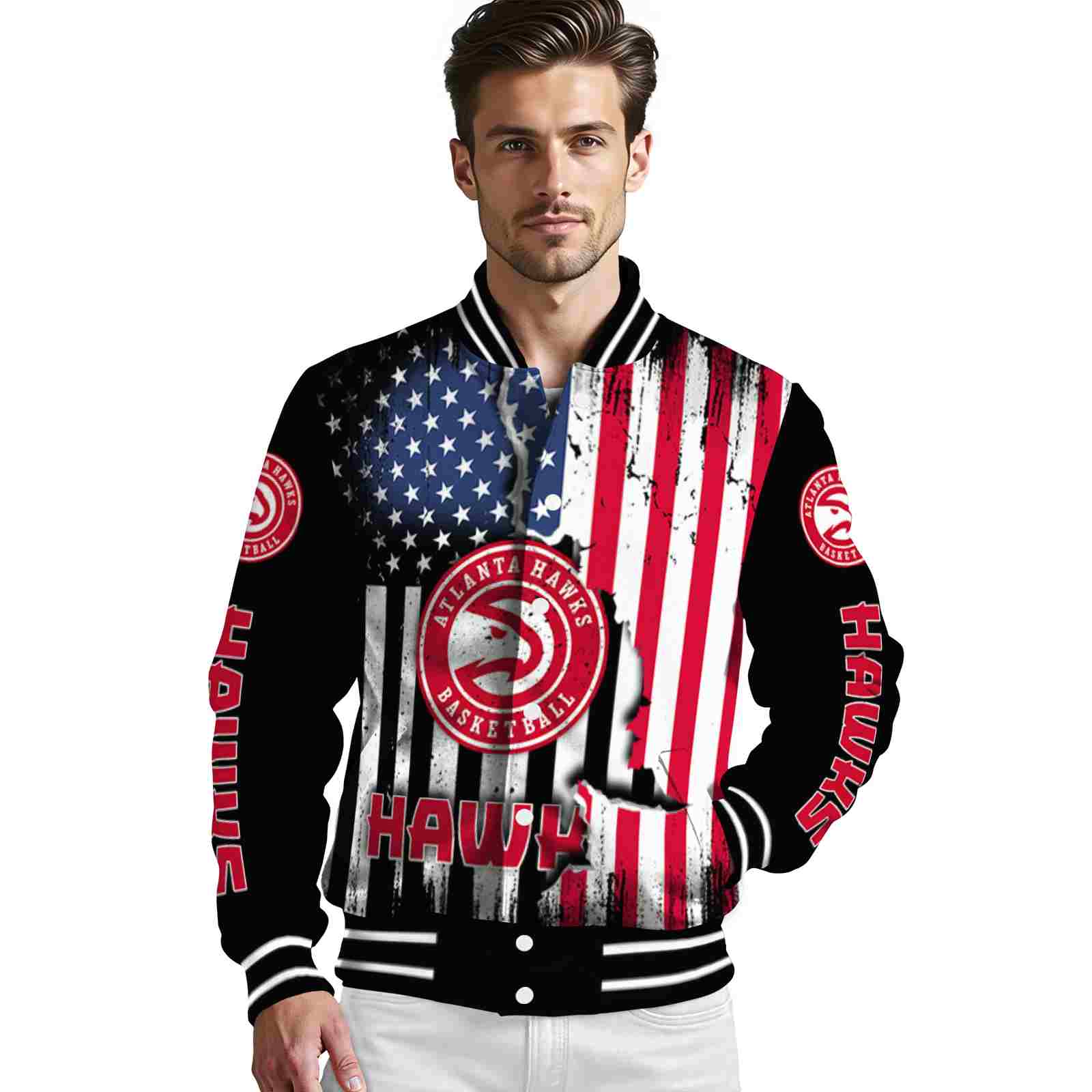 Atlanta Hawks Patriotic Theme Black Varsity Jacket