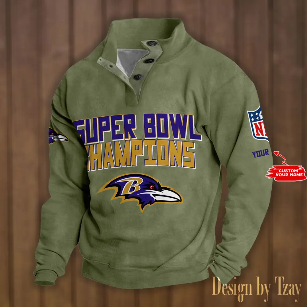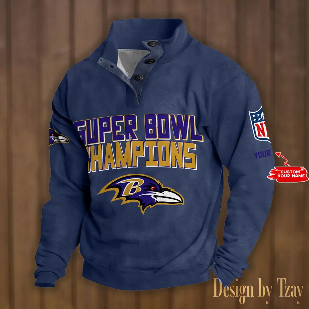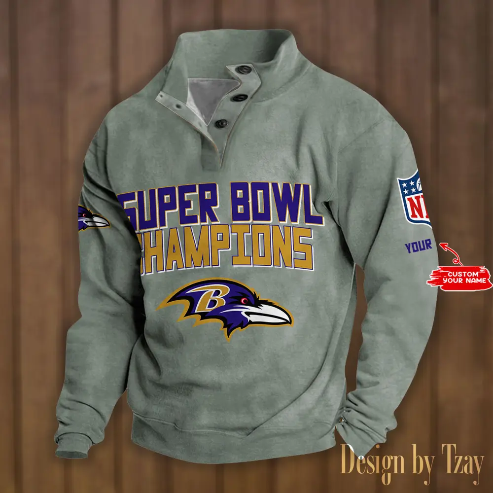 Baltimore Ravens Casual Outdoor Collar Pullover Button Quarter Sweater For mens