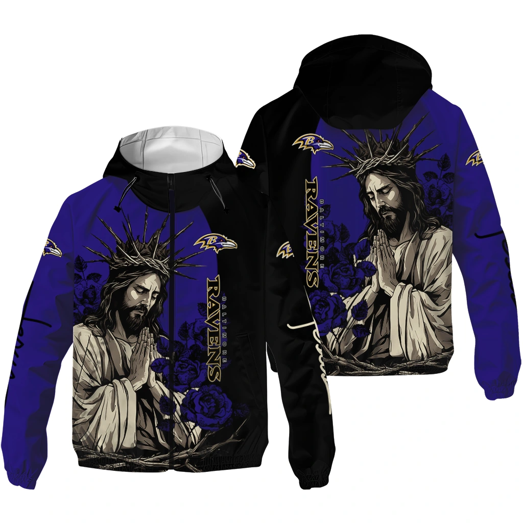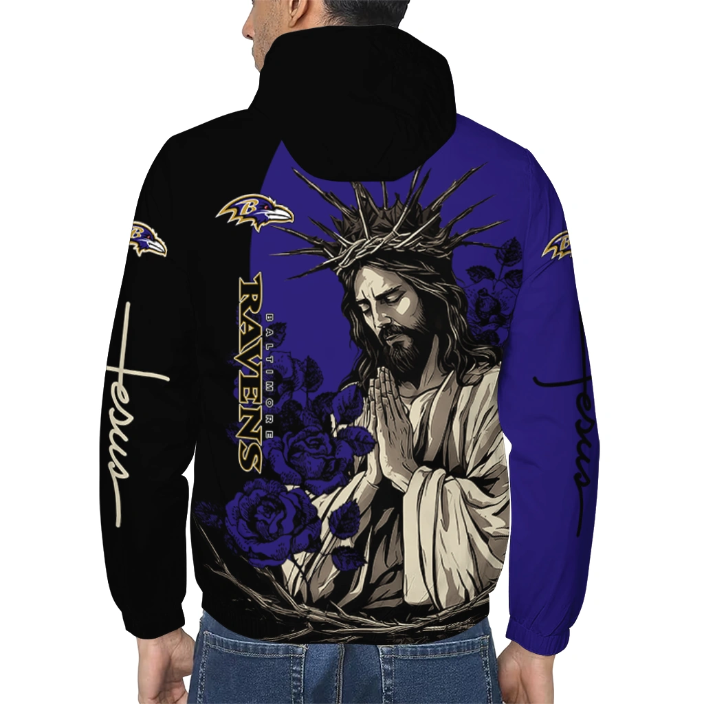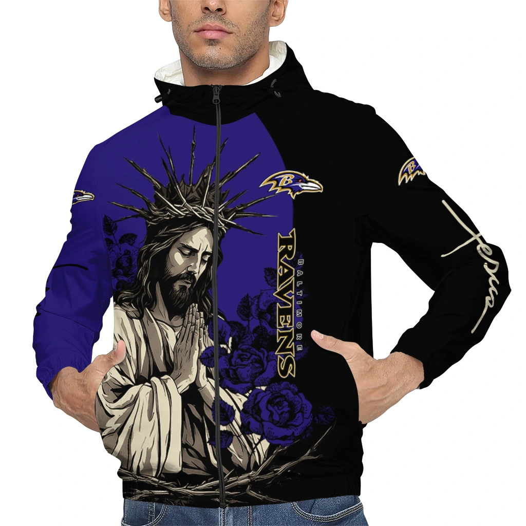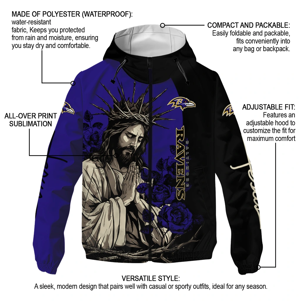 Baltimore Ravens Jesus Roses Purple Black Windbreaker Jacket
