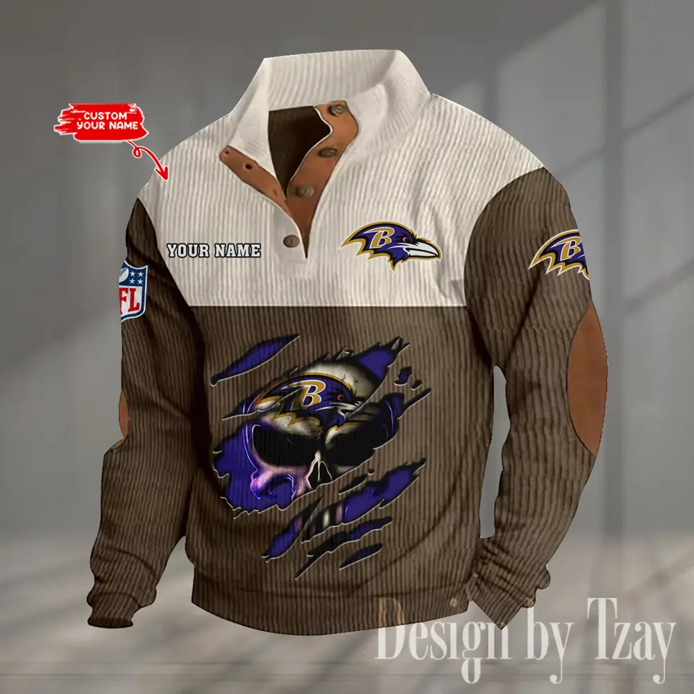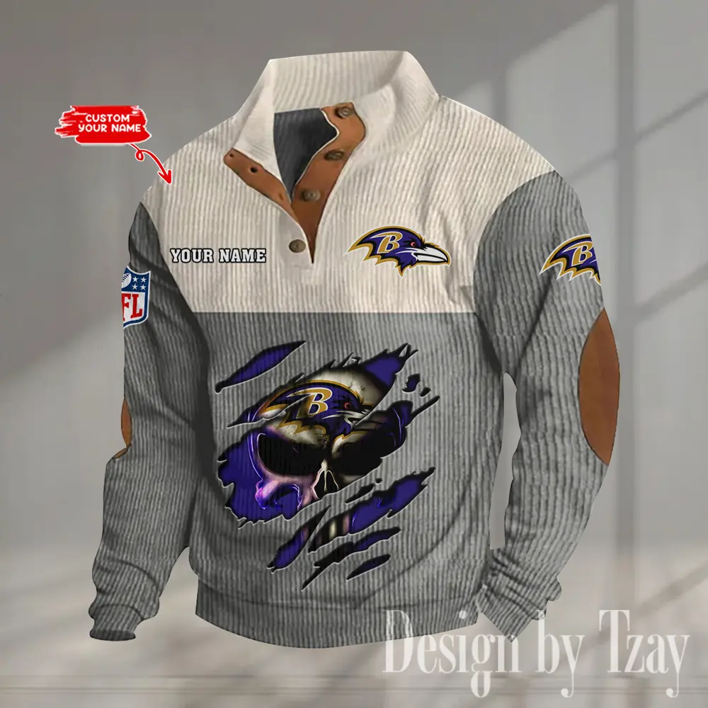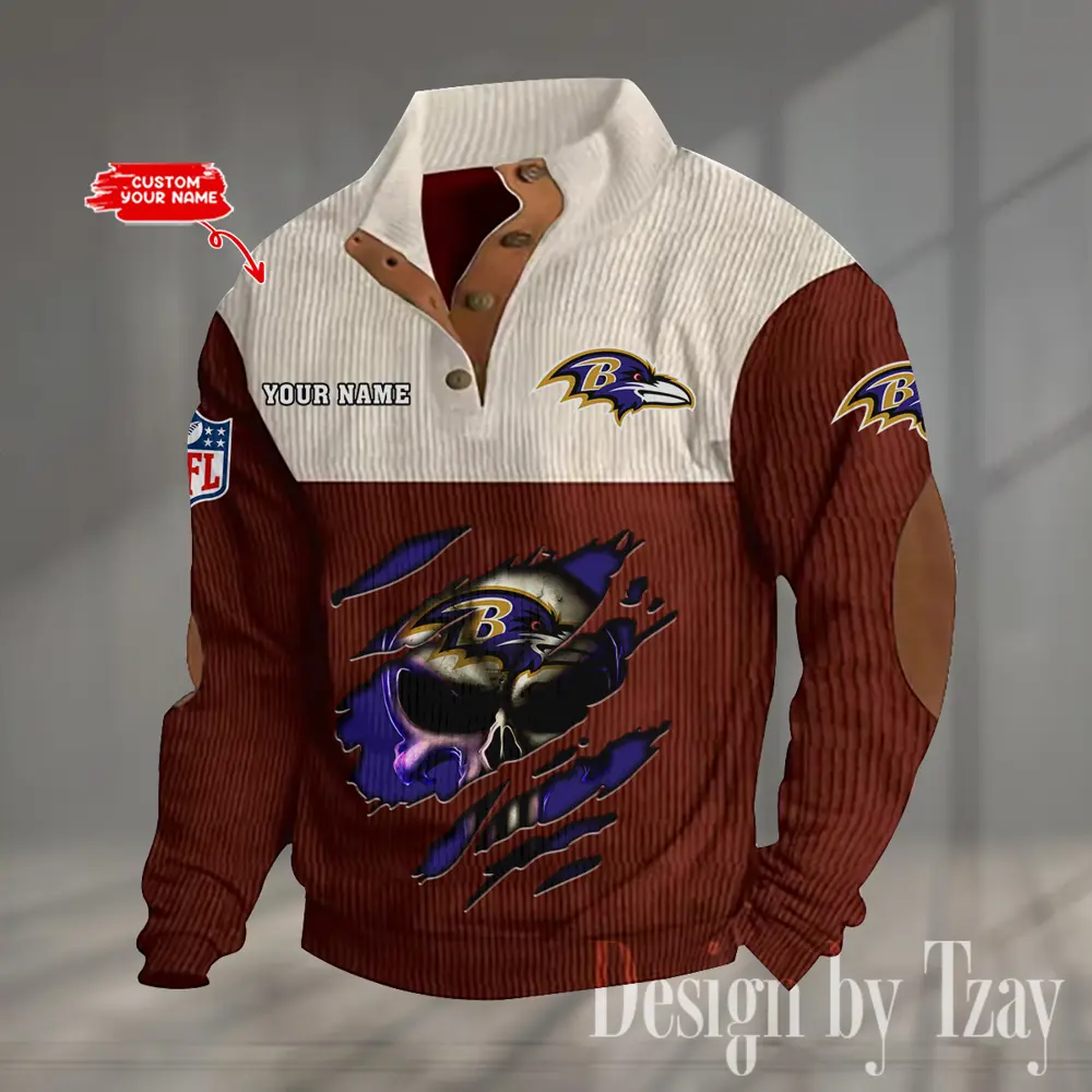 Baltimore Ravens Men Casual Outdoor Collar Pullover Button Quarter Sweater