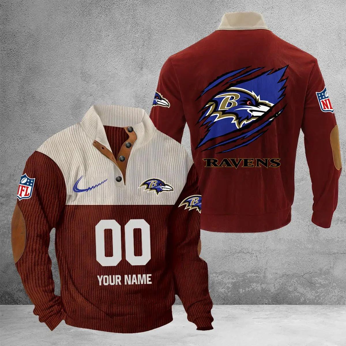 Baltimore Ravens Men Casual Outdoor Collar Pullover Button Quarter Sweater