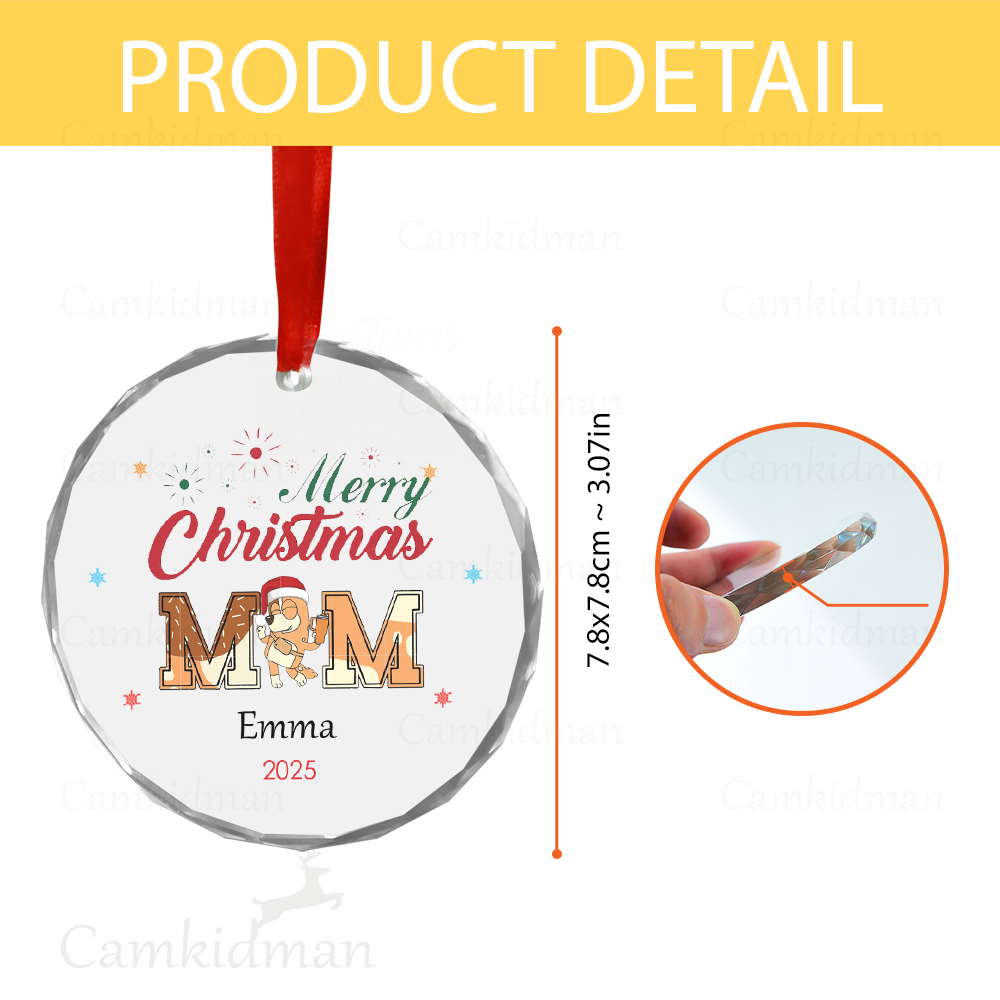 Bingo Bluey Mum Glass Christmas Ornament 2025 Personalized Name gifts