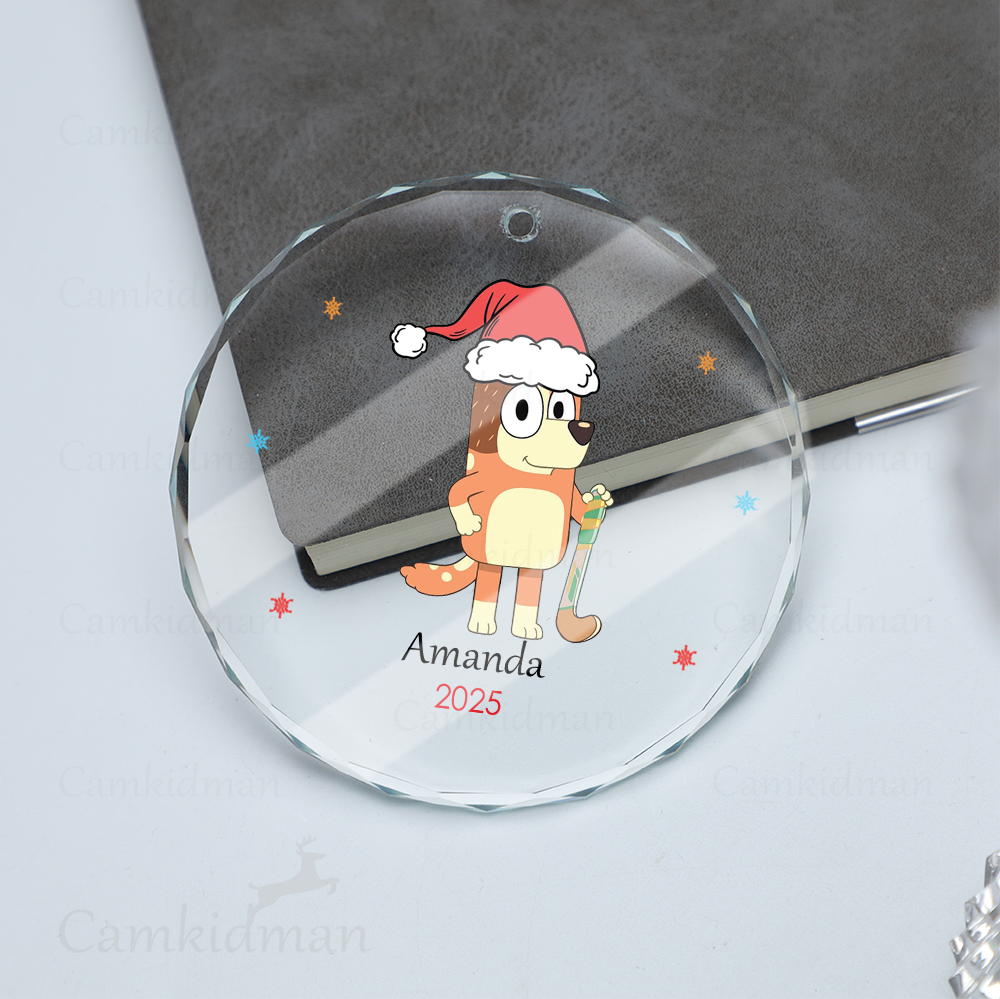 Bingo Character with Santa Hat 2025 Glass Christmas Ornament 2025 Personalized Name