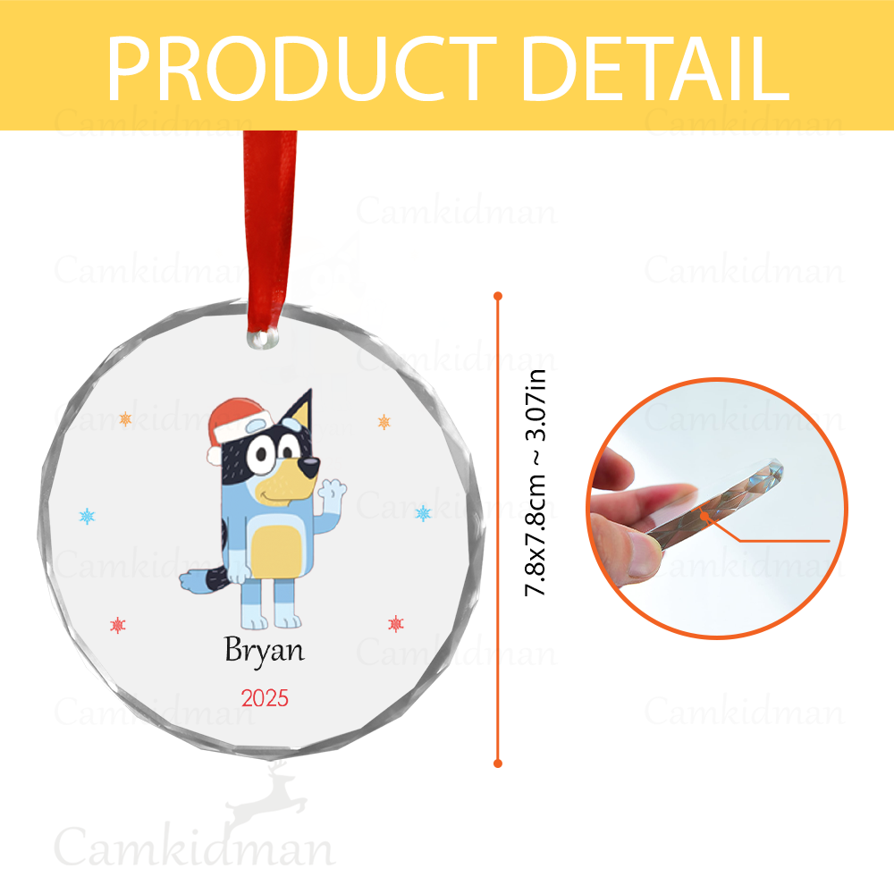 Bluey With Present Personalized Name 2025 Glass Ornament tree