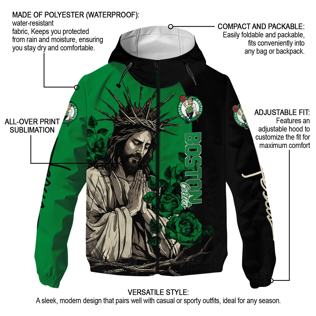 Boston Celtics Jesus Roses Green Black Windbreaker Jacket