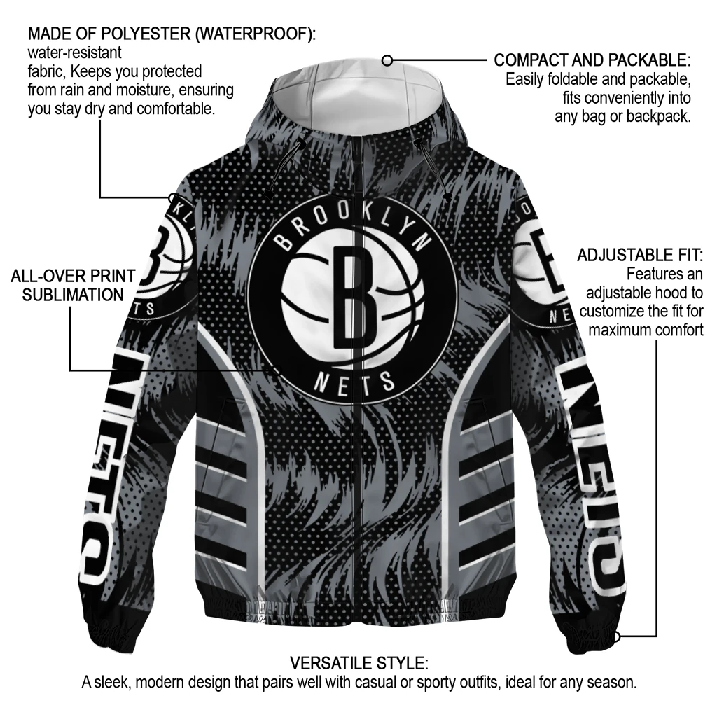 Brooklyn Nets Dynamic Heat Wave Black Windbreaker Jacket