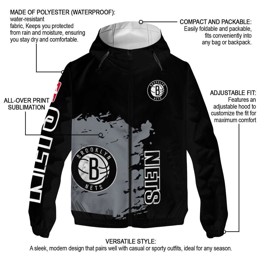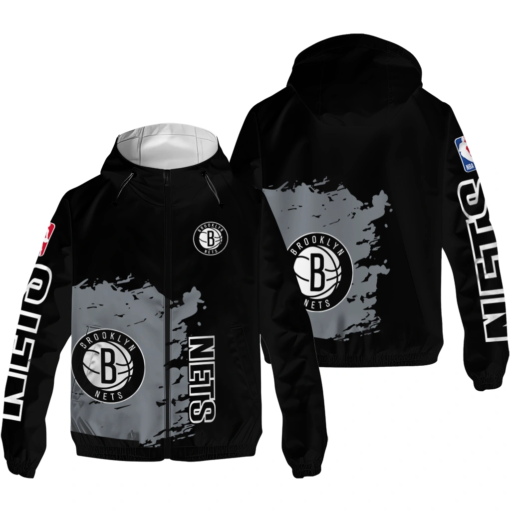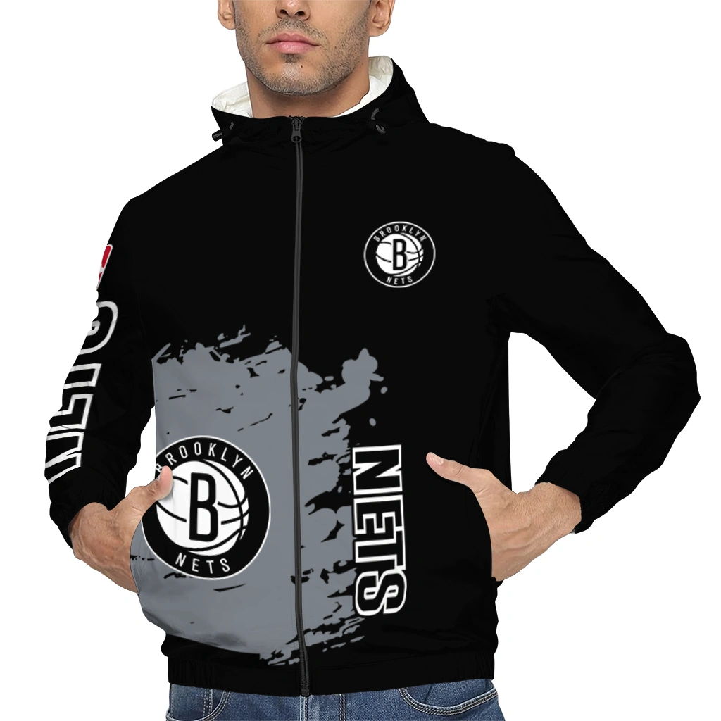 Brooklyn Nets Grid Stripe Black Windbreaker Jacket