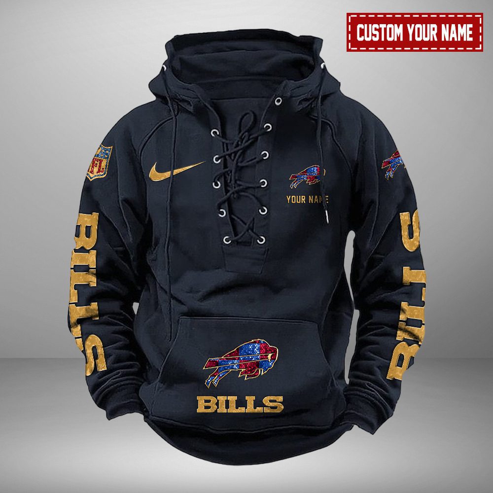 Buffalo Bills NFL Retro Lace Up Hoodie Personalized Mens Vintage
