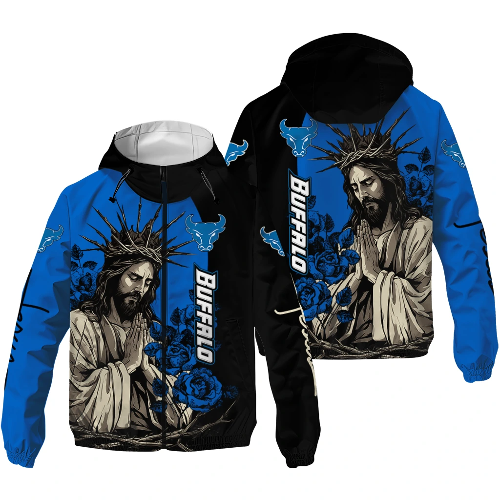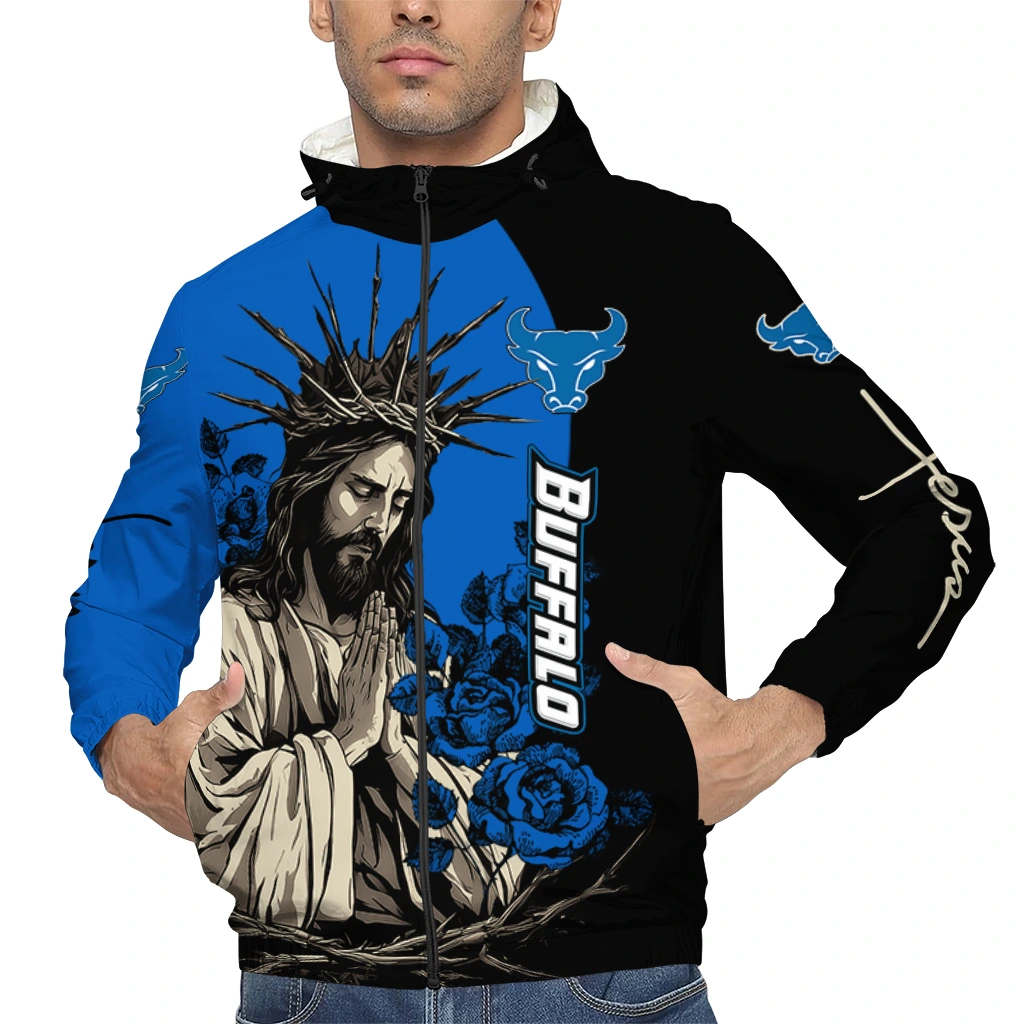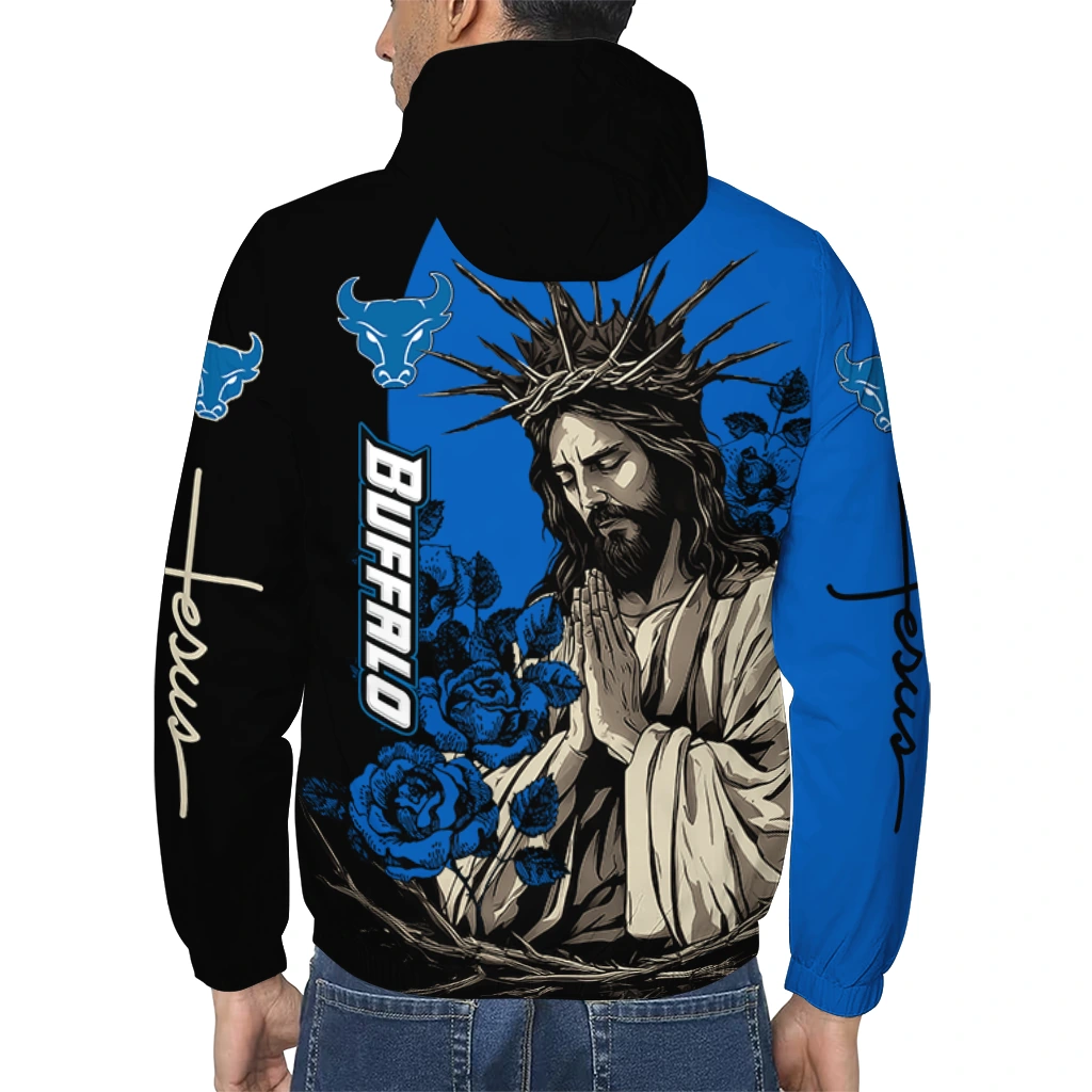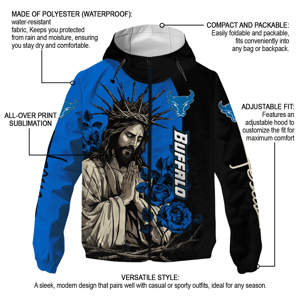 Buffalo Bulls Jesus Roses Royal Blue Black Windbreaker Jacket