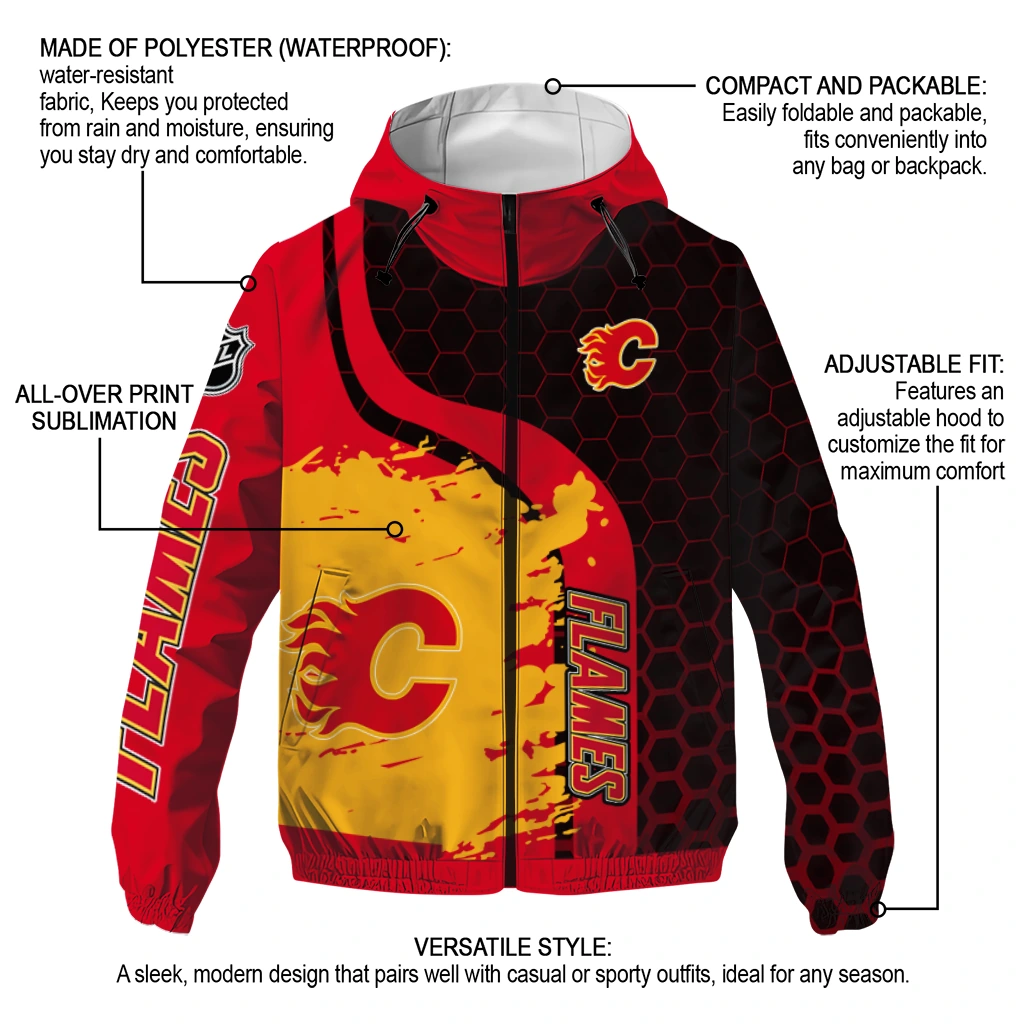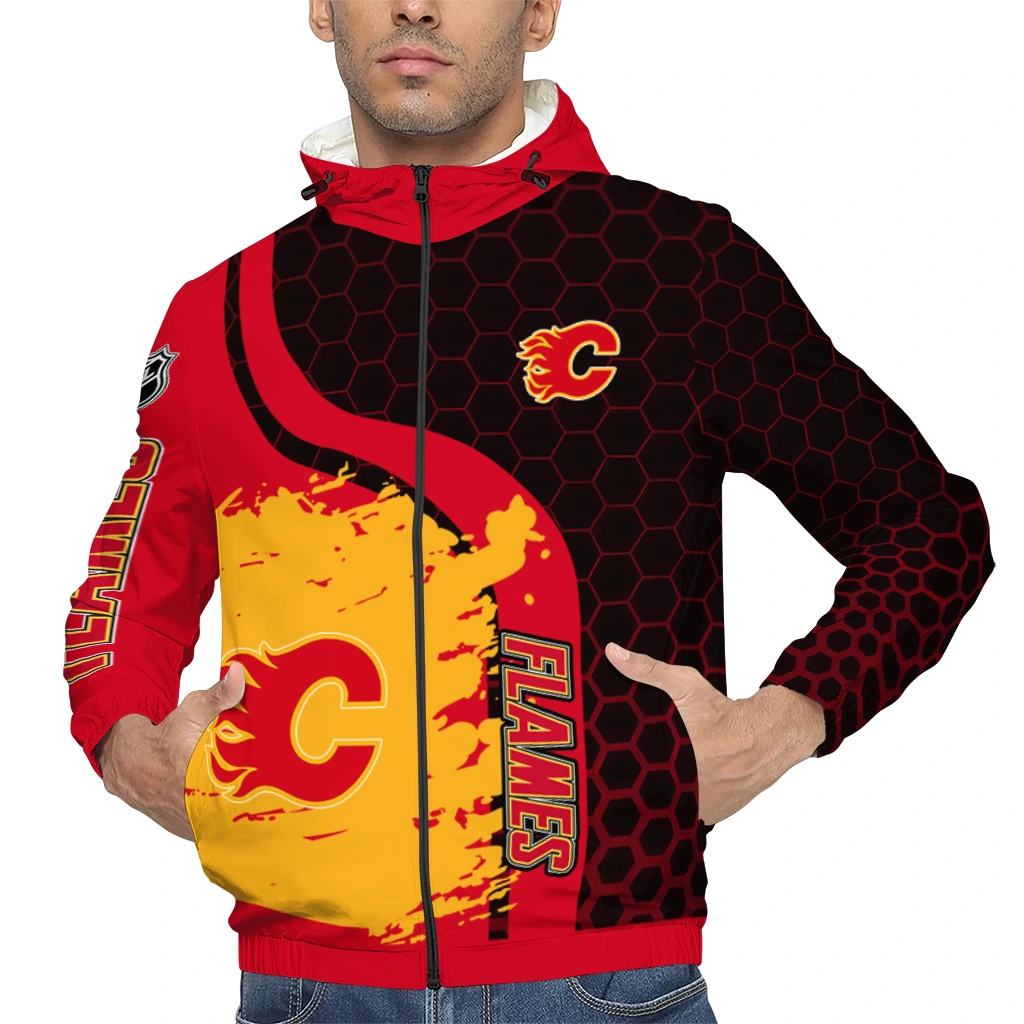 Calgary Flames Hex Grid Texture Red Black Windbreaker Jacket