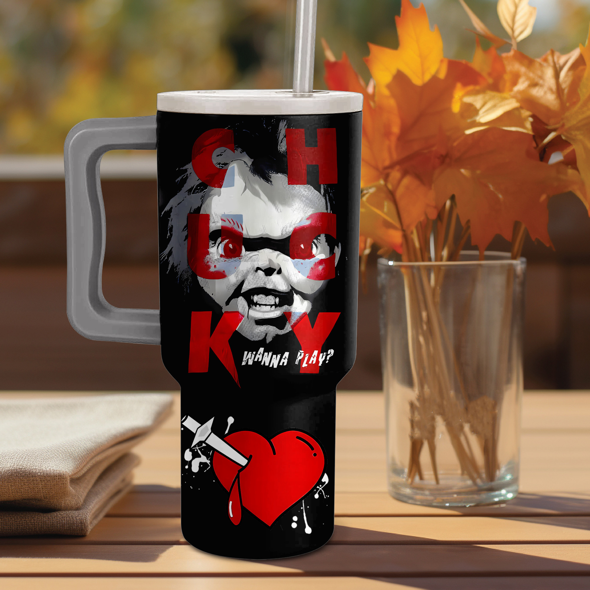 Chucky Child?? Play Movies Custom Stanley Quencher 40oz Stainless Steel Tumbler With Handle