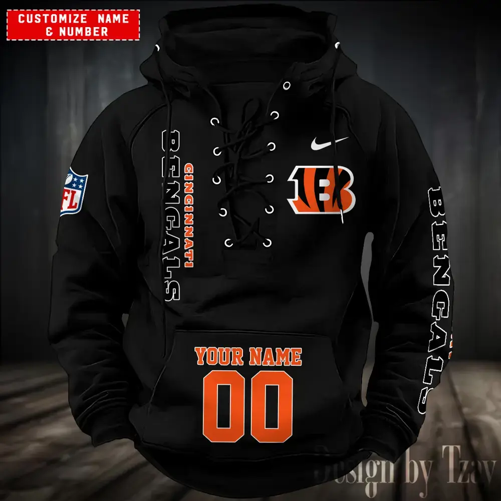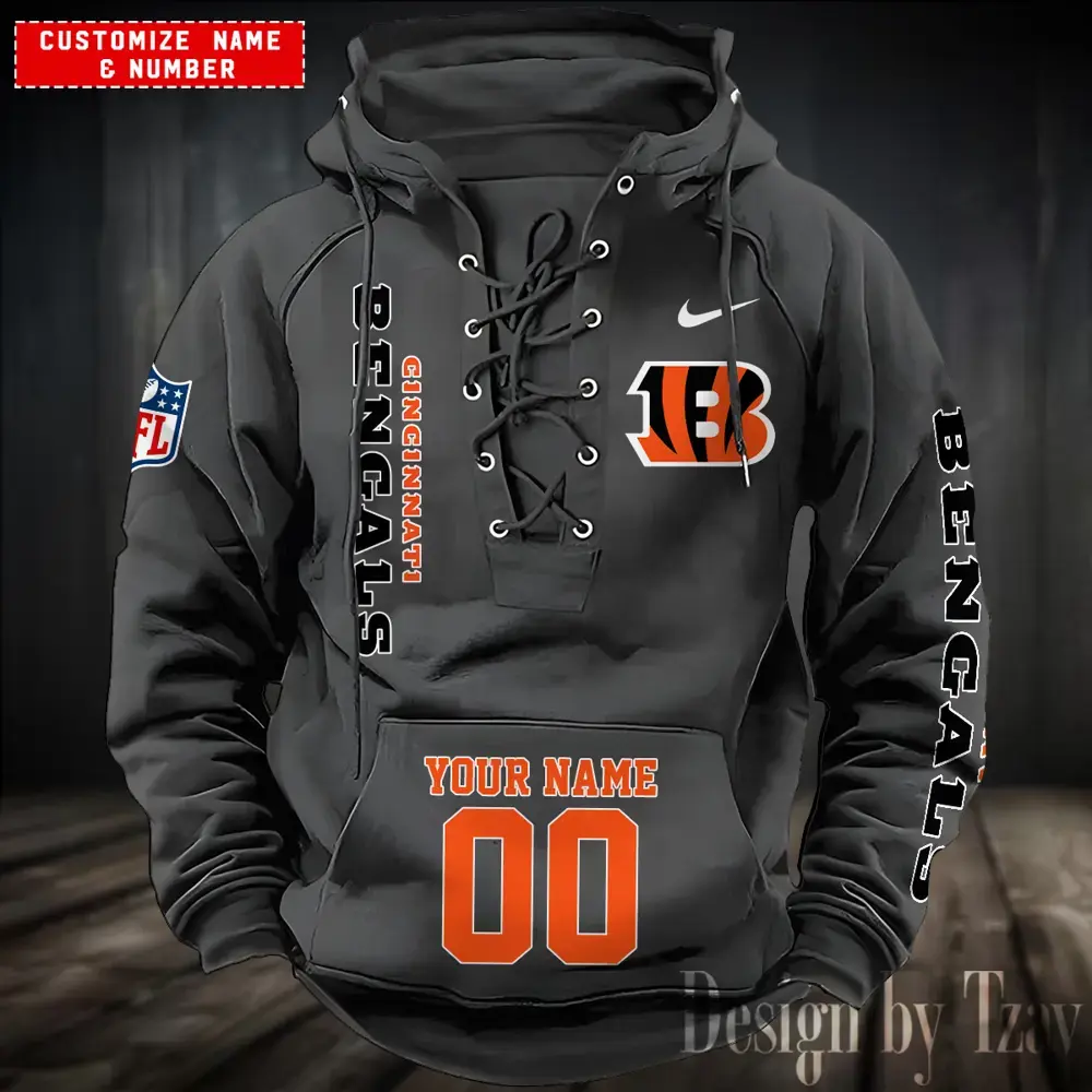 Cincinnati Bengals Men Hooded Lace up Hoodie For Men