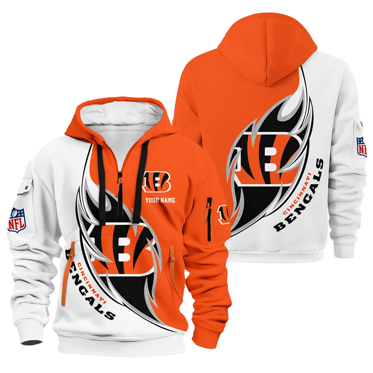 Cincinnati Bengals NFL Hoodie Half Zip 3D Custom Sporty Urban Look