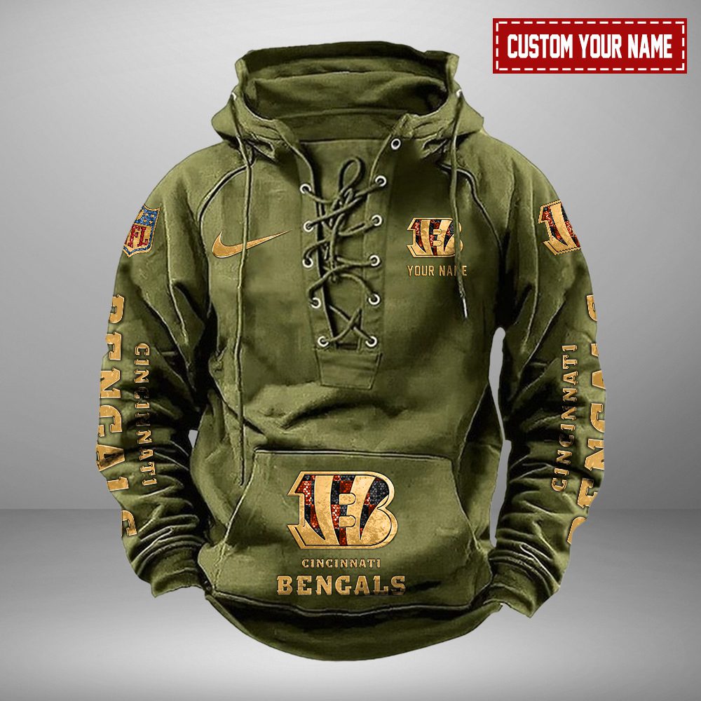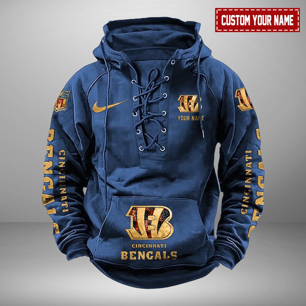 Cincinnati Bengals NFL Retro Lace Up Hoodie Personalized Mens Throwback