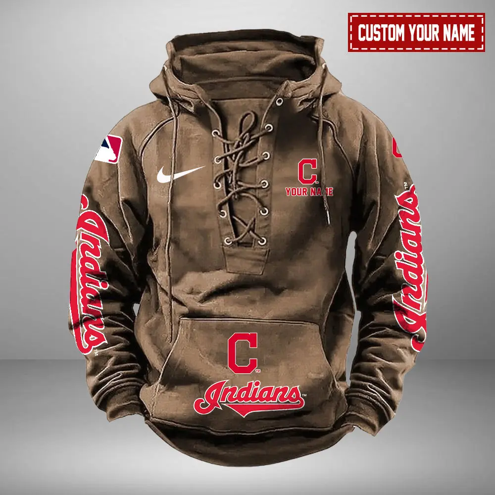 Cleveland Guardians MLB Retro Lace Up Hoodie Personalized Mens Pullover