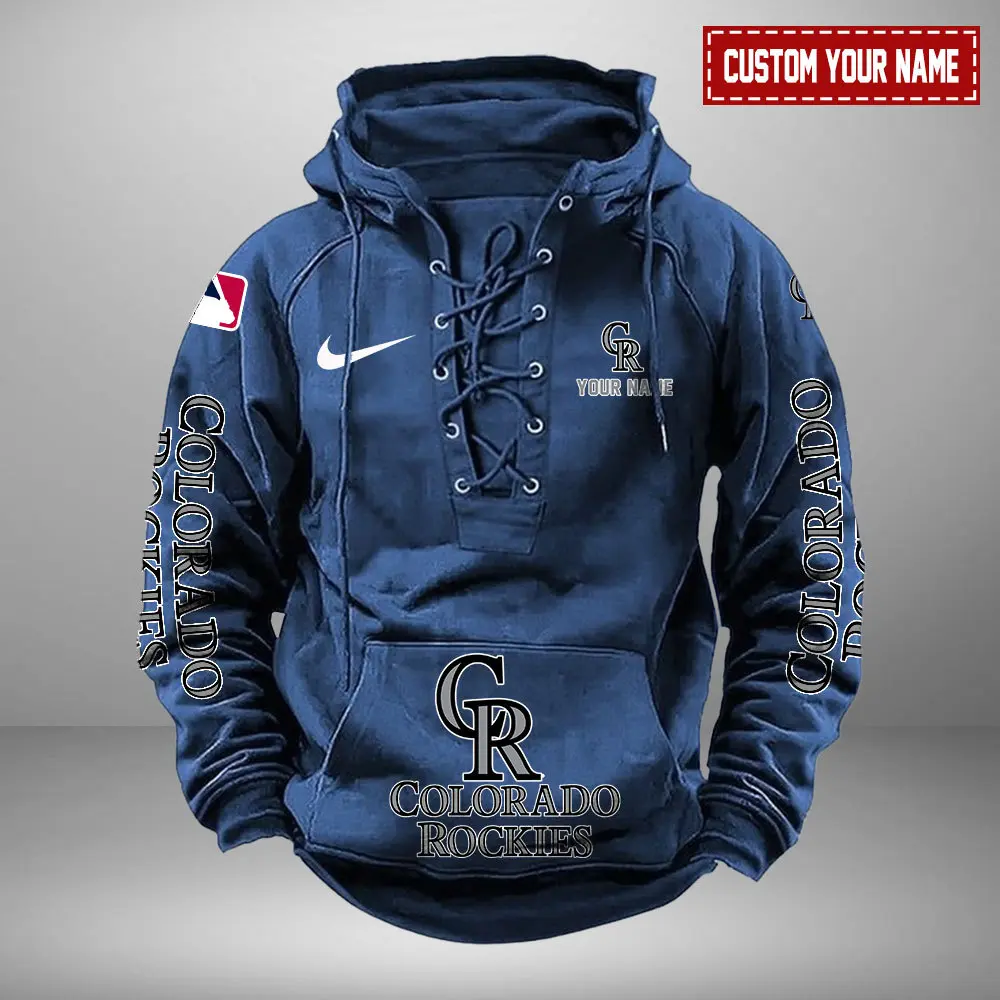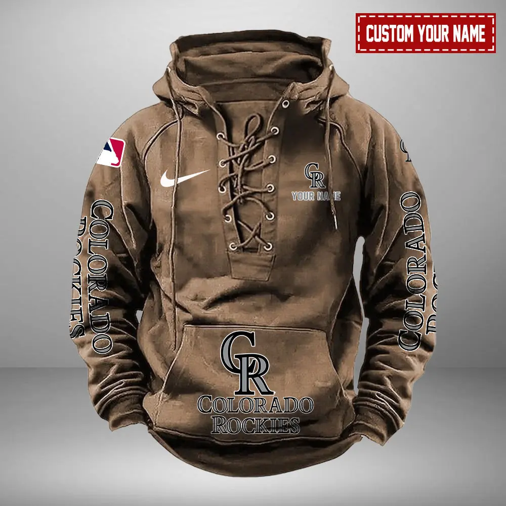 Colorado Rockies MLB Retro Lace Up Hoodie Personalized Mens Throwback