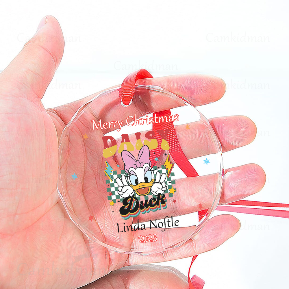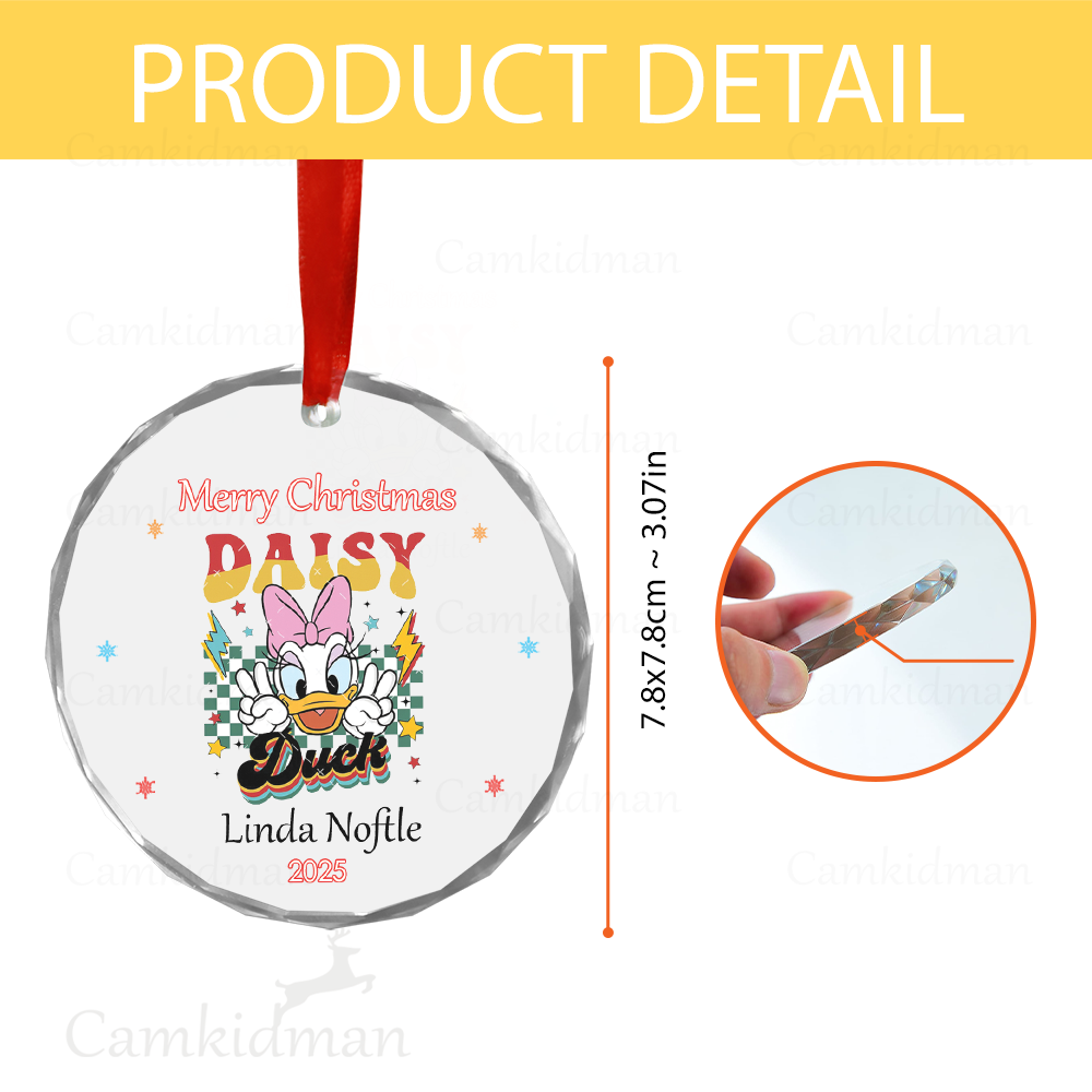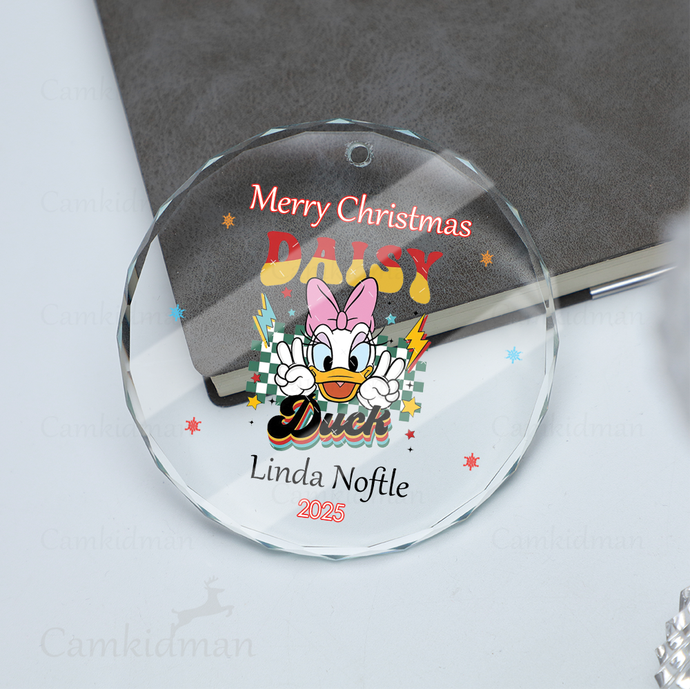 Daisy Duck Personalized Name 2025 Christmas Glass Ornament gifts